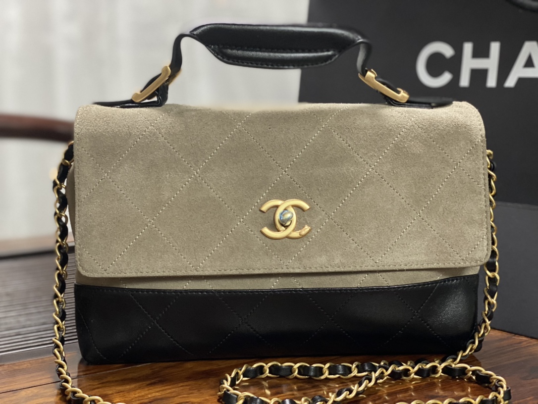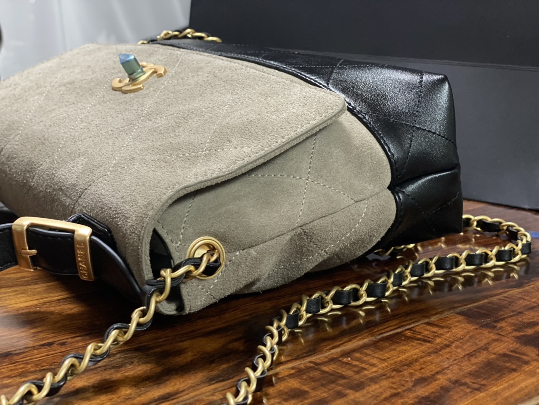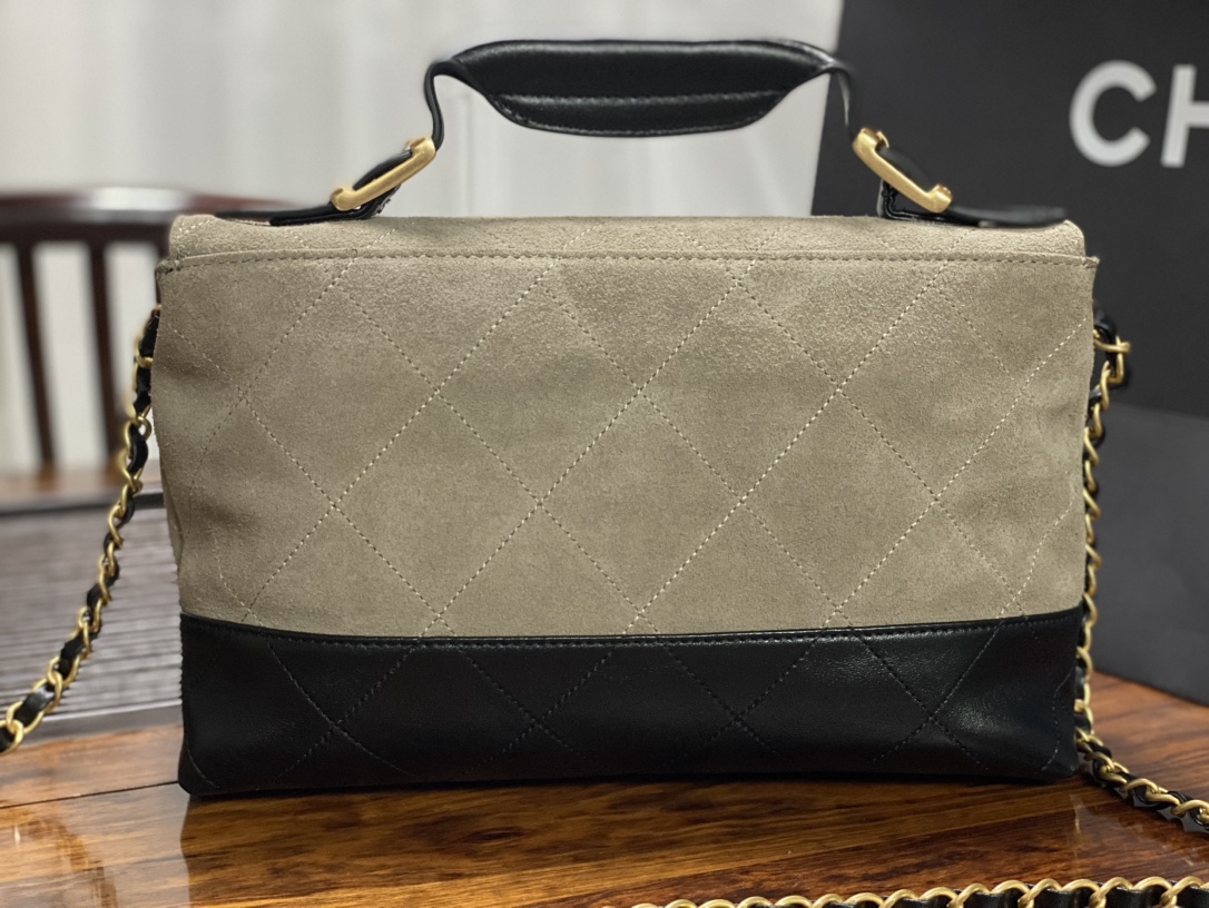 Chanel 25A Suede Patchwork Messenger Bag with CC Logo, 29x18x8cm