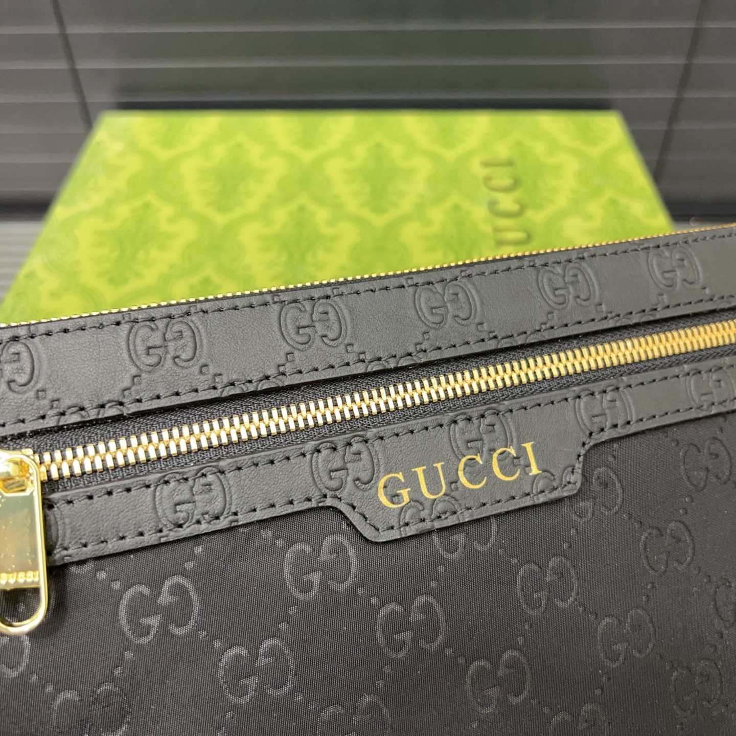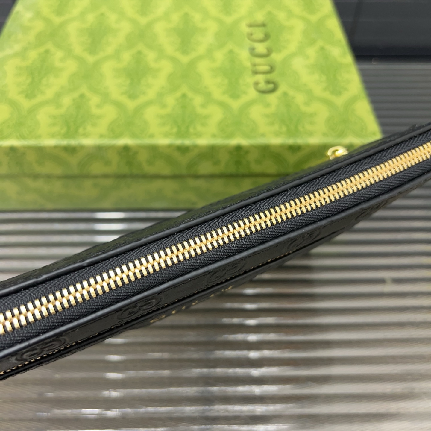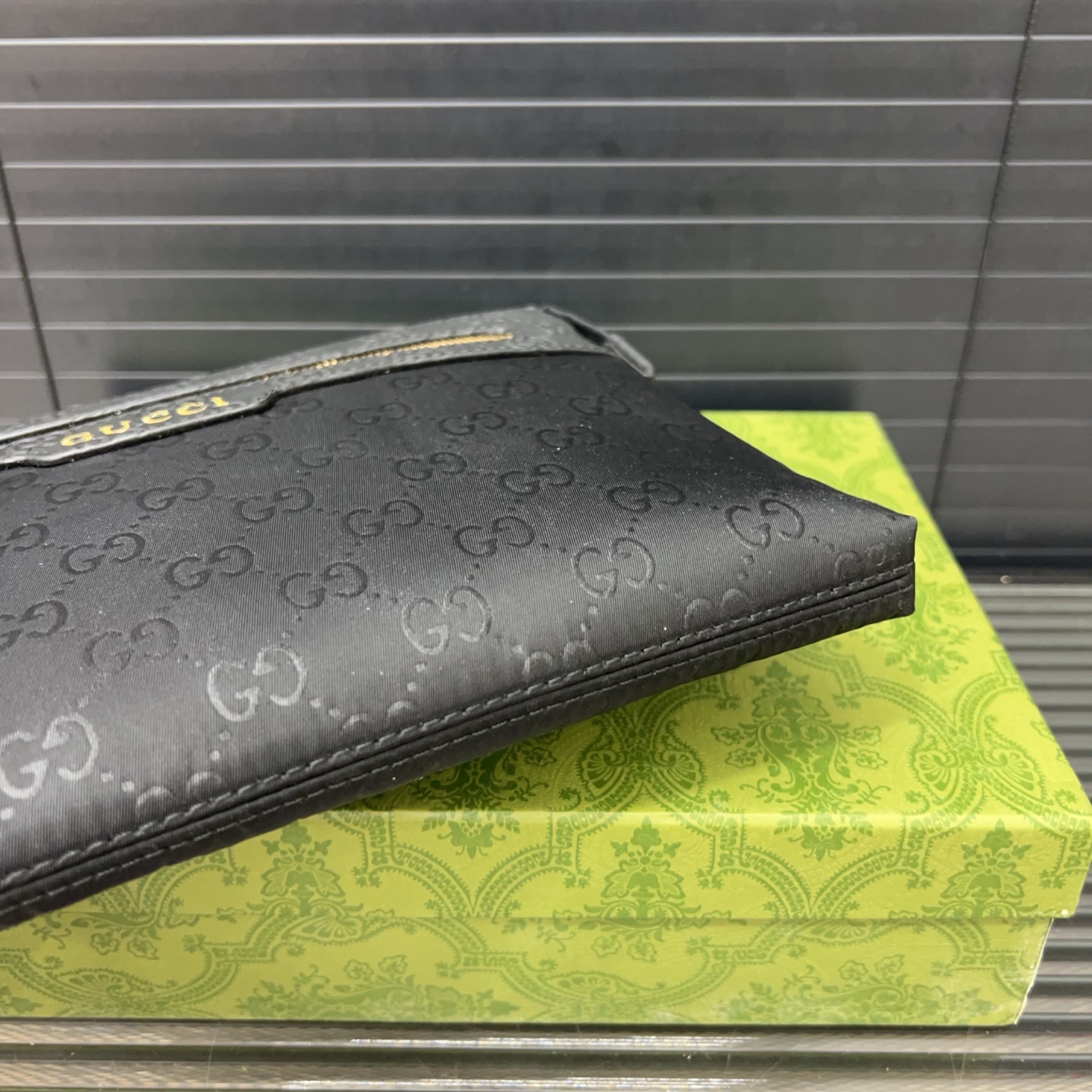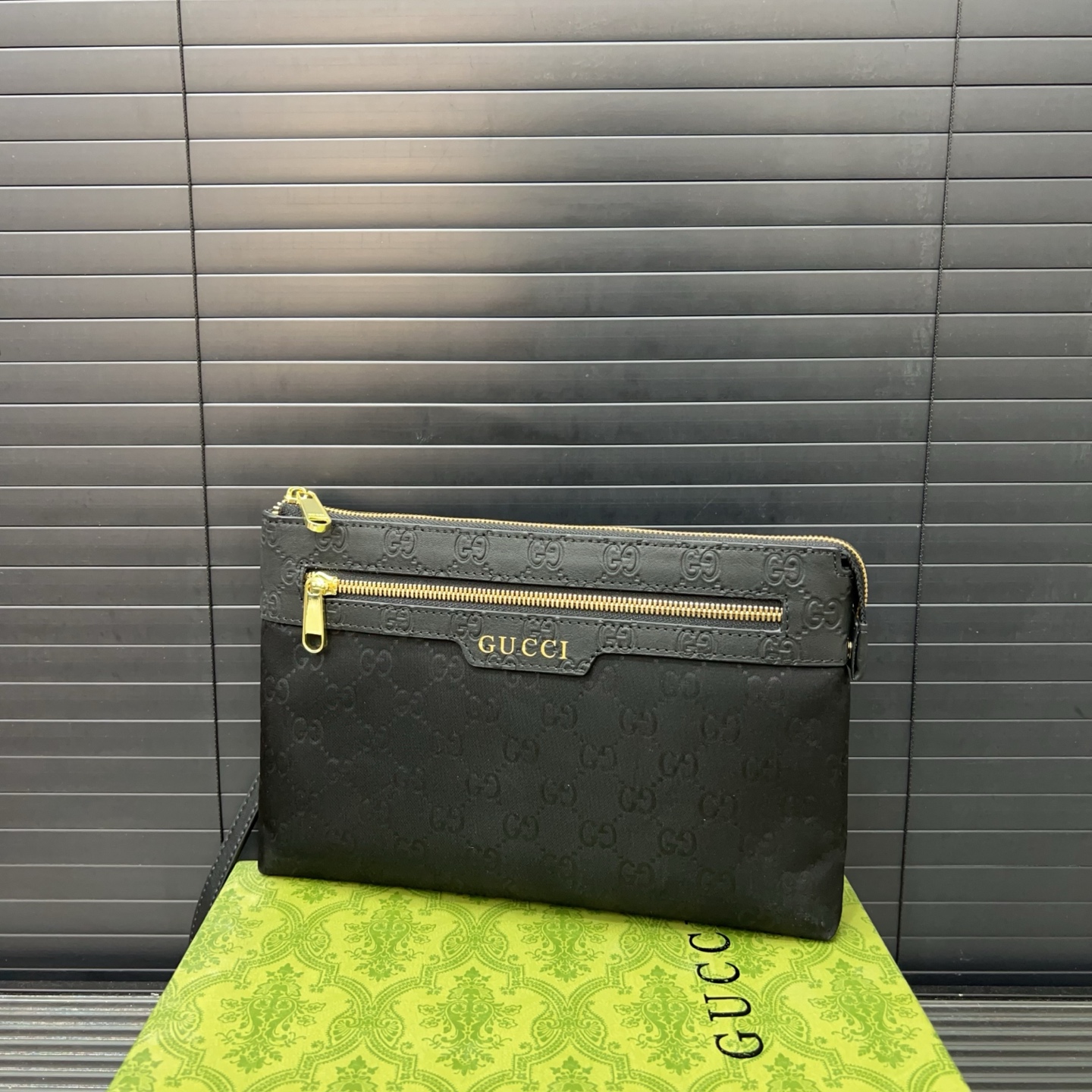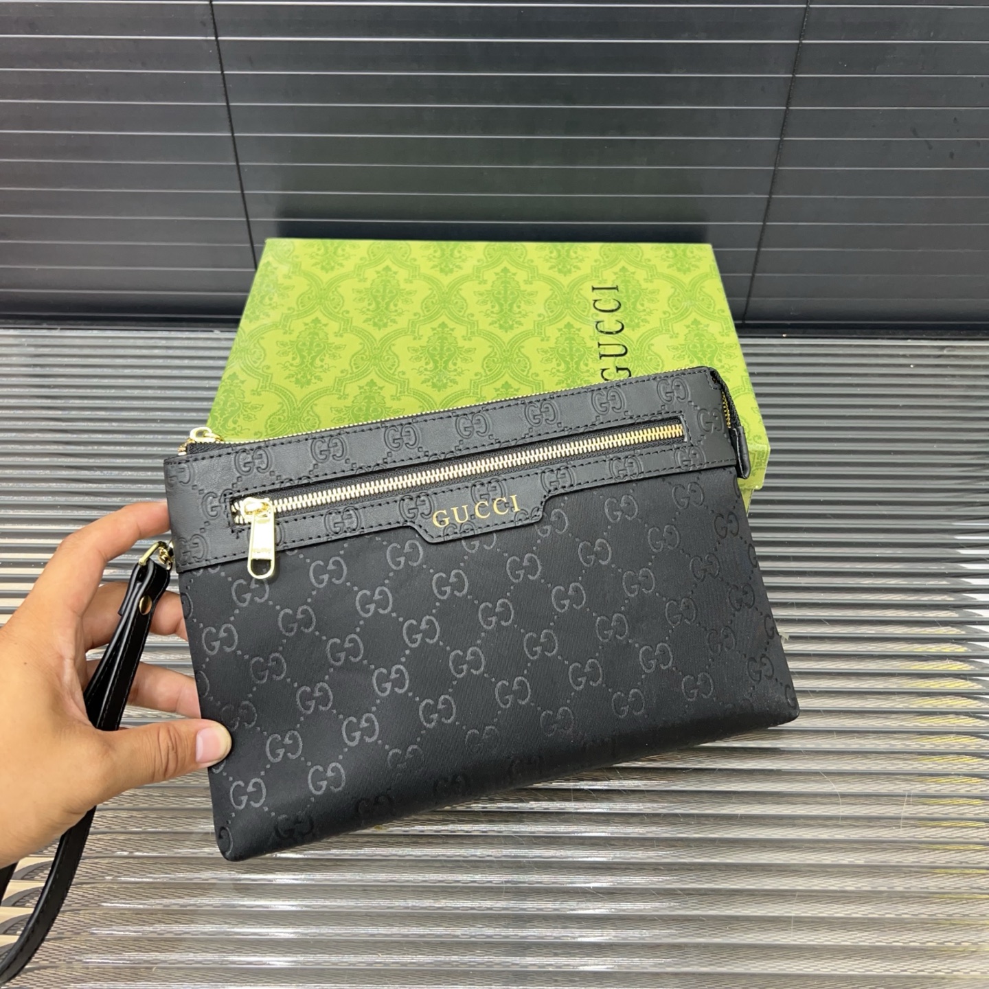 A perfect blend of sophistication and functionality, this Gucci clutch is an essential accessory for the modern man.