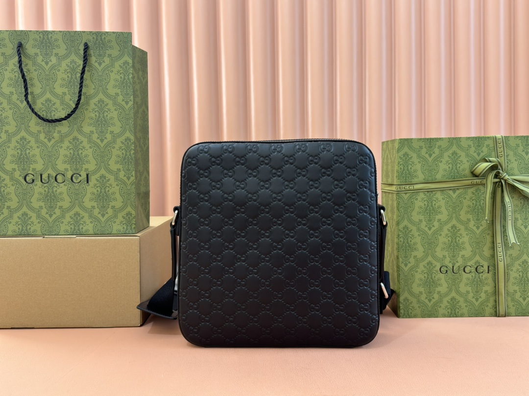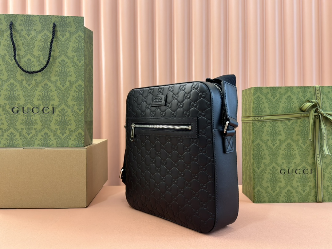 Gucci Men's Black Signature Leather Messenger Bag 473878 - New Arrival