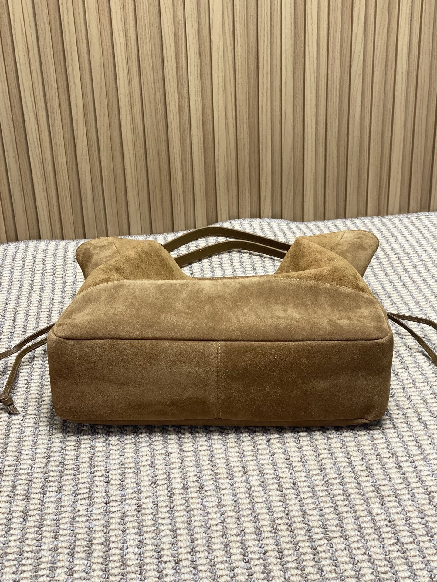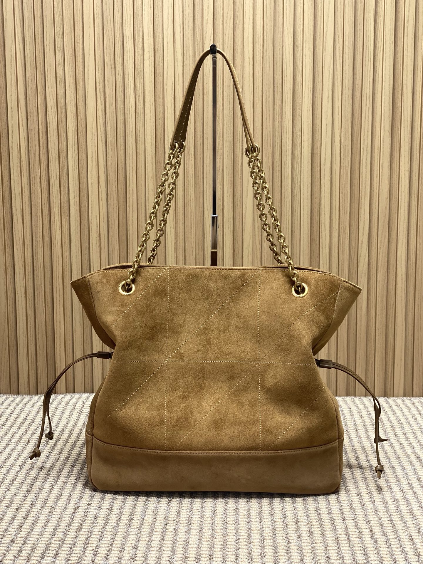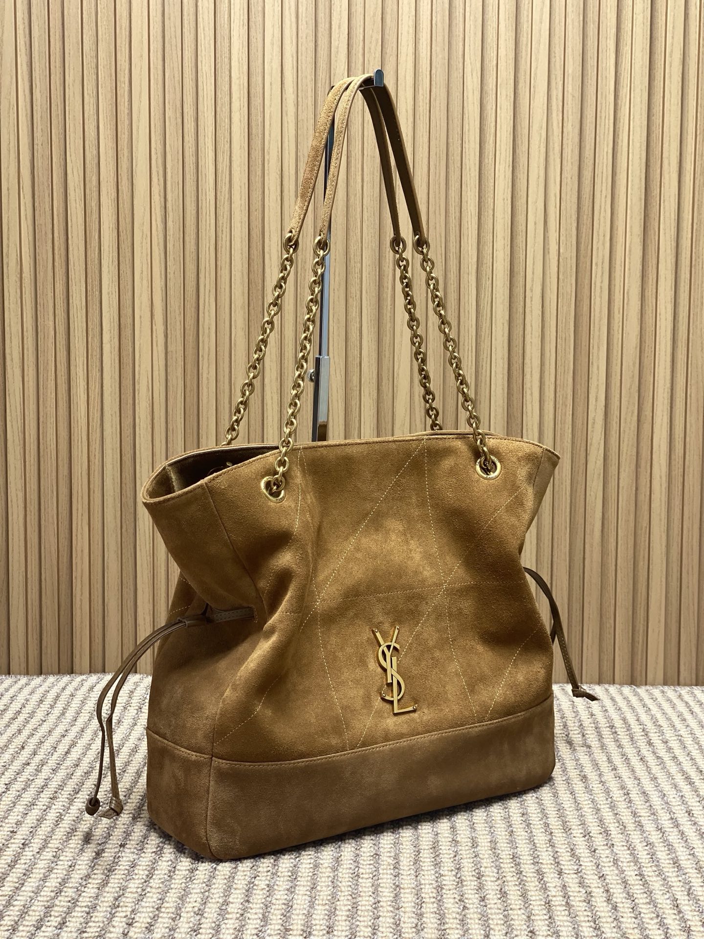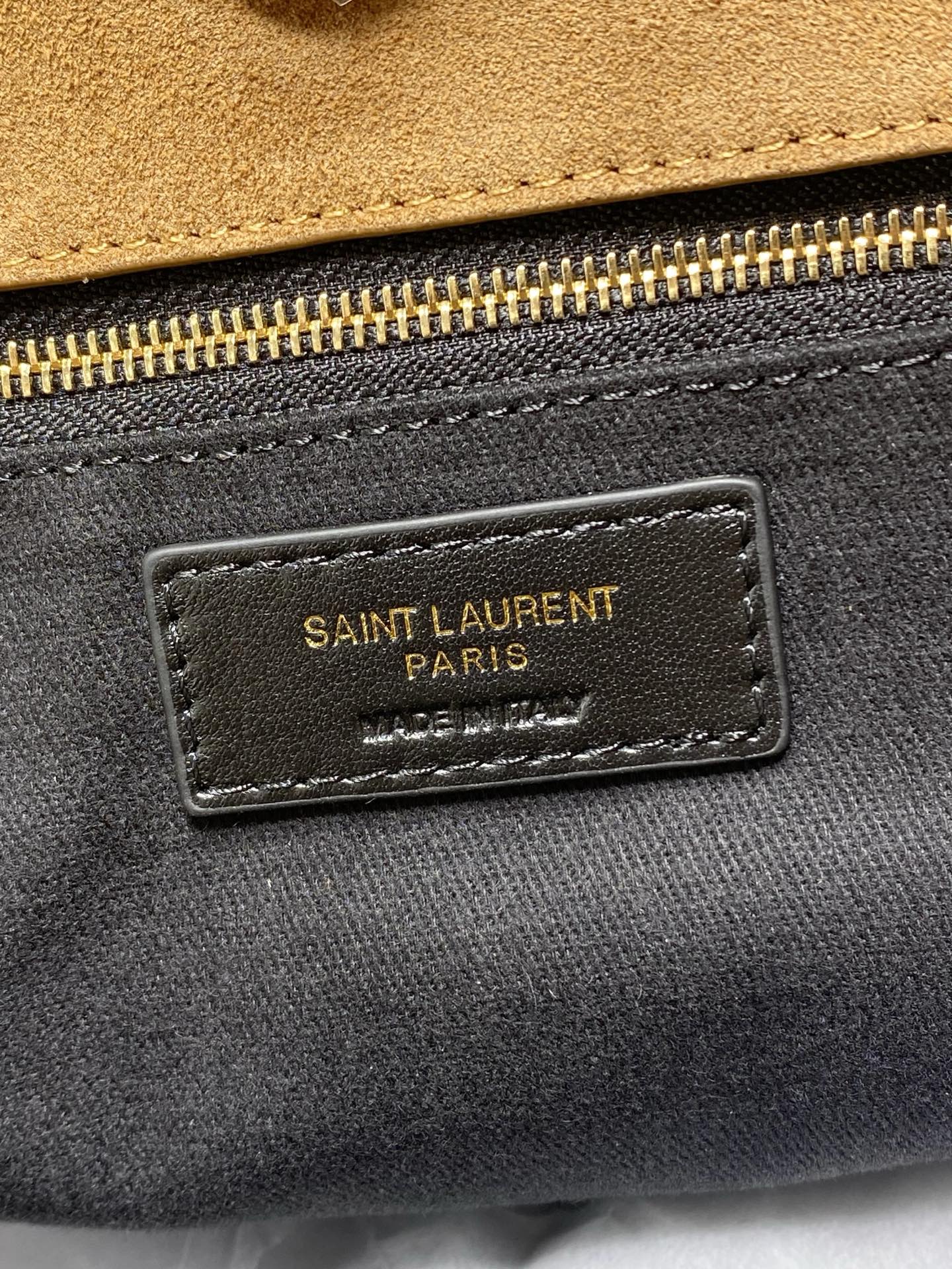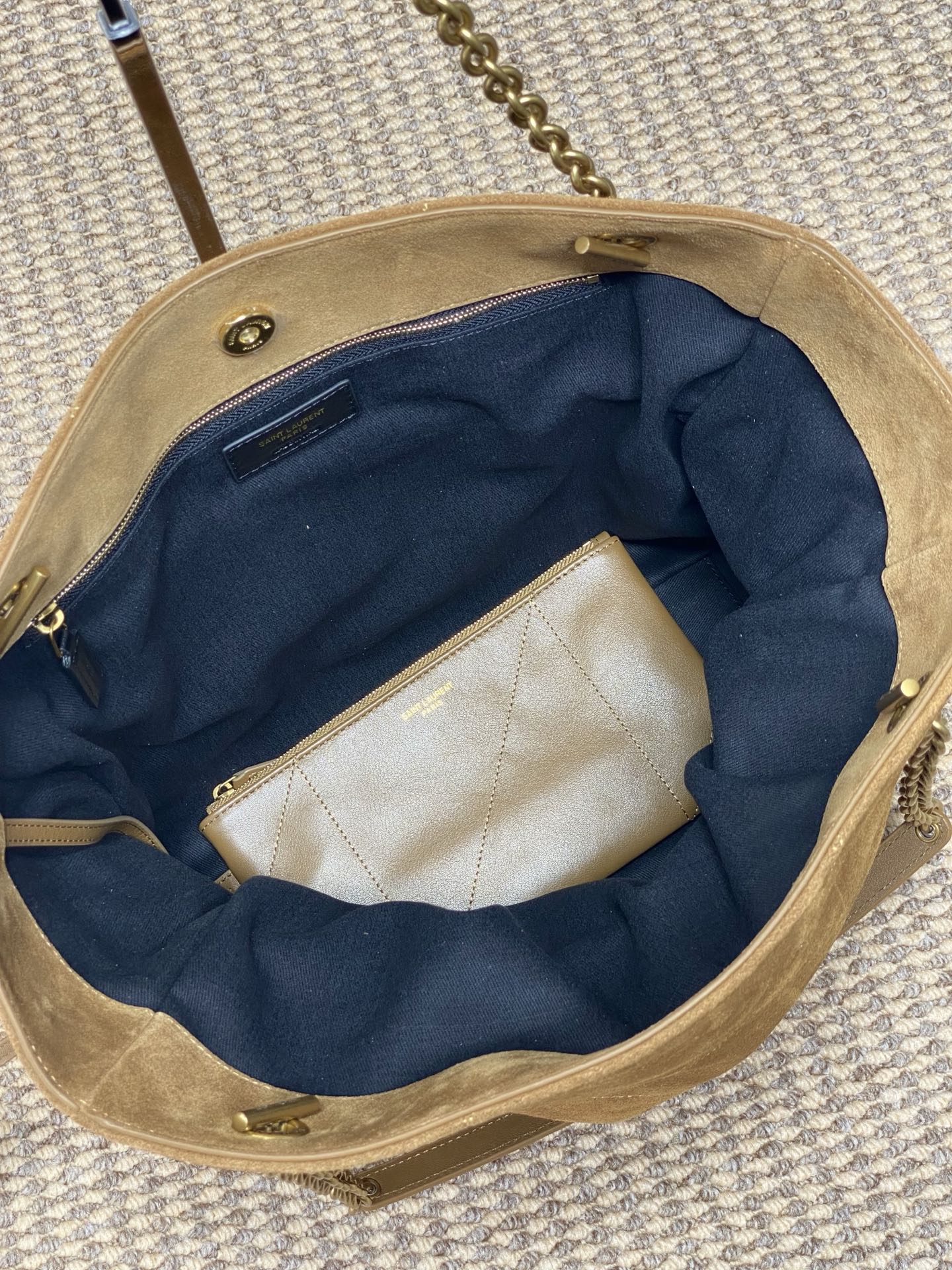 Carry your essentials in style with this Caramel Suede YSL Large Pochon Tote Bag. Perfect for both shoulder and crossbody wear, offering elegance and comfort.