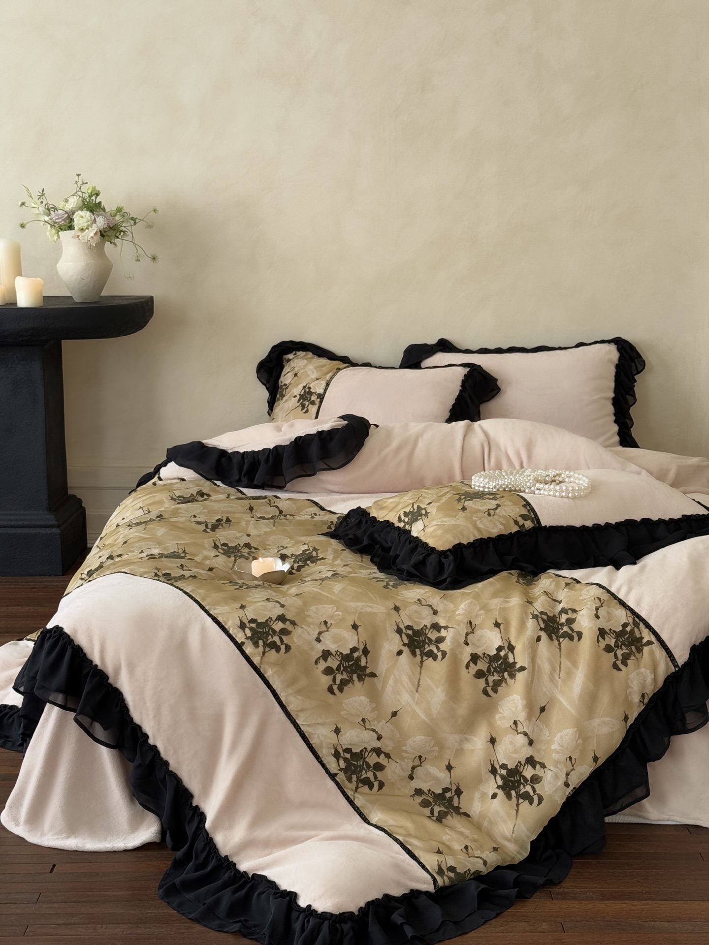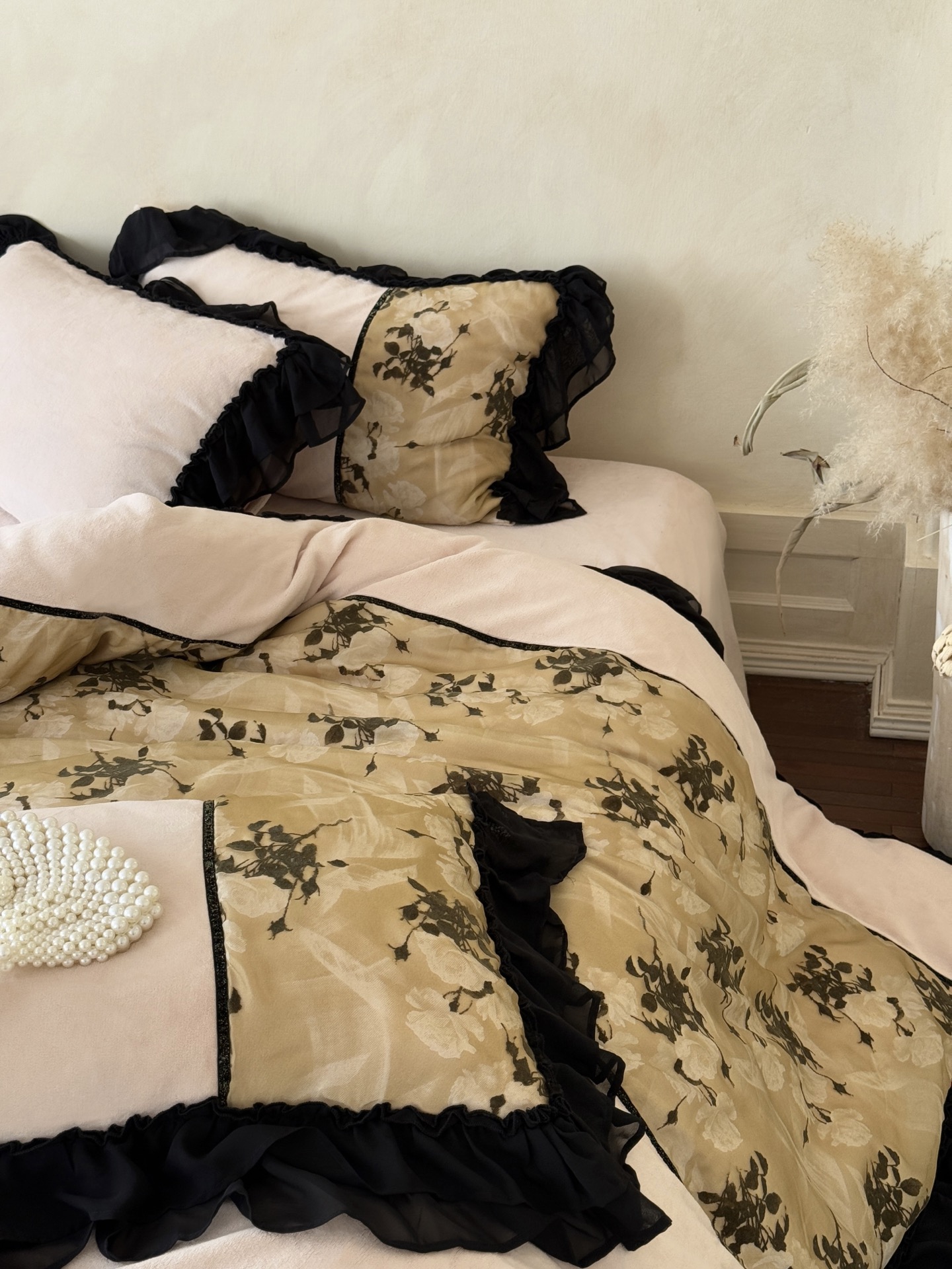 Tags: Cozy Bedding Set, Floral Bedding Set, Luxury Home Bedding, Milk Velvet Bedding, Ruffle Trim Bedding
