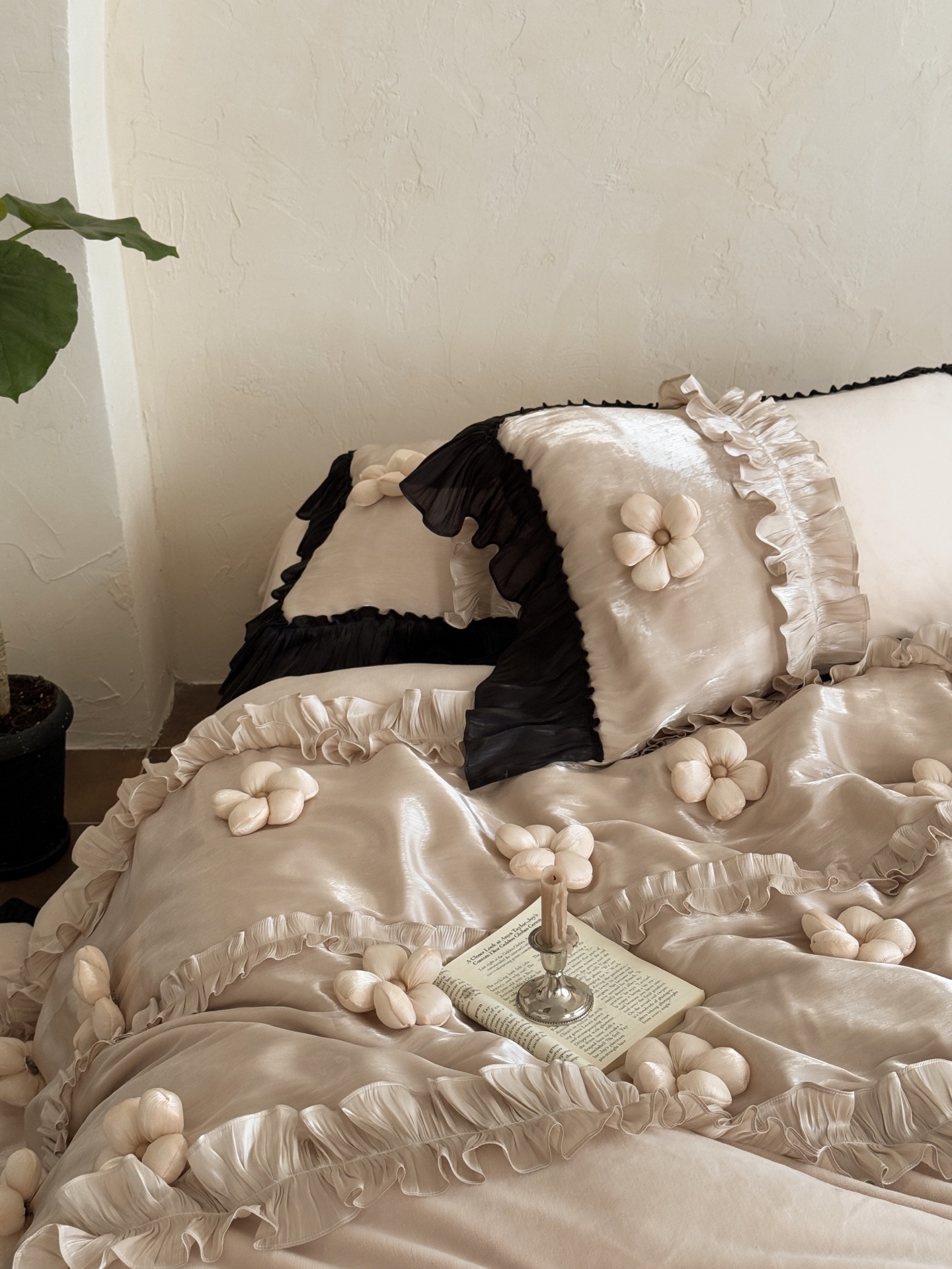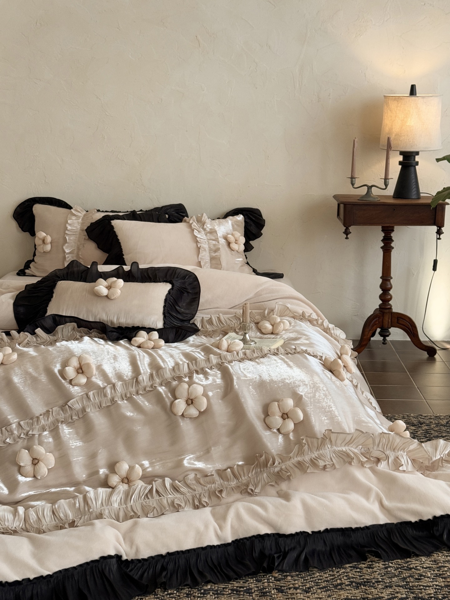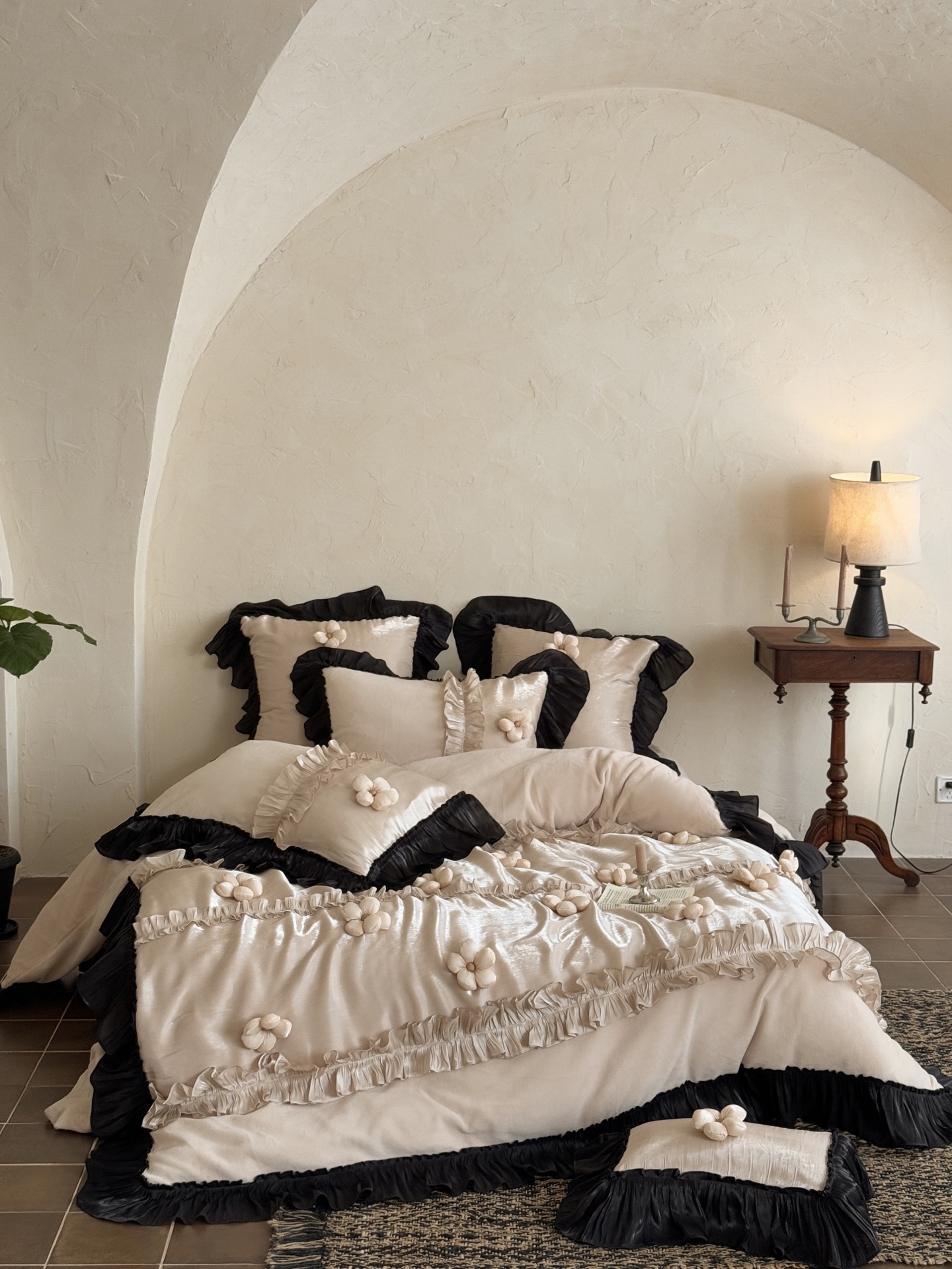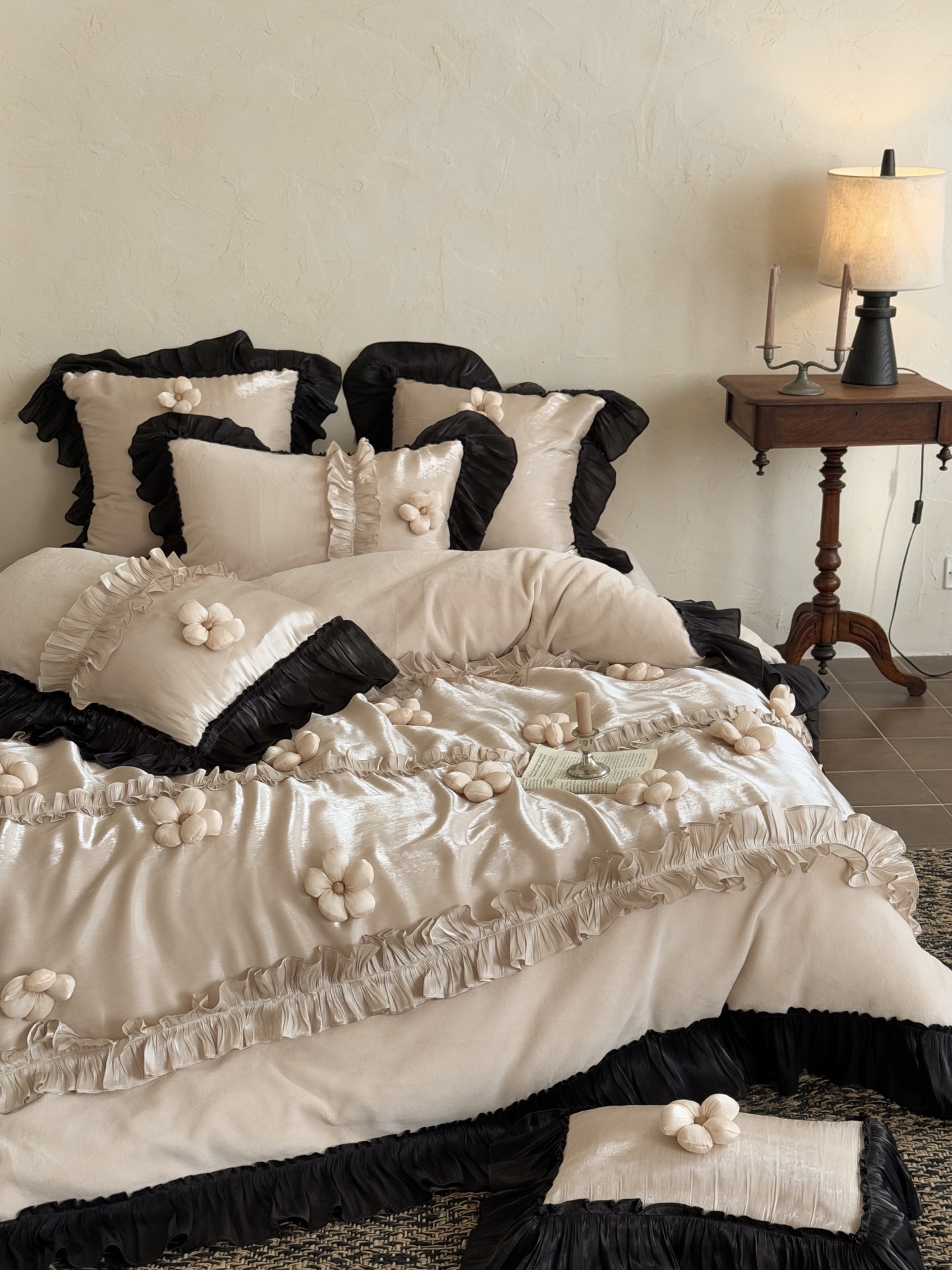 Tags: Cozy Bedding, Floral Applique Bedding, Luxury Home Decor, Milk Velvet Bedding Set, Queen Size Bedding, Ruffled Edge Bedding