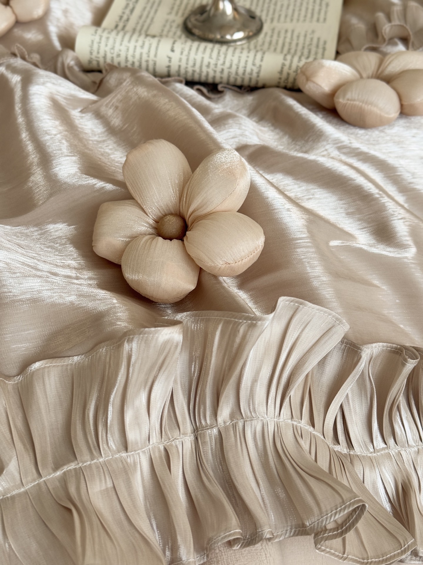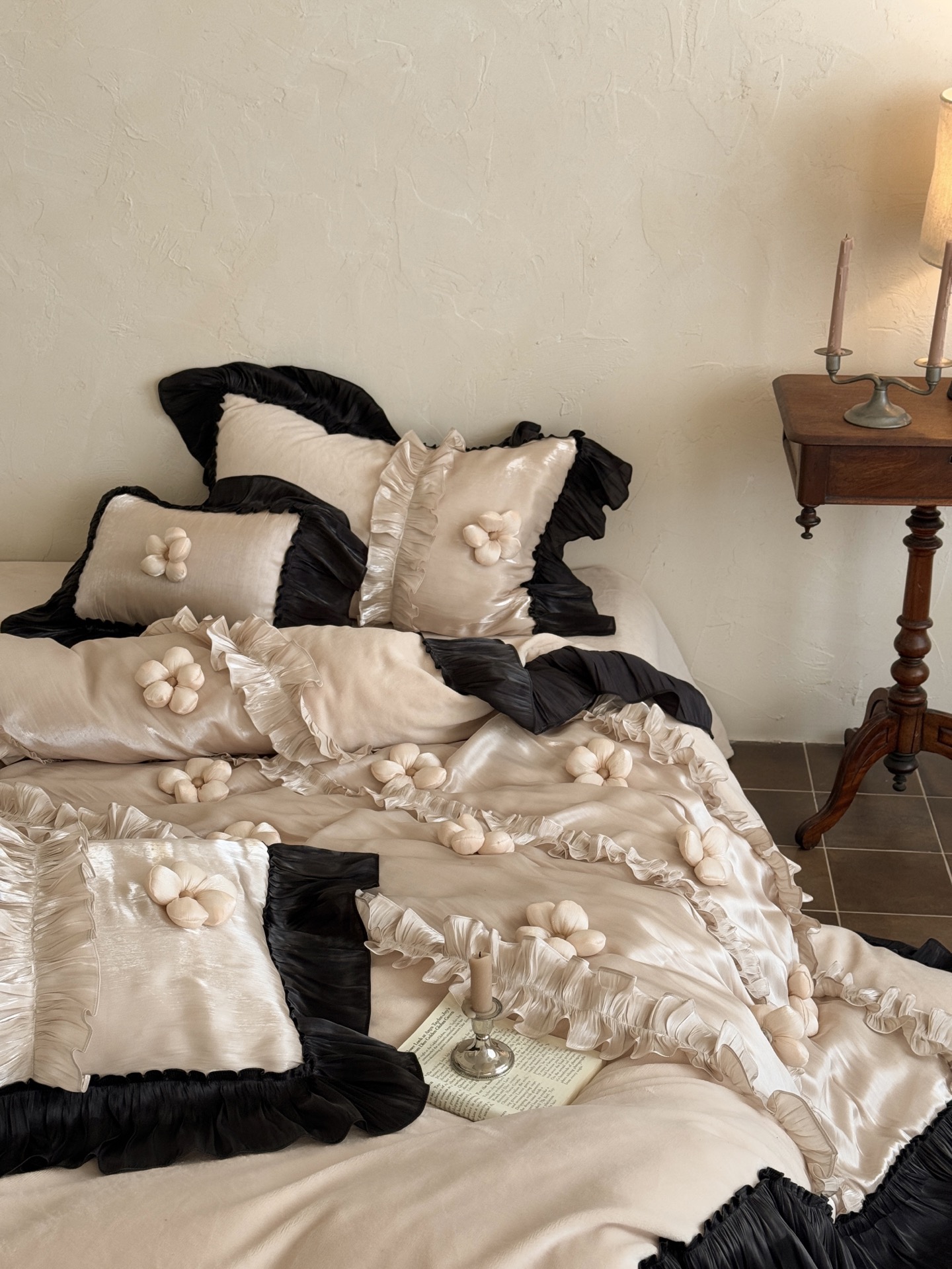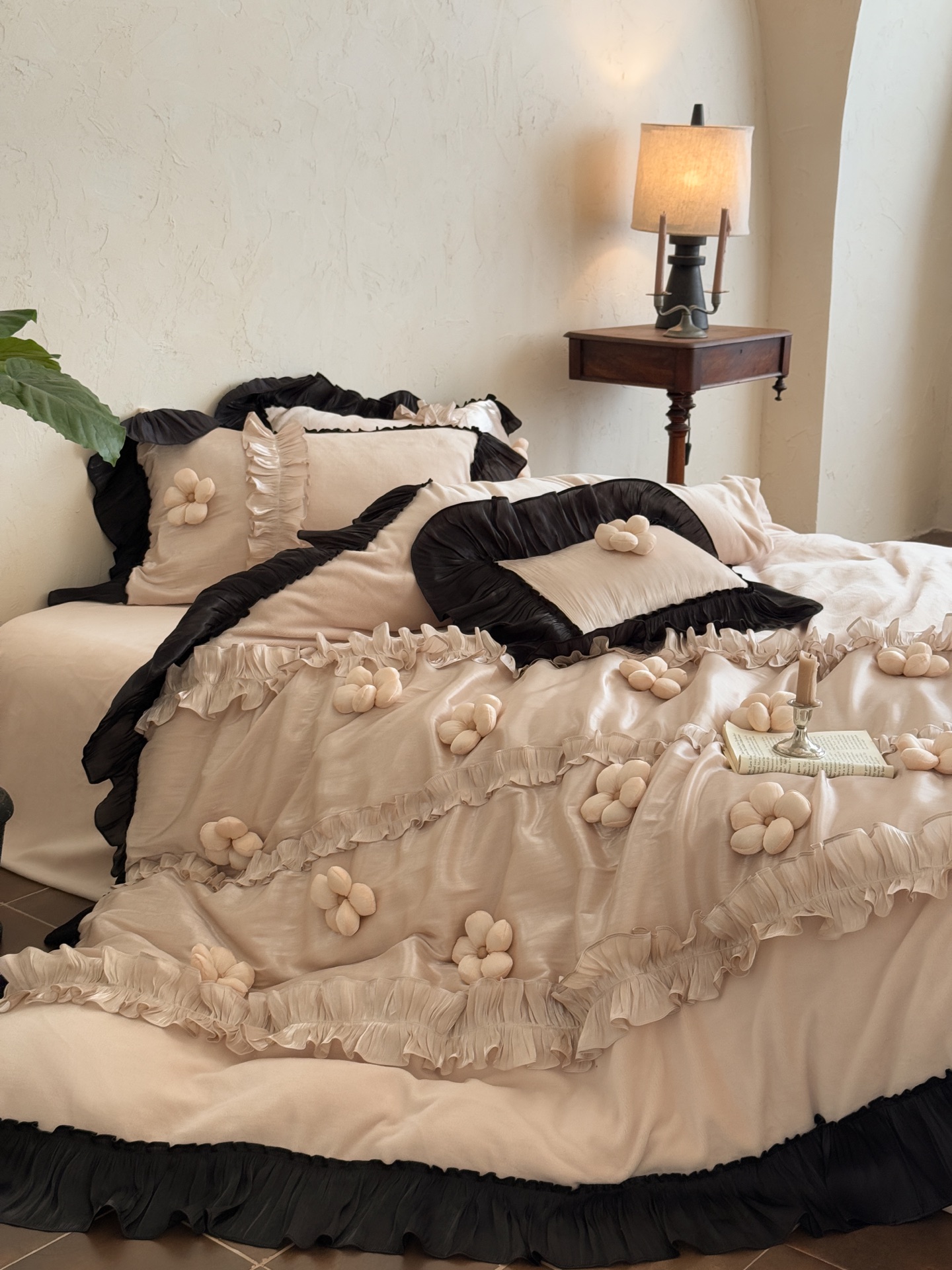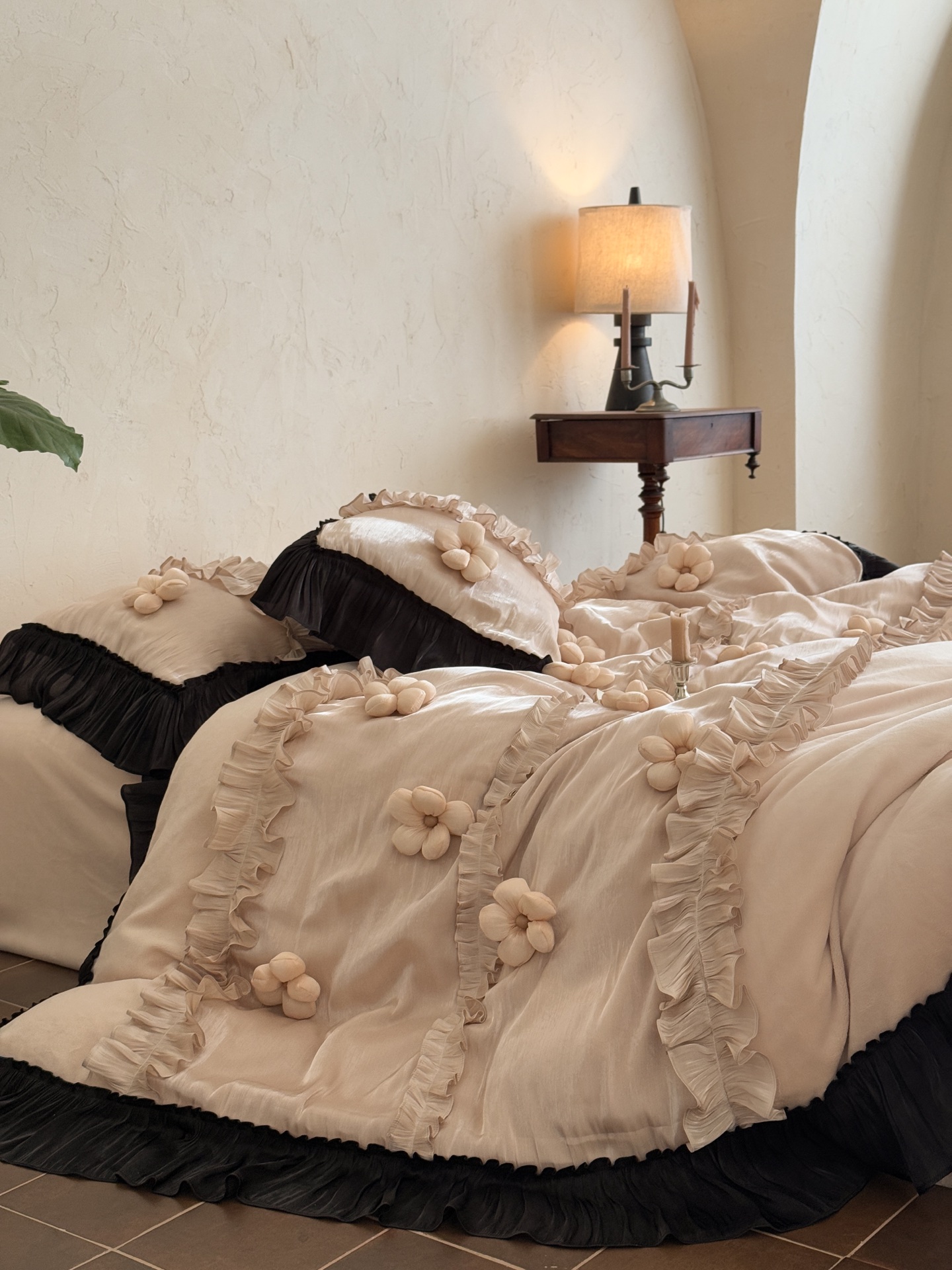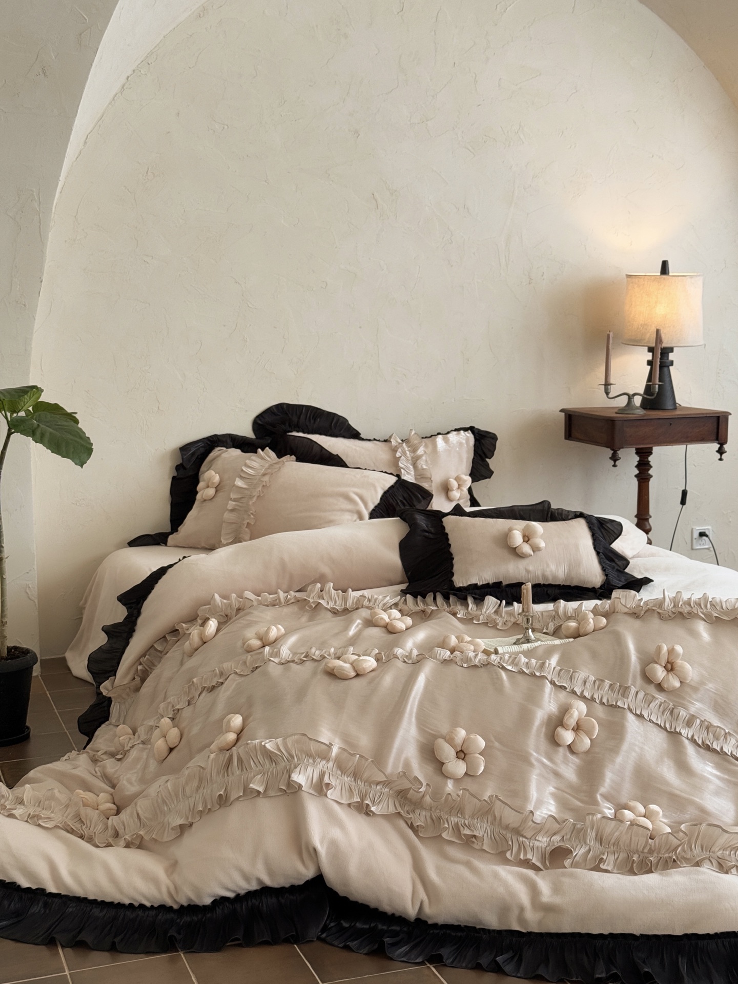 Tags: Cozy Bedding, Floral Applique Bedding, Luxury Home Decor, Milk Velvet Bedding Set, Queen Size Bedding, Ruffled Edge Bedding