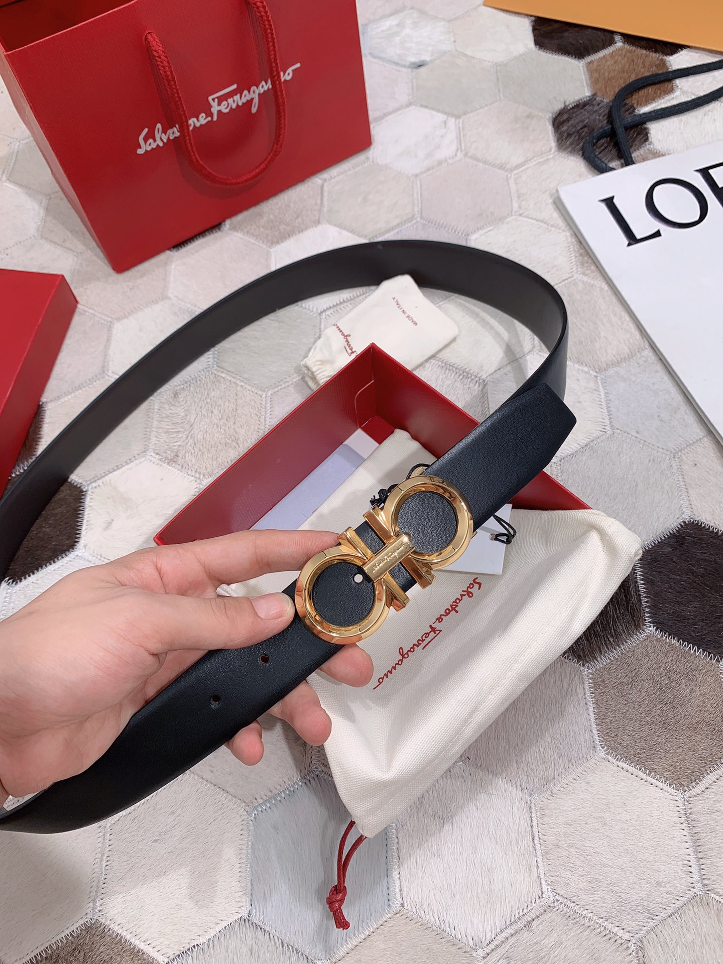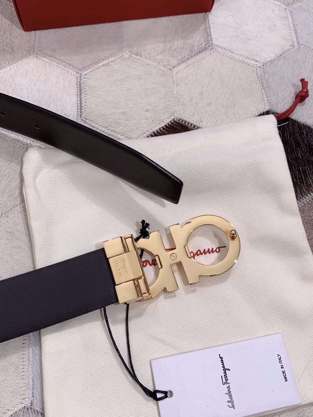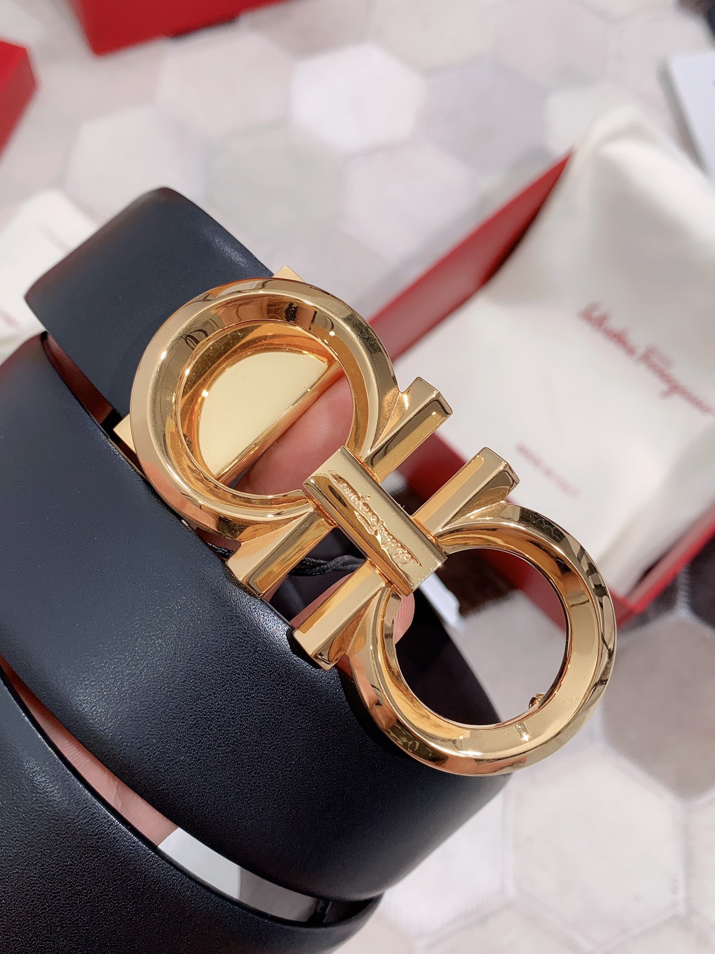 Elevate your style with the Salvatore Ferragamo Men's 3.5cm Reversible Leather Belt. This belt is not just an accessory; it's a statement of sophistication and quality.