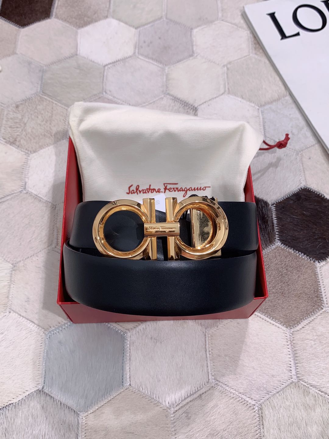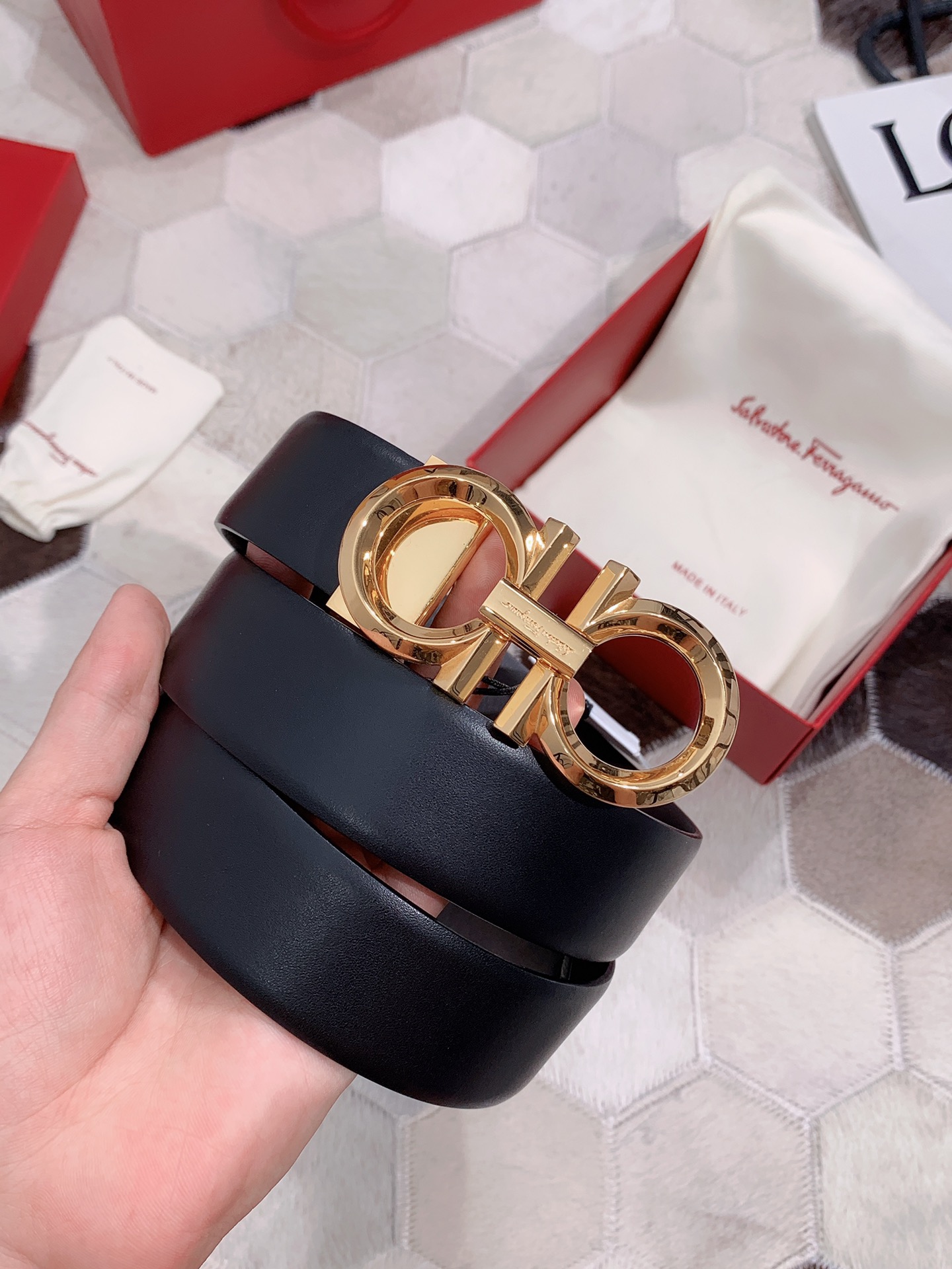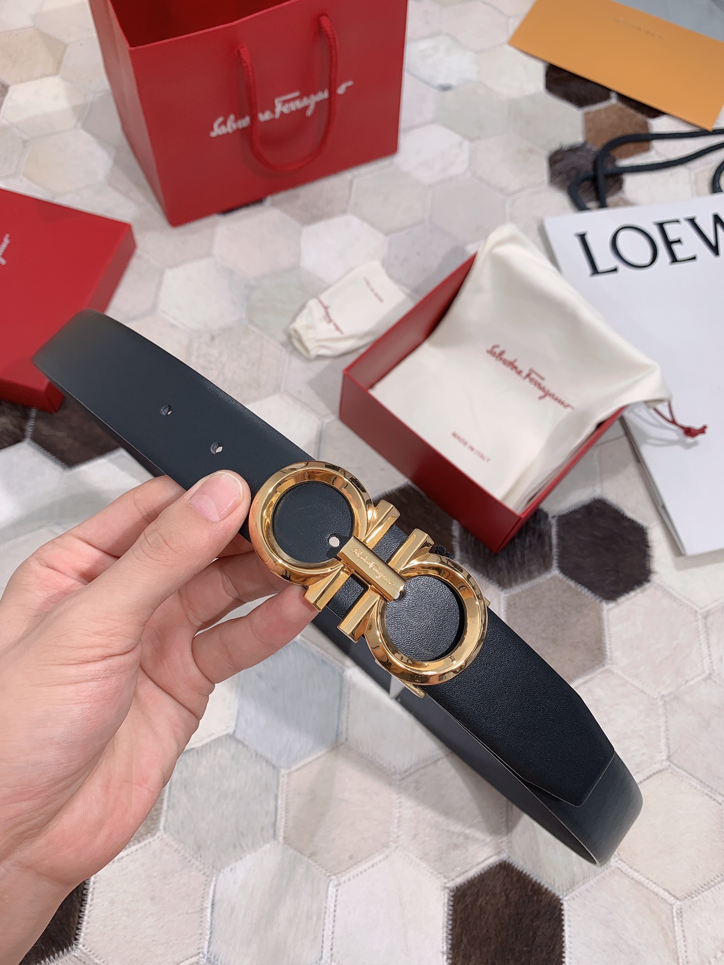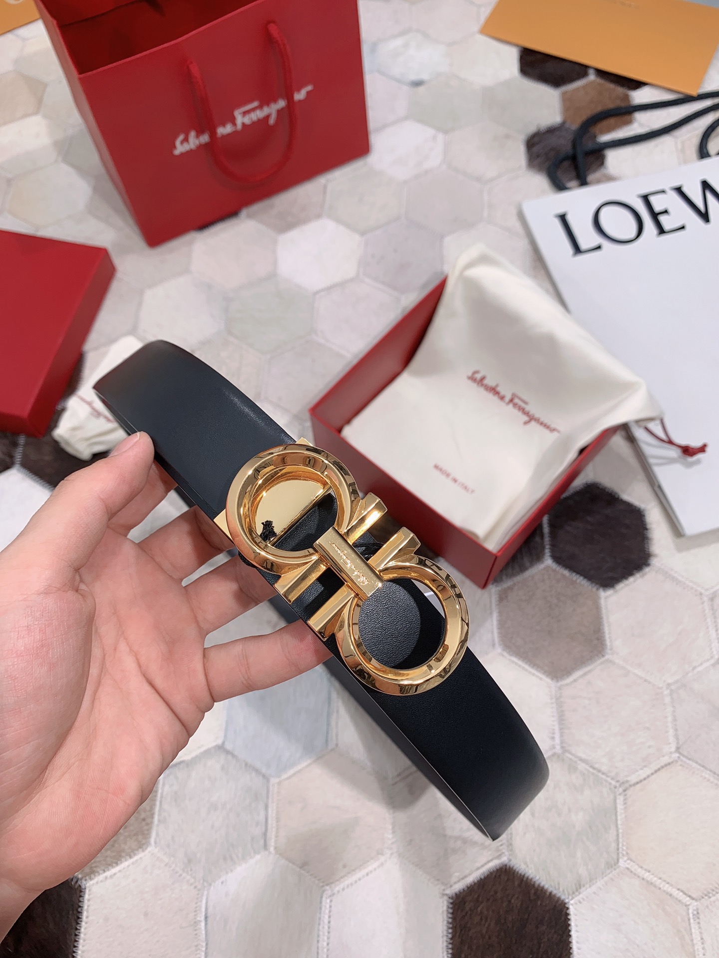 Elevate your style with the Salvatore Ferragamo Men's 3.5cm Reversible Leather Belt. This belt is not just an accessory; it's a statement of sophistication and quality.
