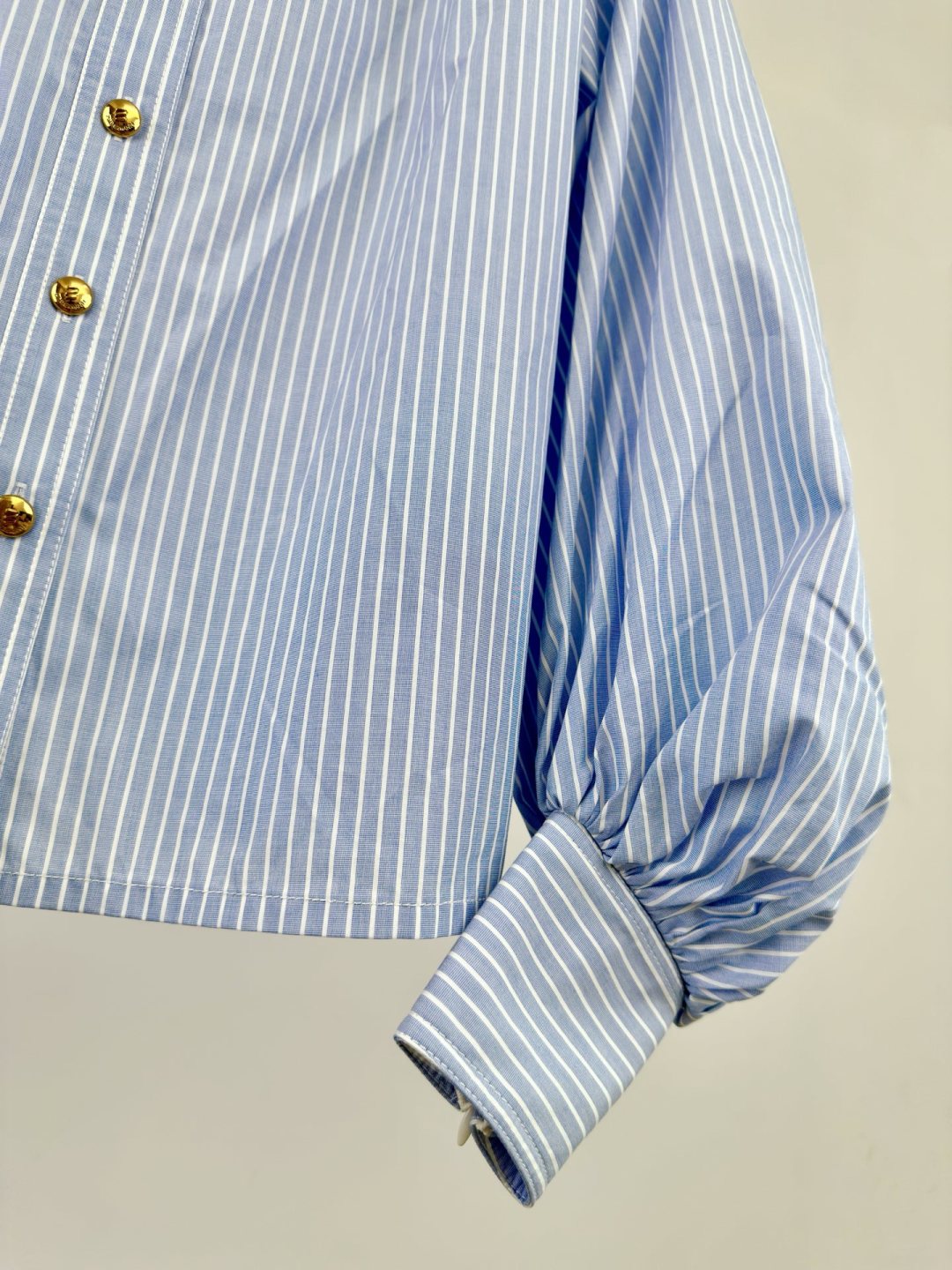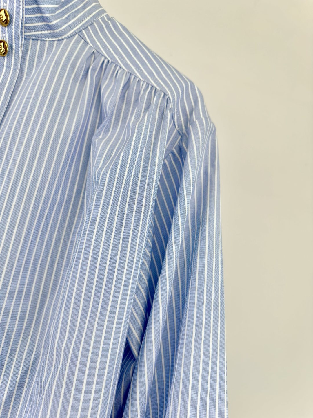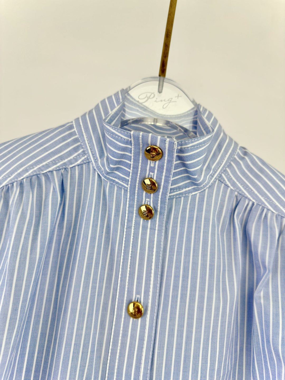 Tags: Fall Fashion Blouse, Gold Button Blouse, High Neck Blouse, Long Sleeve Blouse, Striped Cotton Blouse, Zimmermann Blouse