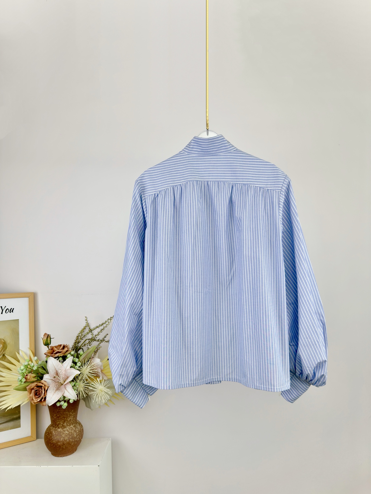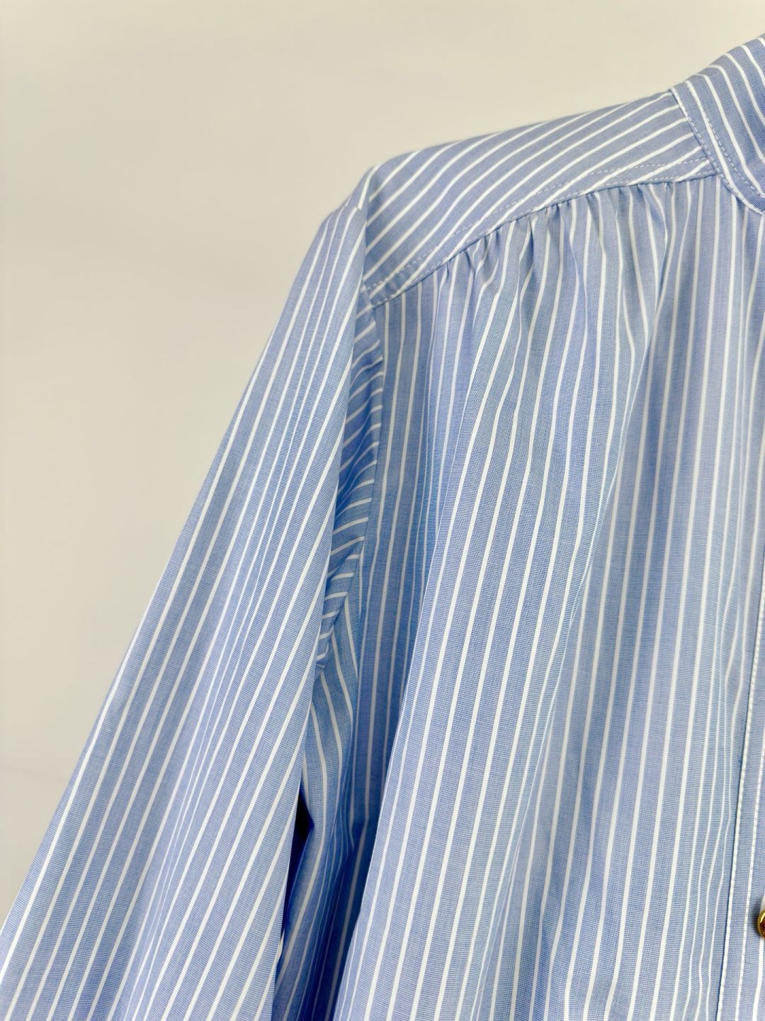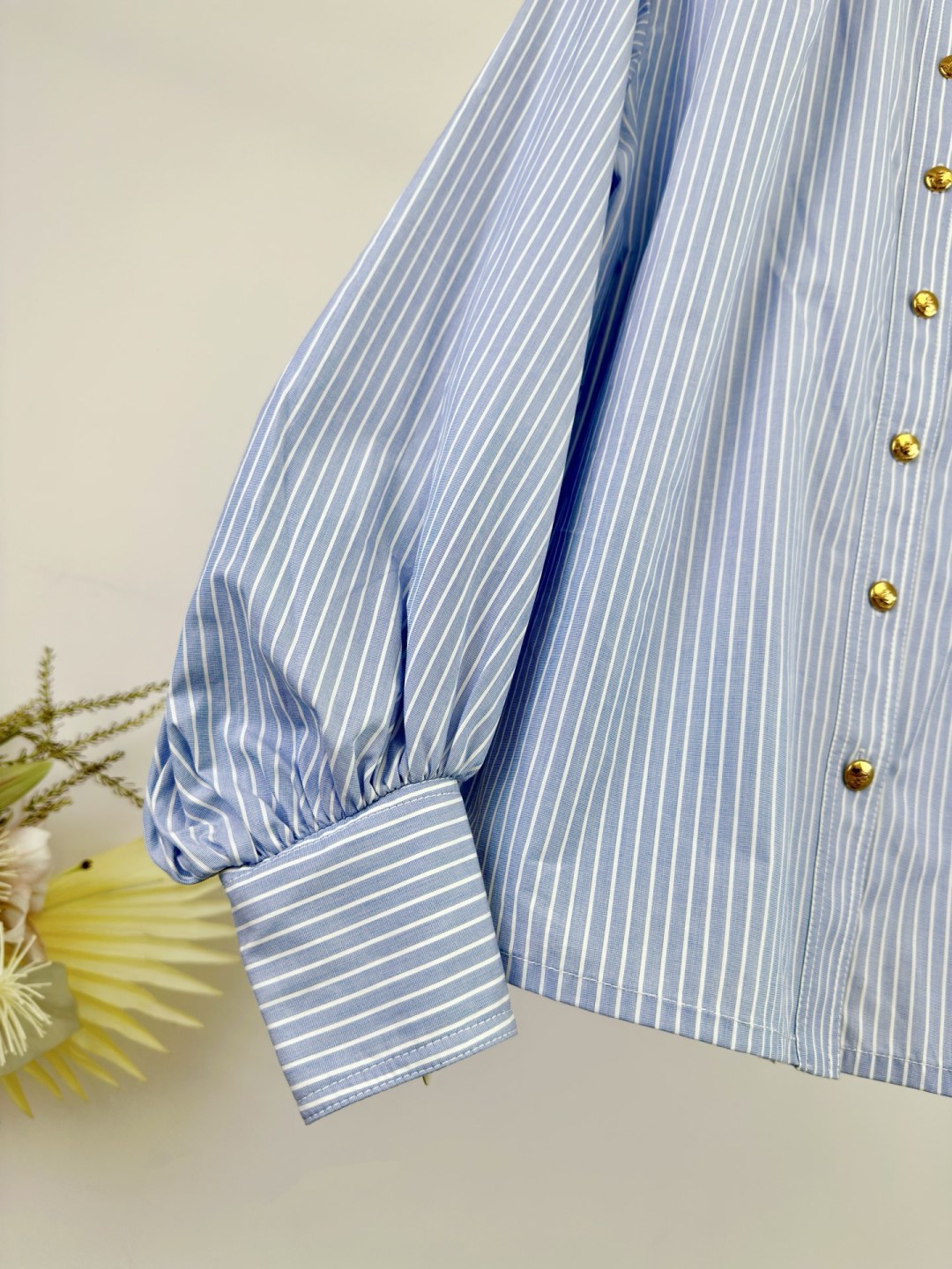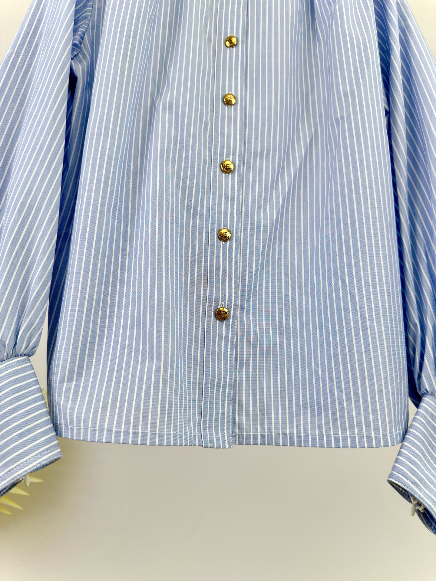 Tags: Fall Fashion Blouse, Gold Button Blouse, High Neck Blouse, Long Sleeve Blouse, Striped Cotton Blouse, Zimmermann Blouse