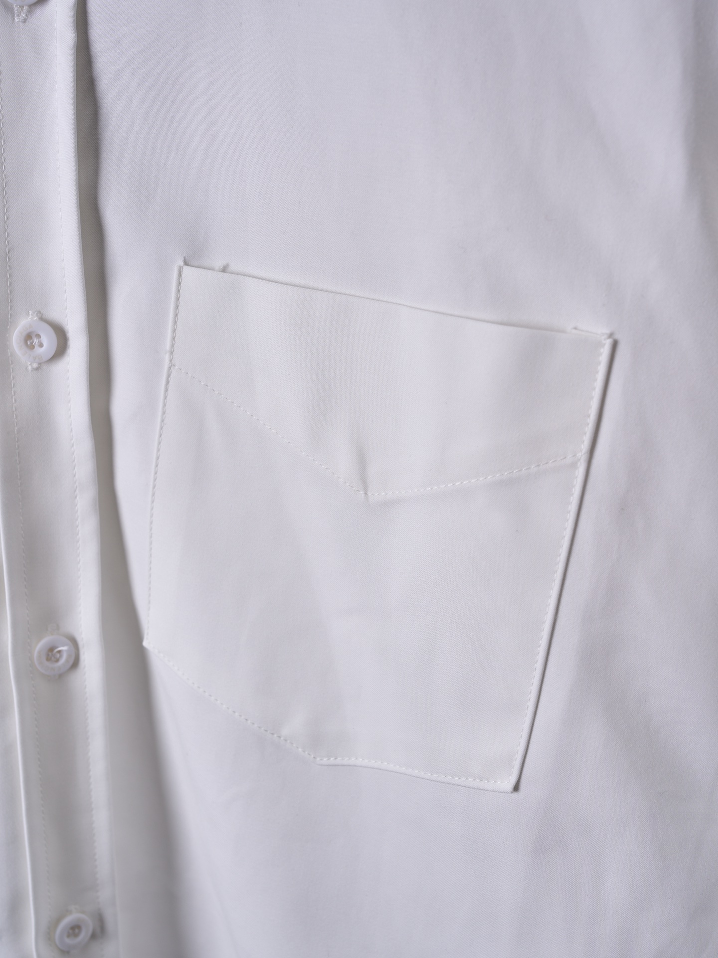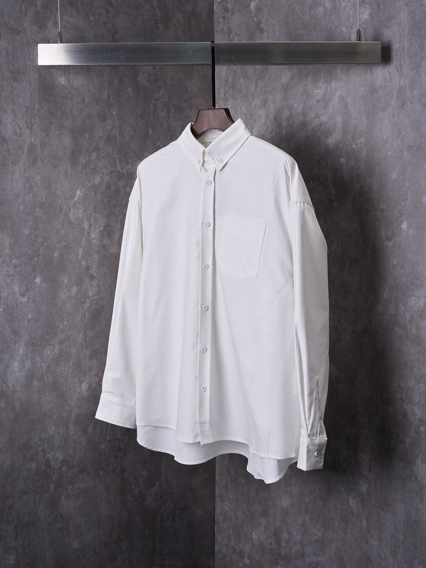Elevate your wardrobe with this Balenciaga white long sleeve shirt. Crafted from double-sided cotton, it features a loose fit and a stylish print on the back.