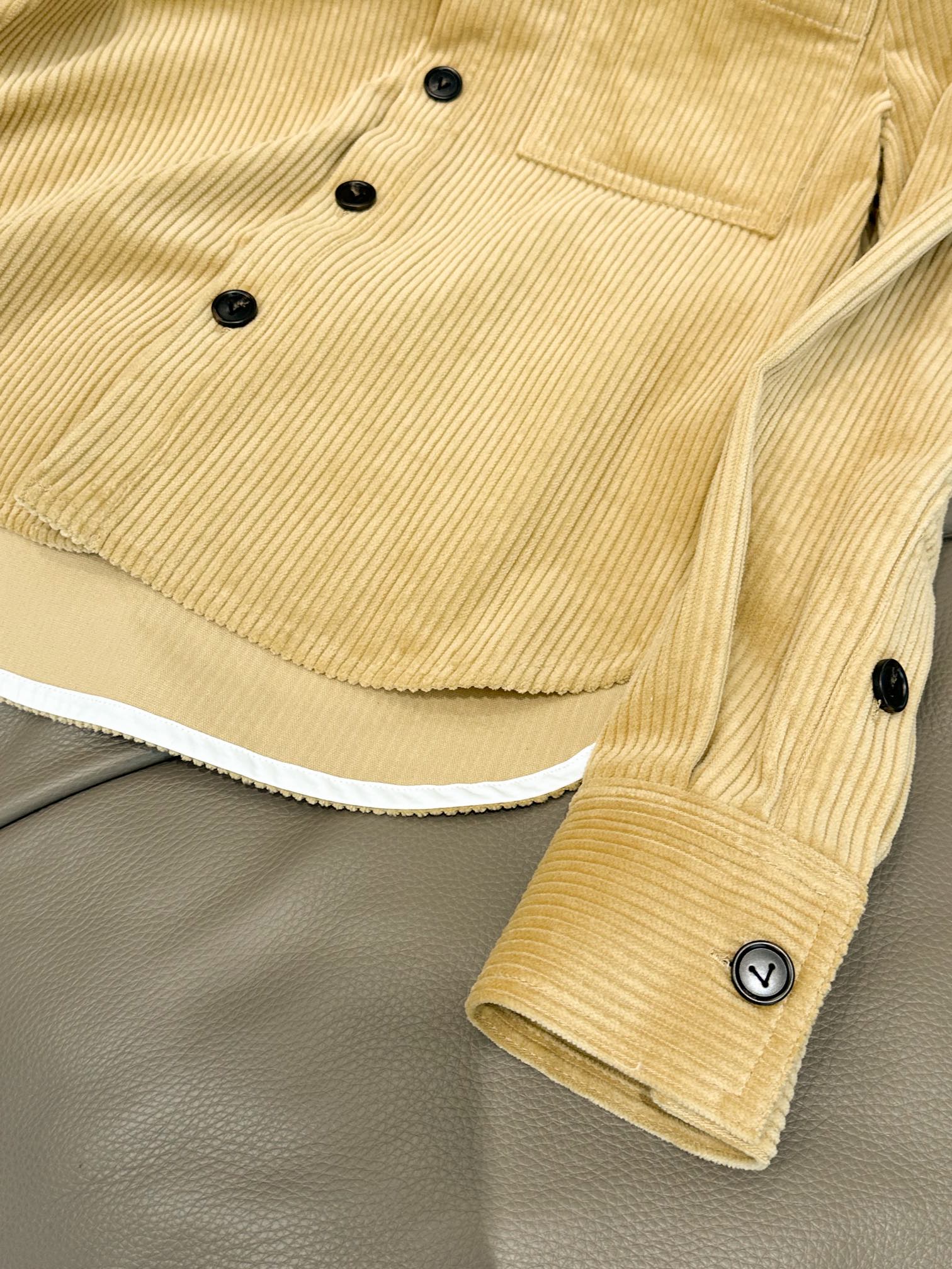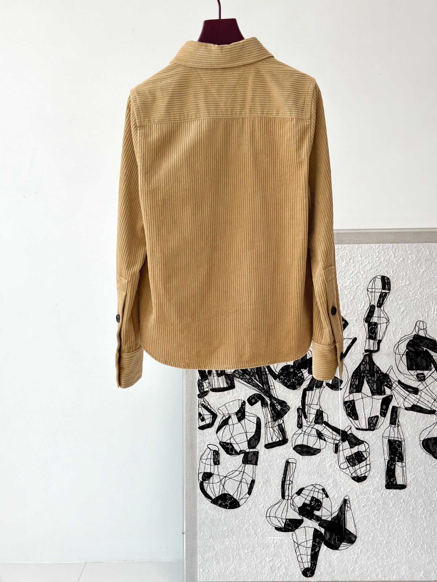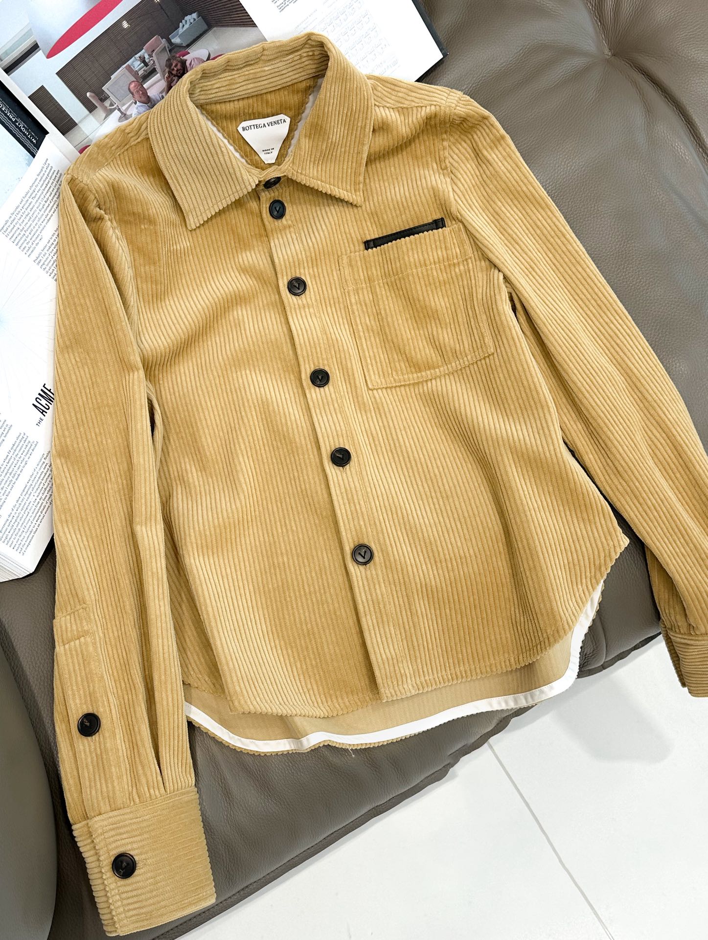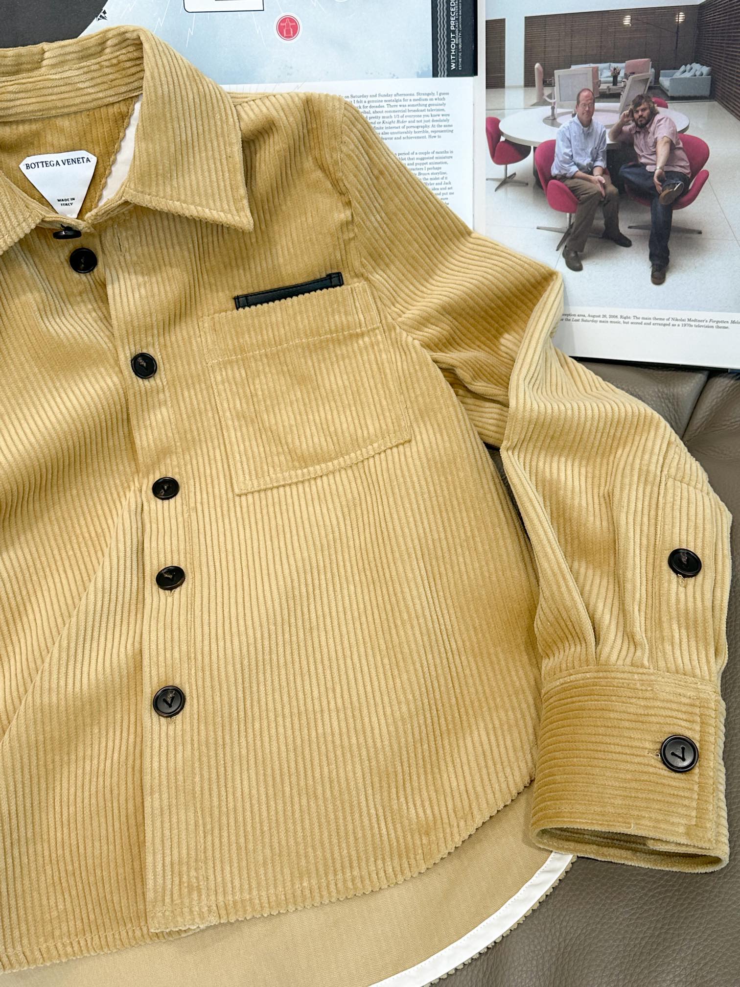 This Bottega Veneta corduroy shirt and pants set is the perfect addition to any modern wardrobe. Made from high-quality corduroy fabric, this set is both stylish and comfortable. The shirt features a classic polo collar and a relaxed fit, while the high-waist pants offer a flattering silhouette.