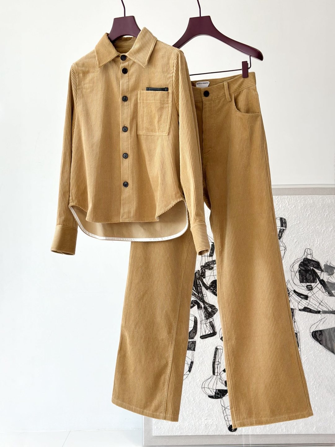 With its timeless design and exceptional comfort, this corduroy polo collar shirt and high-waist pants set is sure to become a staple in your wardrobe for years to come.