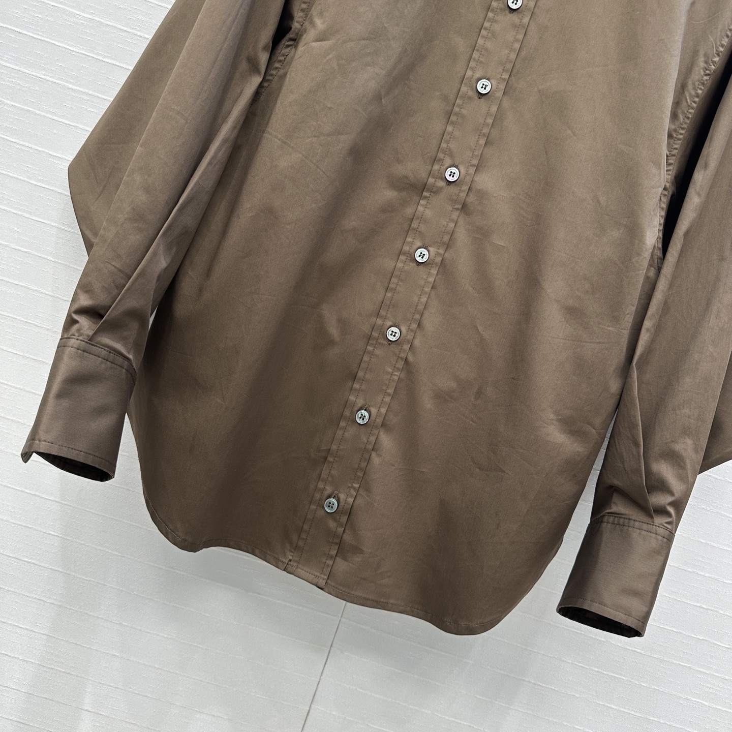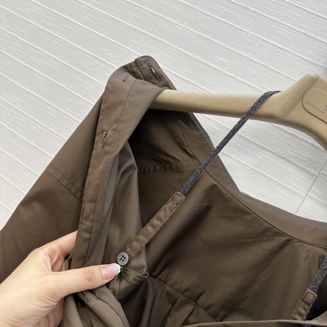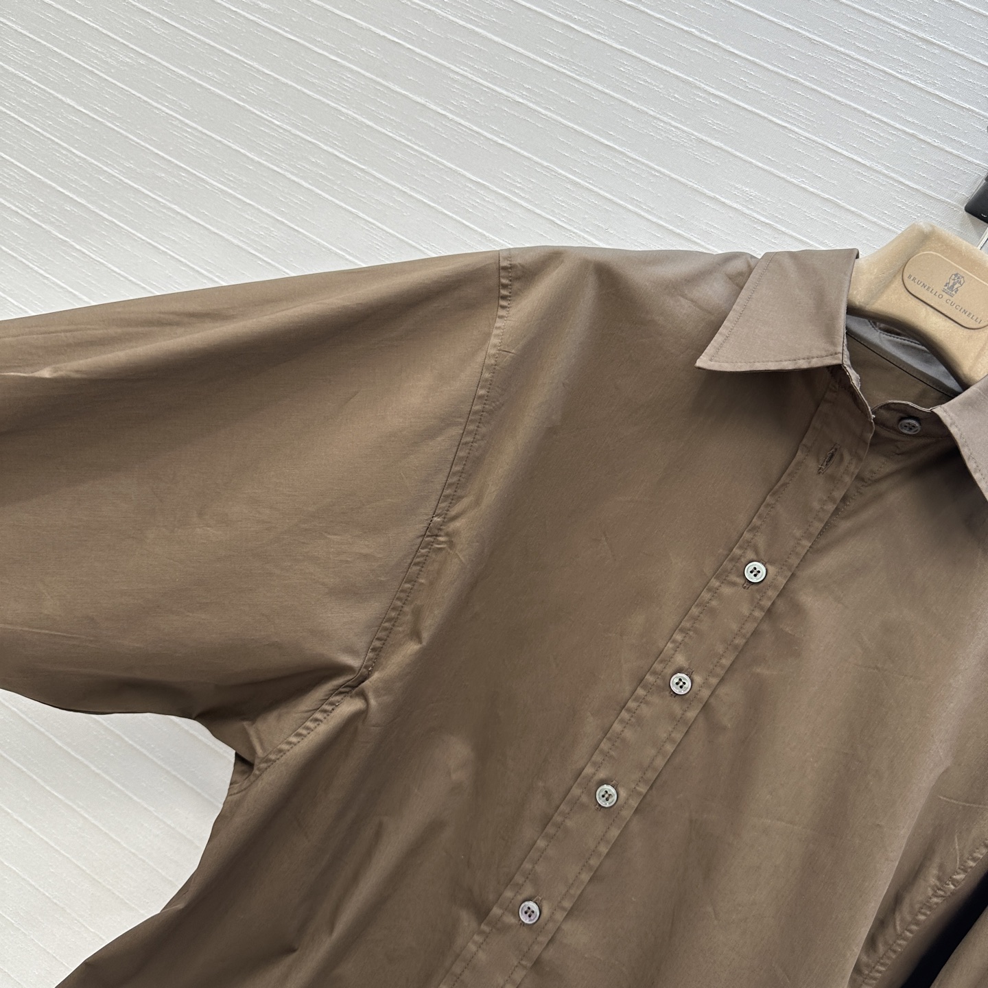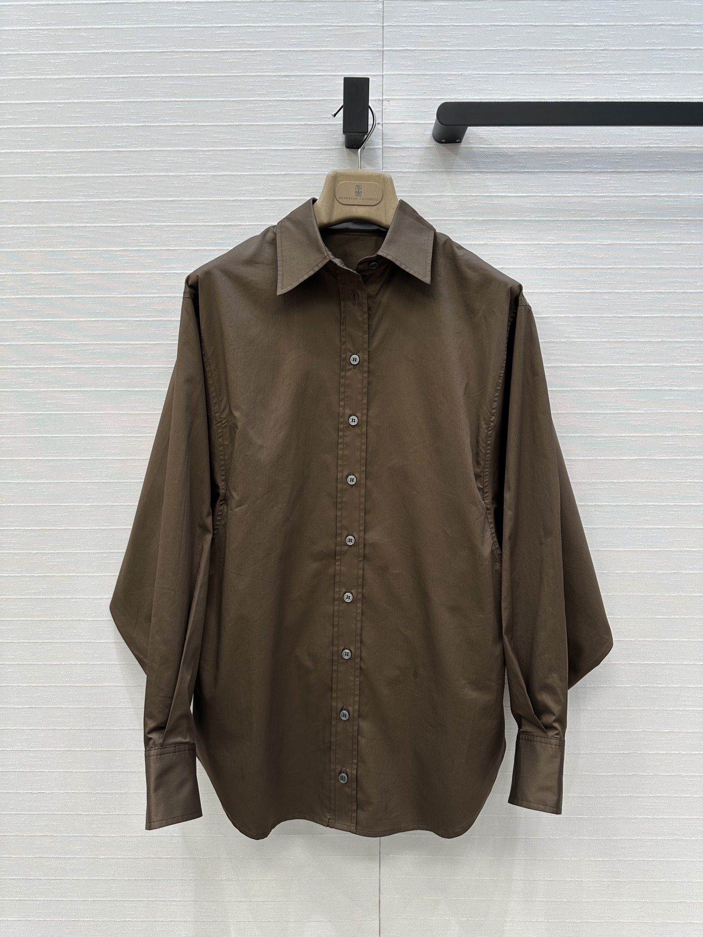 Tags: Brunello Cucinelli Shirt, Casual Work Shirt, Copper Chain Blouse, Cotton Off Shoulder Top, Designer Button Down, Off Shoulder Shirt