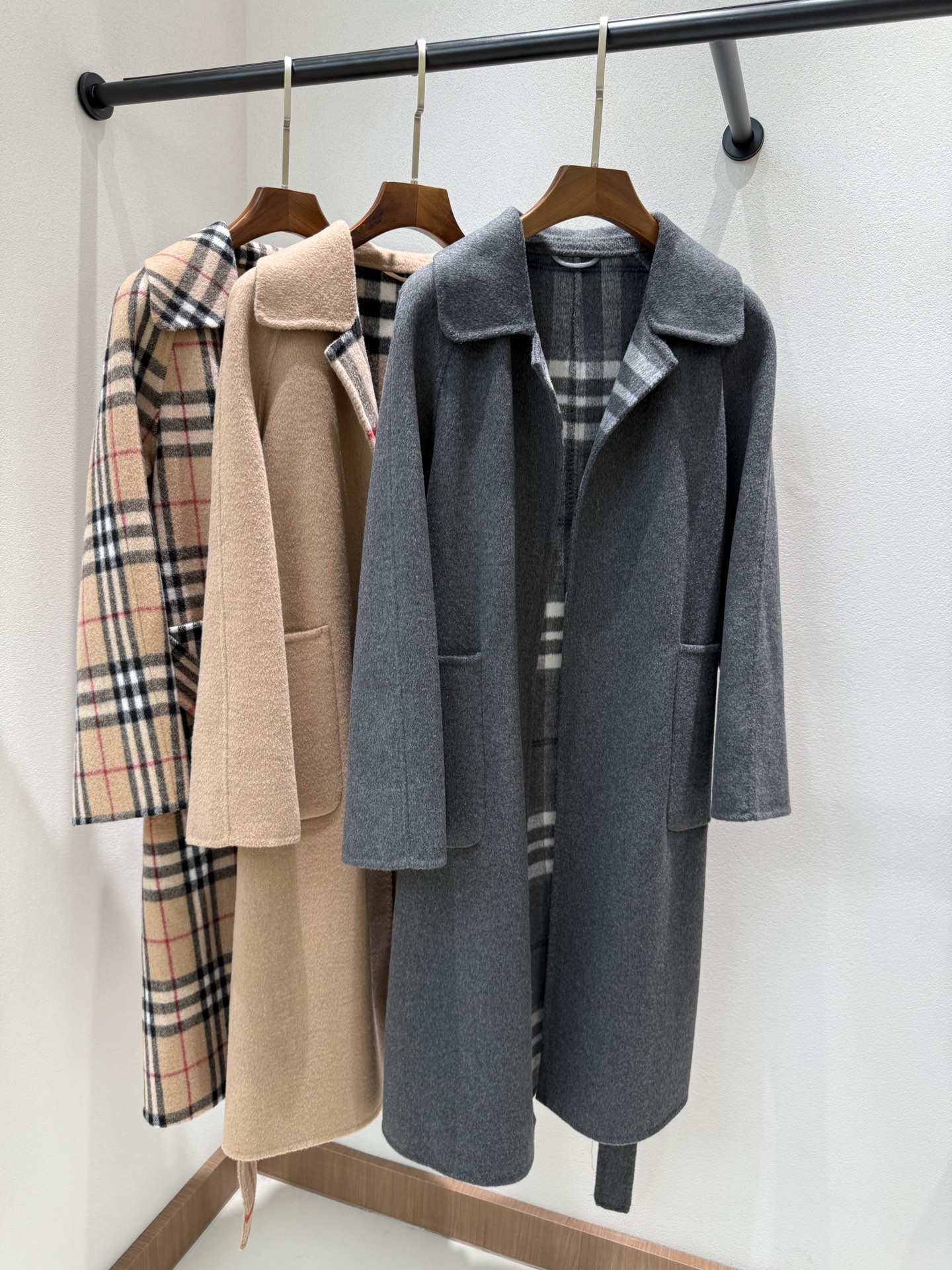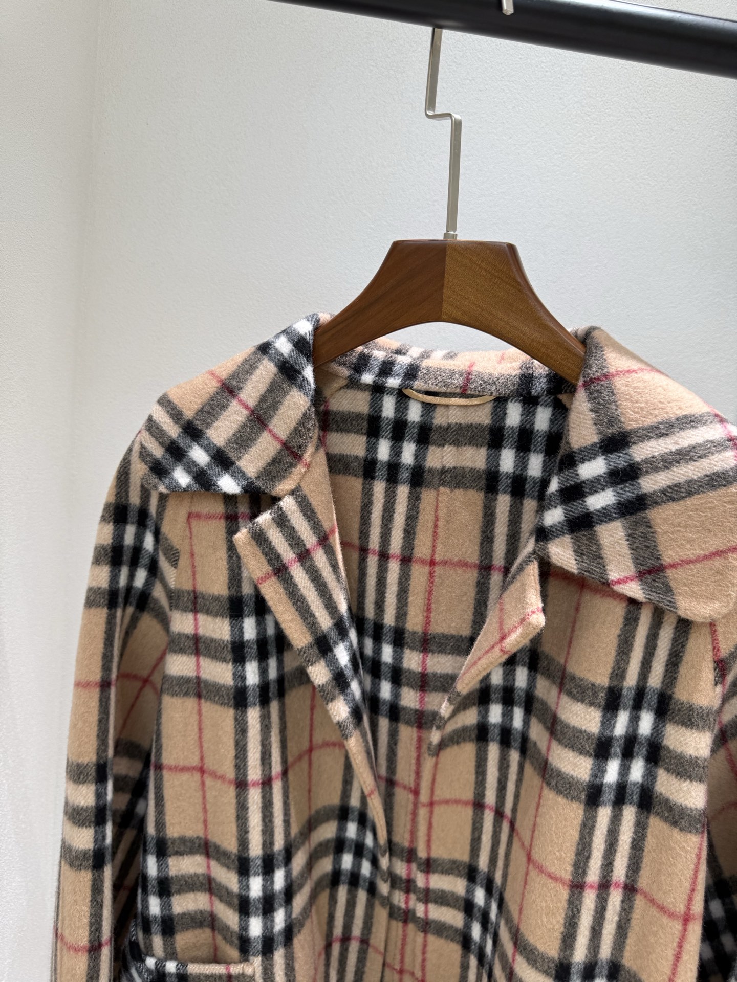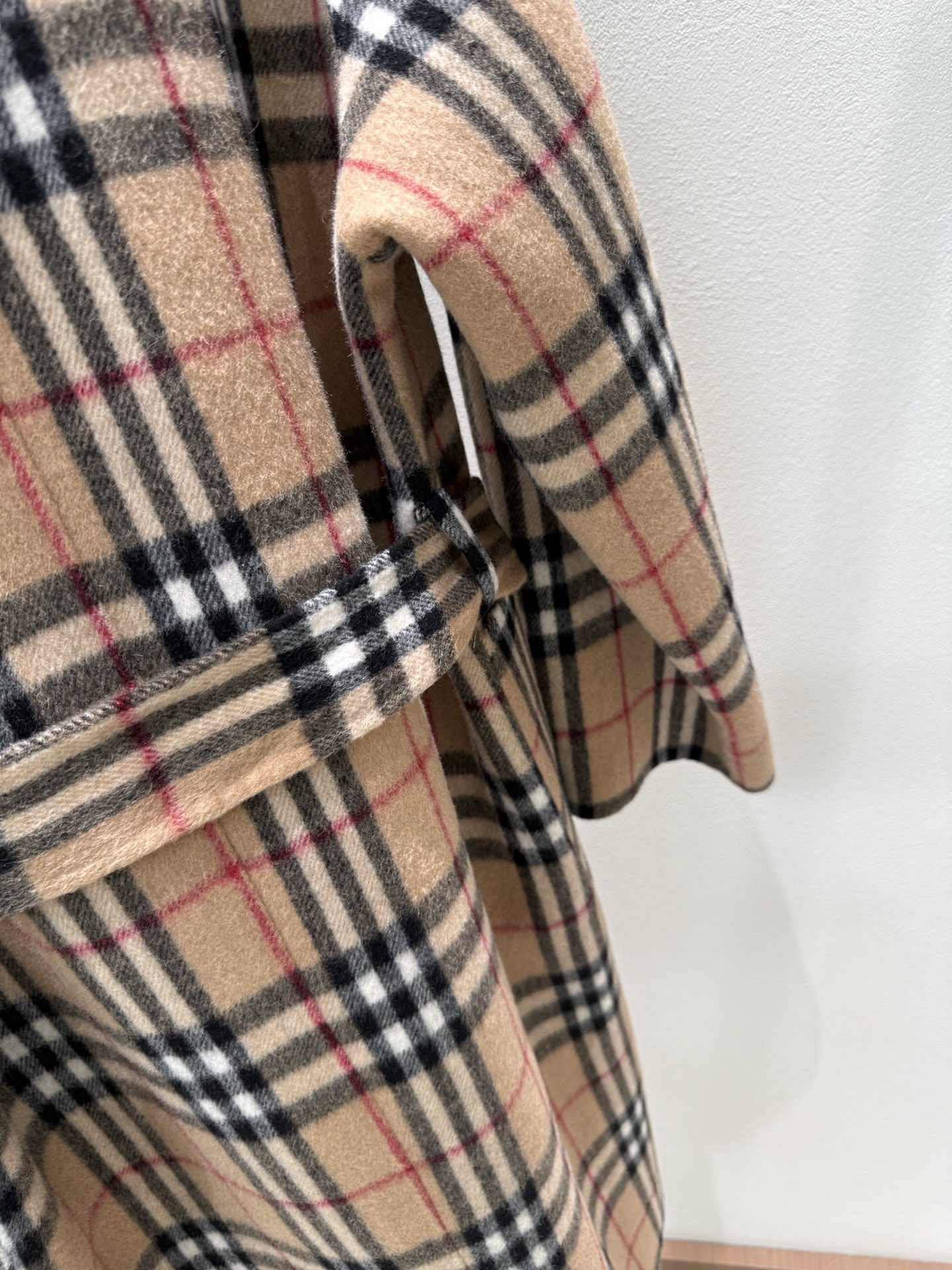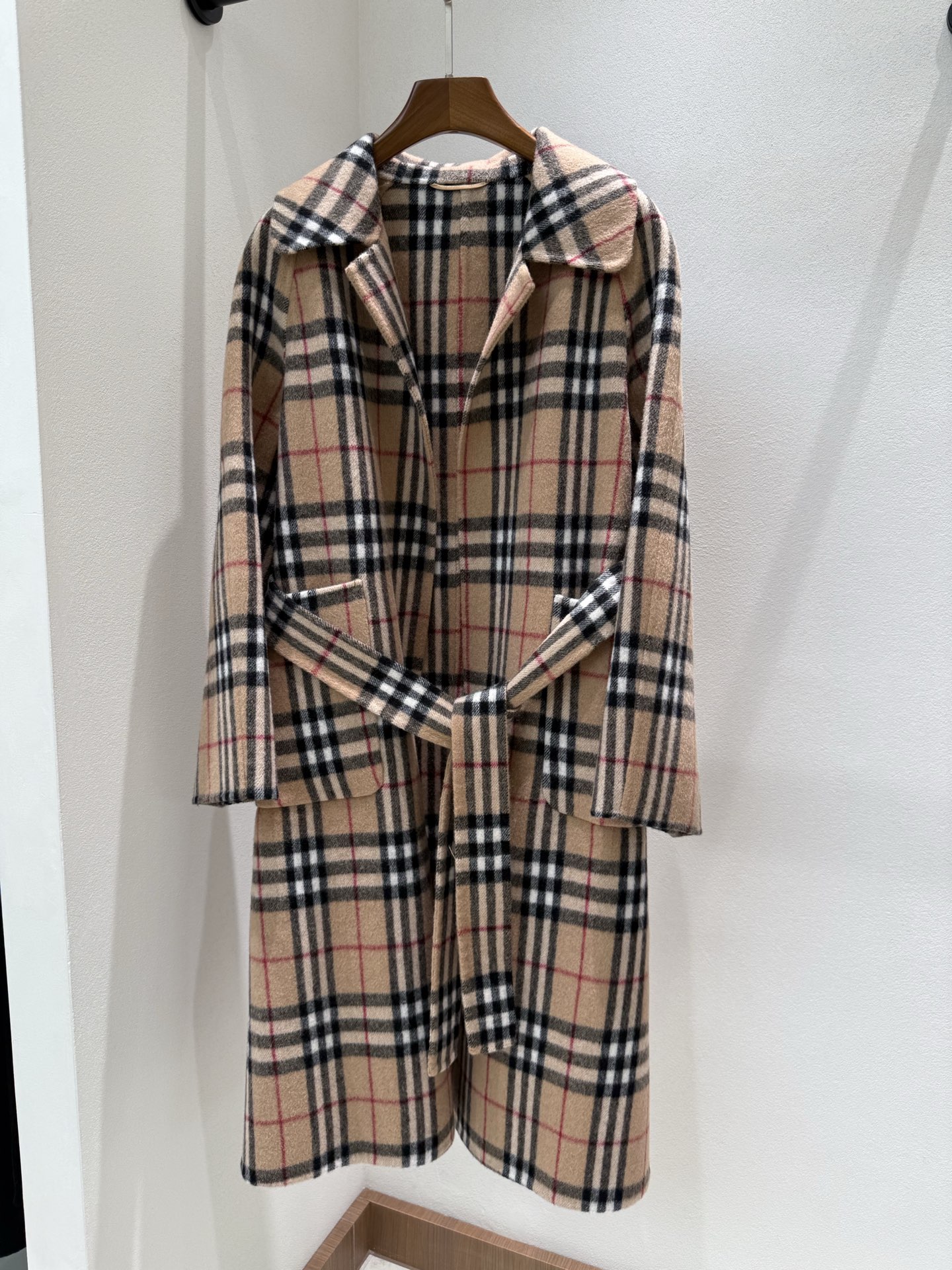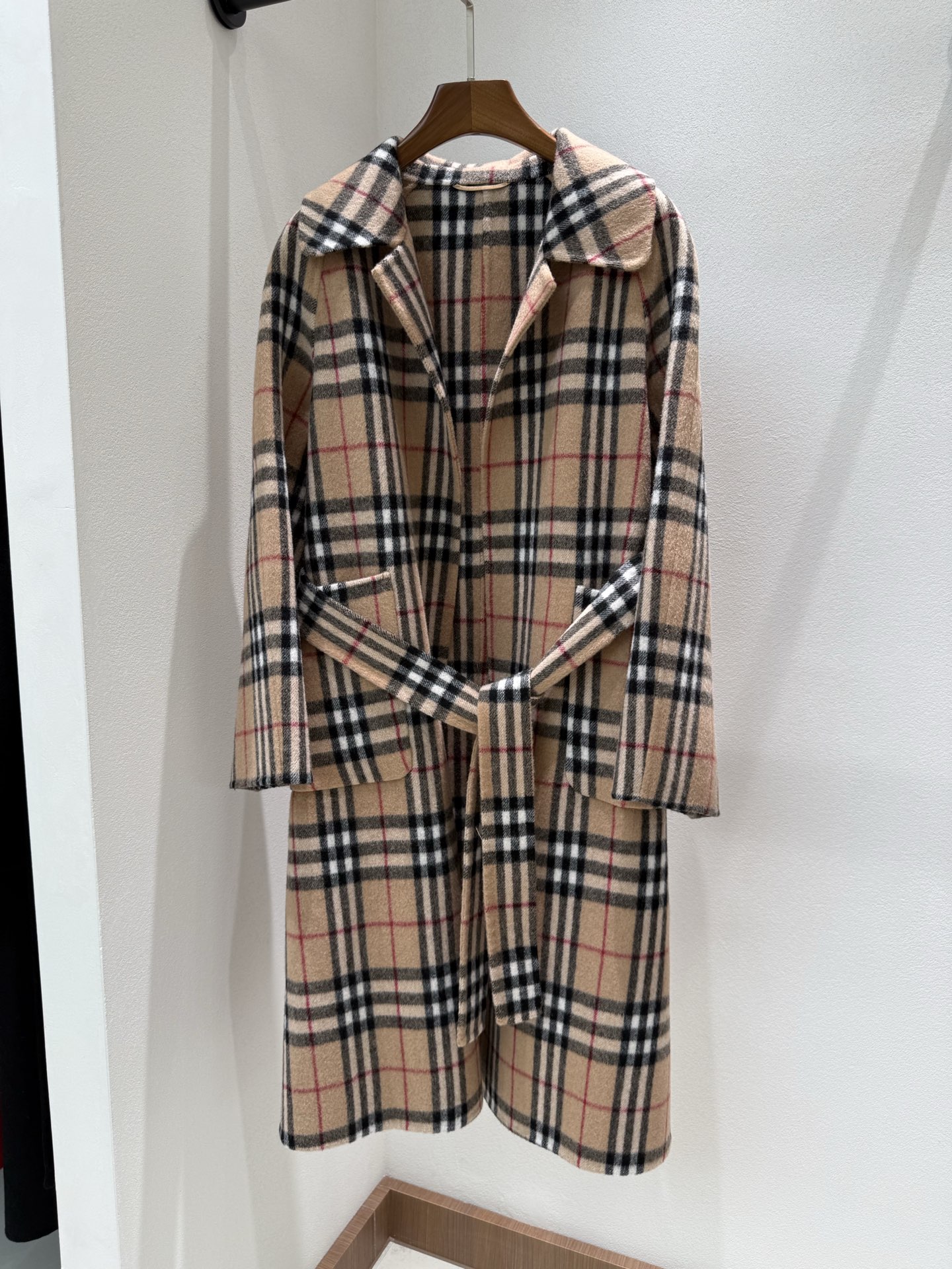 Burberry Inspired Plaid Wool Blend Belted Coat, Classic Design, Three Colors