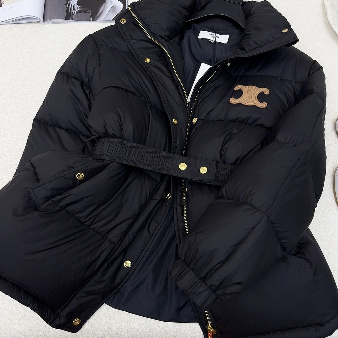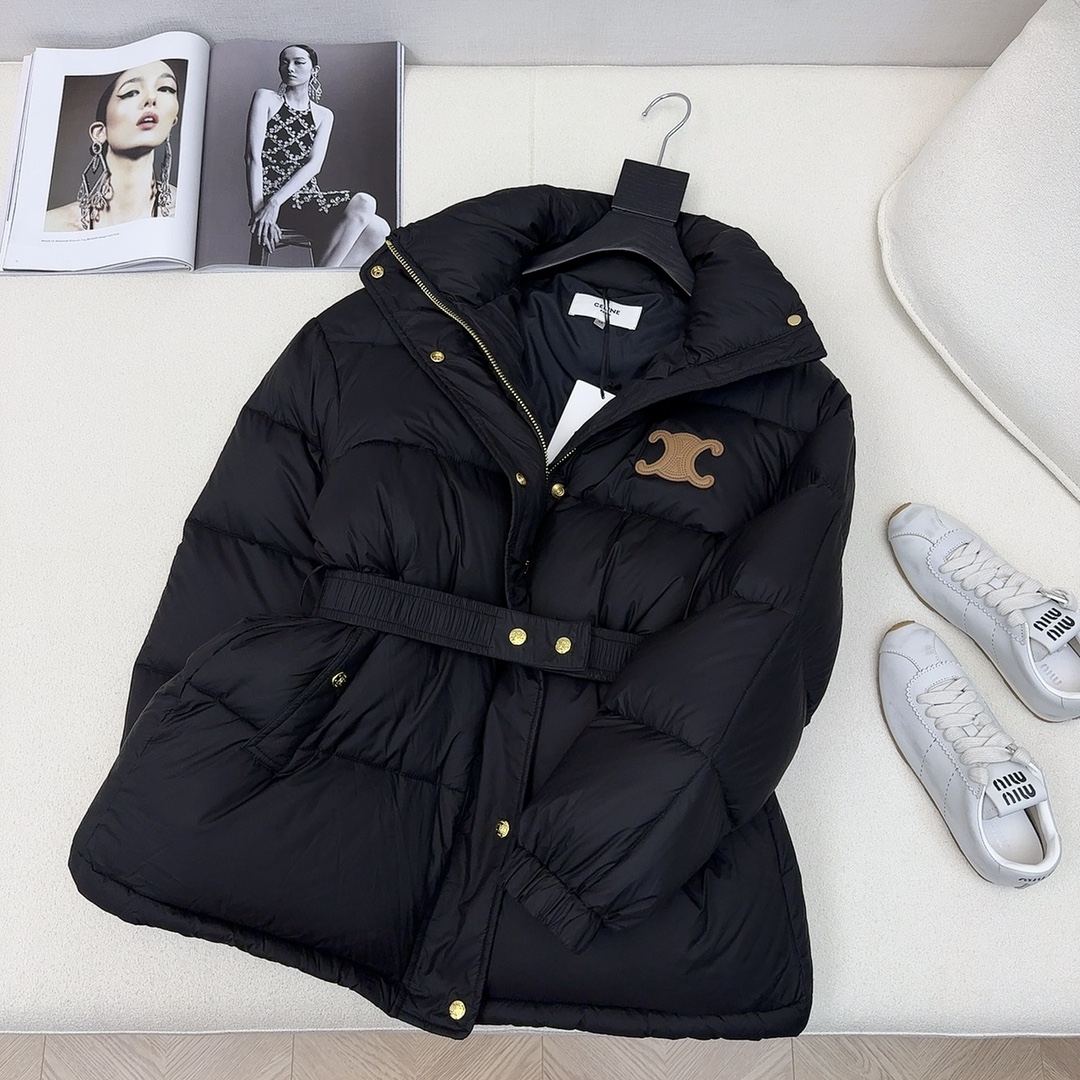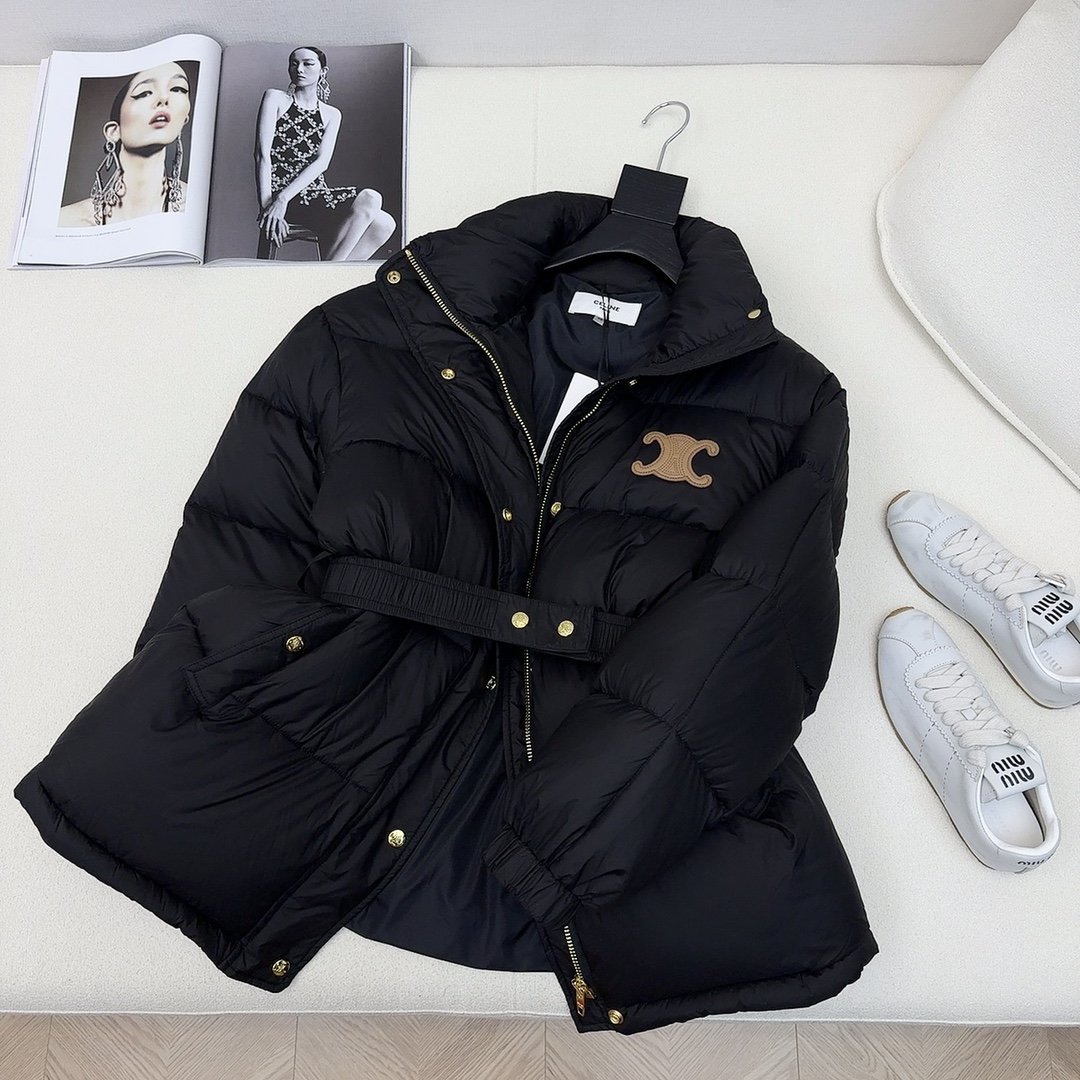 Tags: Belted Waist Jacket, Black Down Jacket, Celine Winter Coat, Designer Puffer Coat, Down Puffer Coat, Stand Collar Puffer