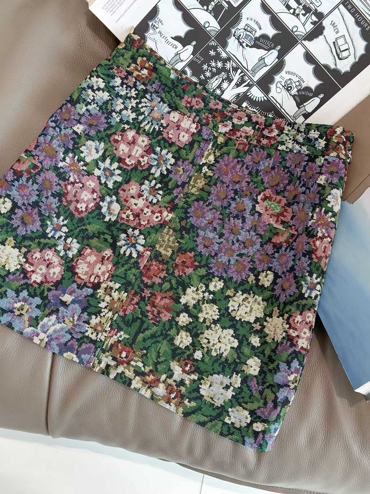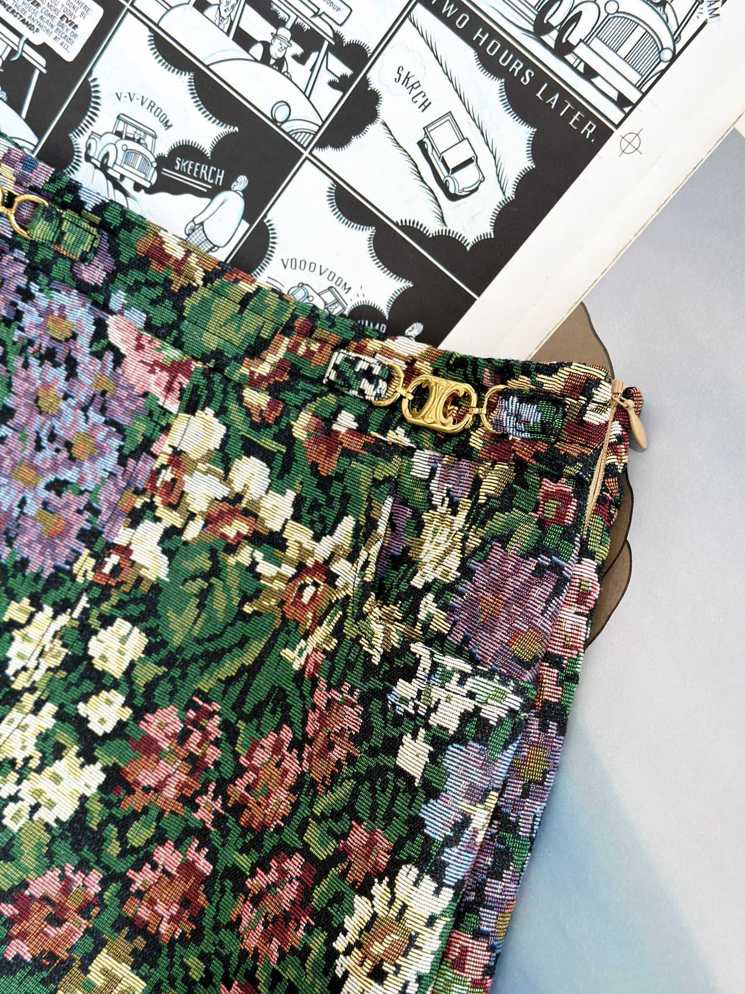 Tags: Celinee Skirt, Floral Jacquard Skirt, Flower Print Skirt, Luxury Mini Skirt, Straight Mini Skirt