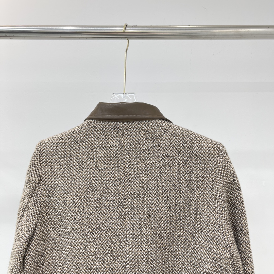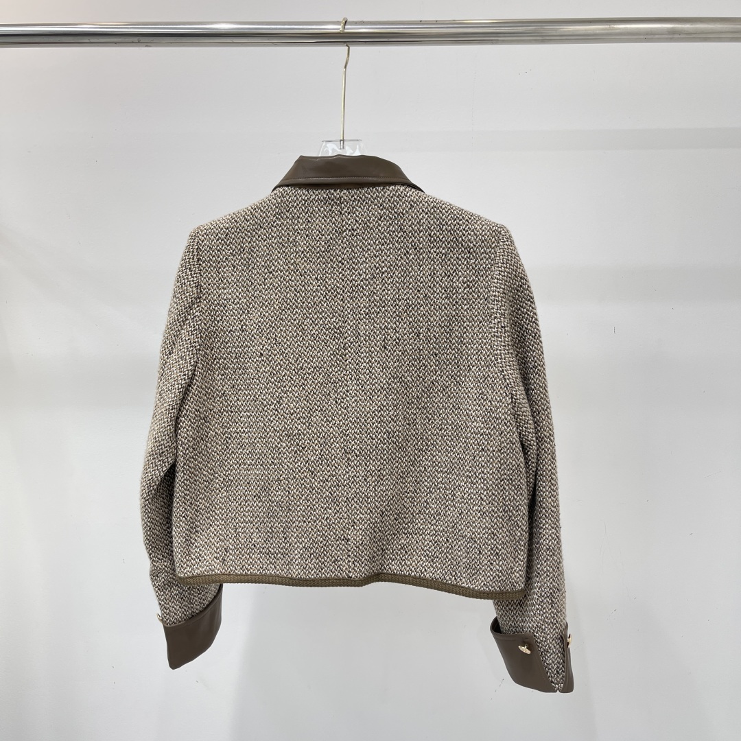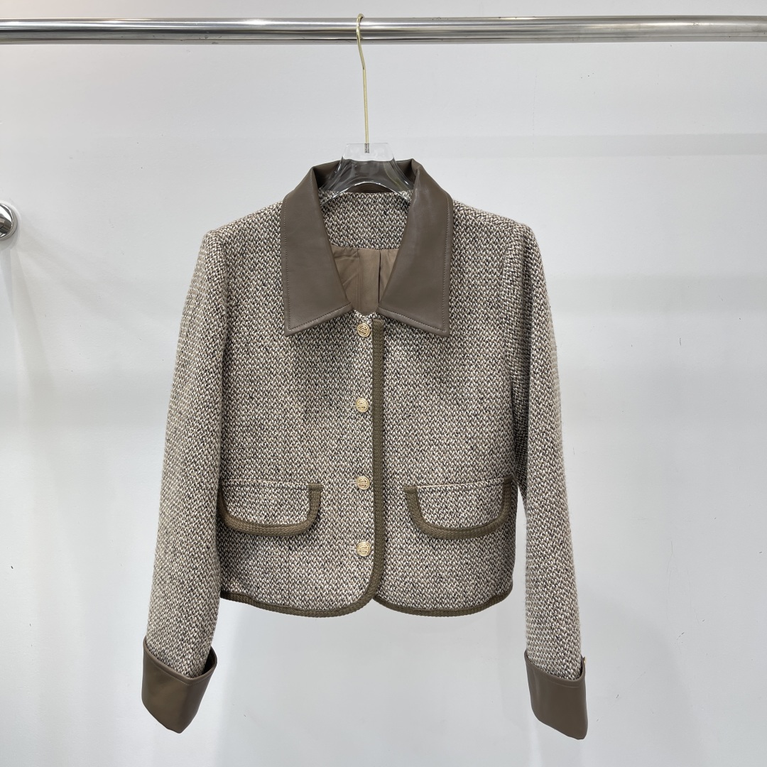 This Chanel-Inspired tweed skirt suit combines classic elegance with modern style. The set includes a beautifully tailored jacket and a pleated skirt, both made from high-quality tweed fabric and accented with sophisticated leather trim.