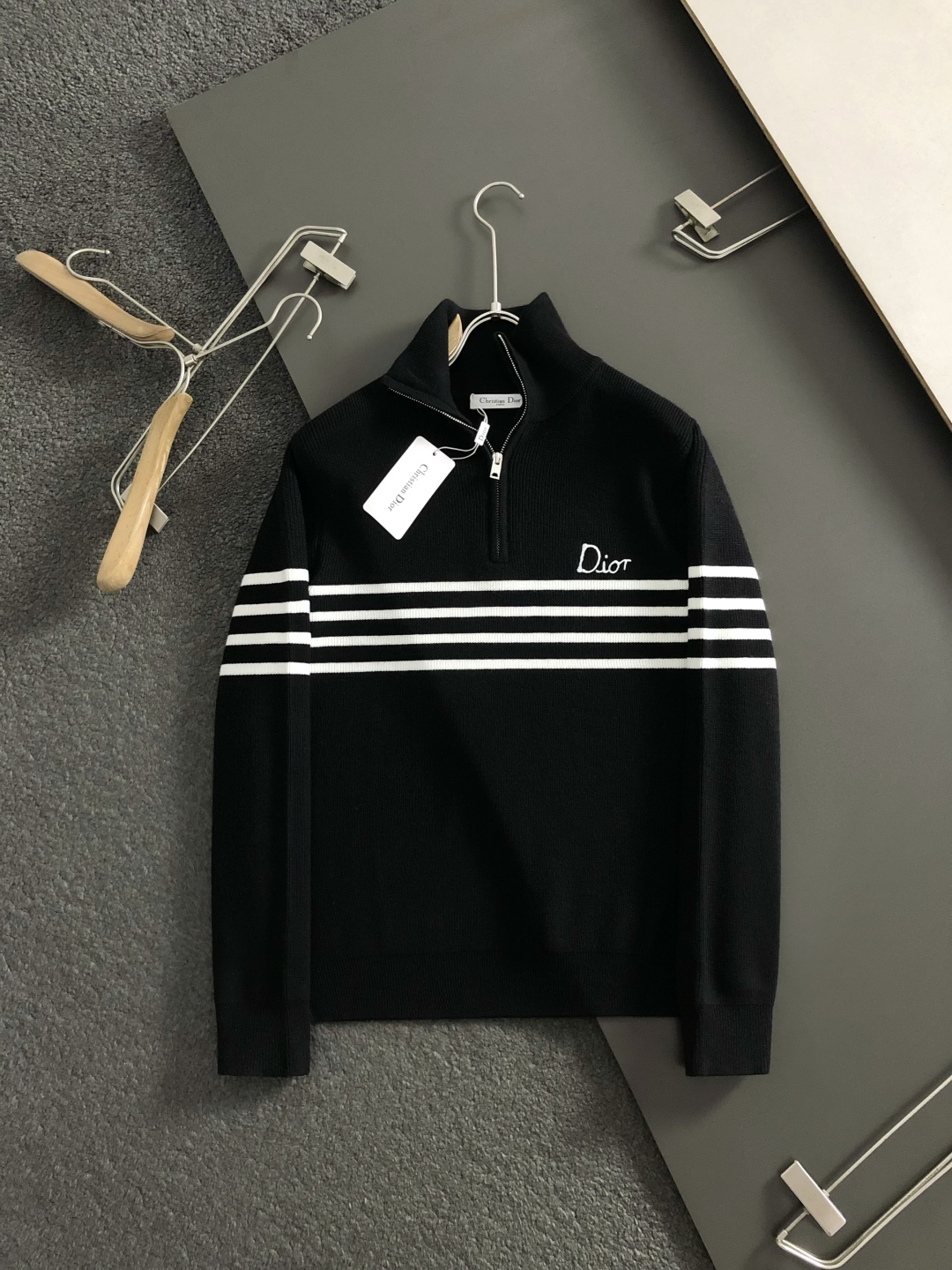With its blend of quality, style, and comfort, the Christian Dior Striped Half-Zip Sweater is sure to become a favorite.
