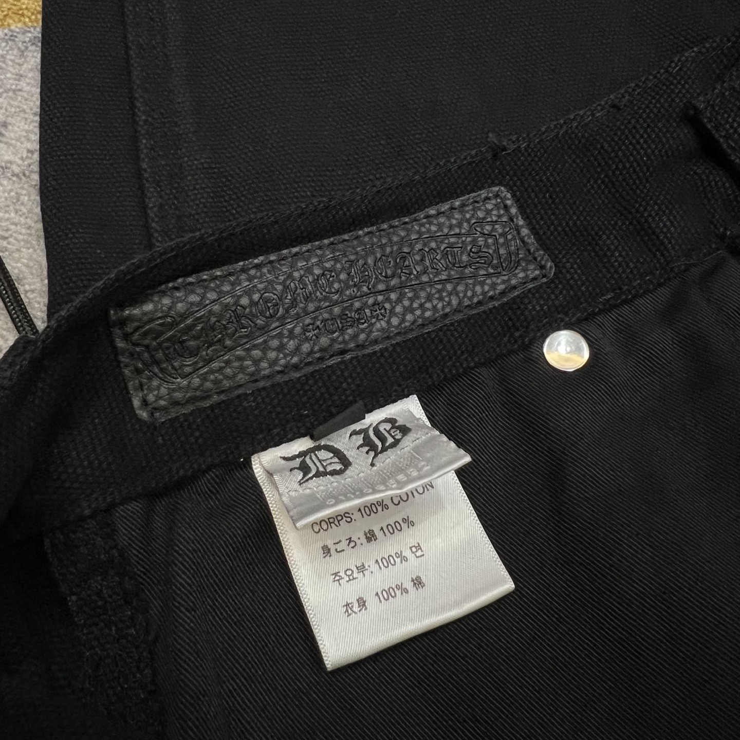 These Chrome Hearts butterfly denim jeans are a unique blend of vintage and modern design. Featuring a vintage Levi's 501 base, these jeans have been remade with imported lambskin and 925 silver accents, showcasing a distinct butterfly theme.