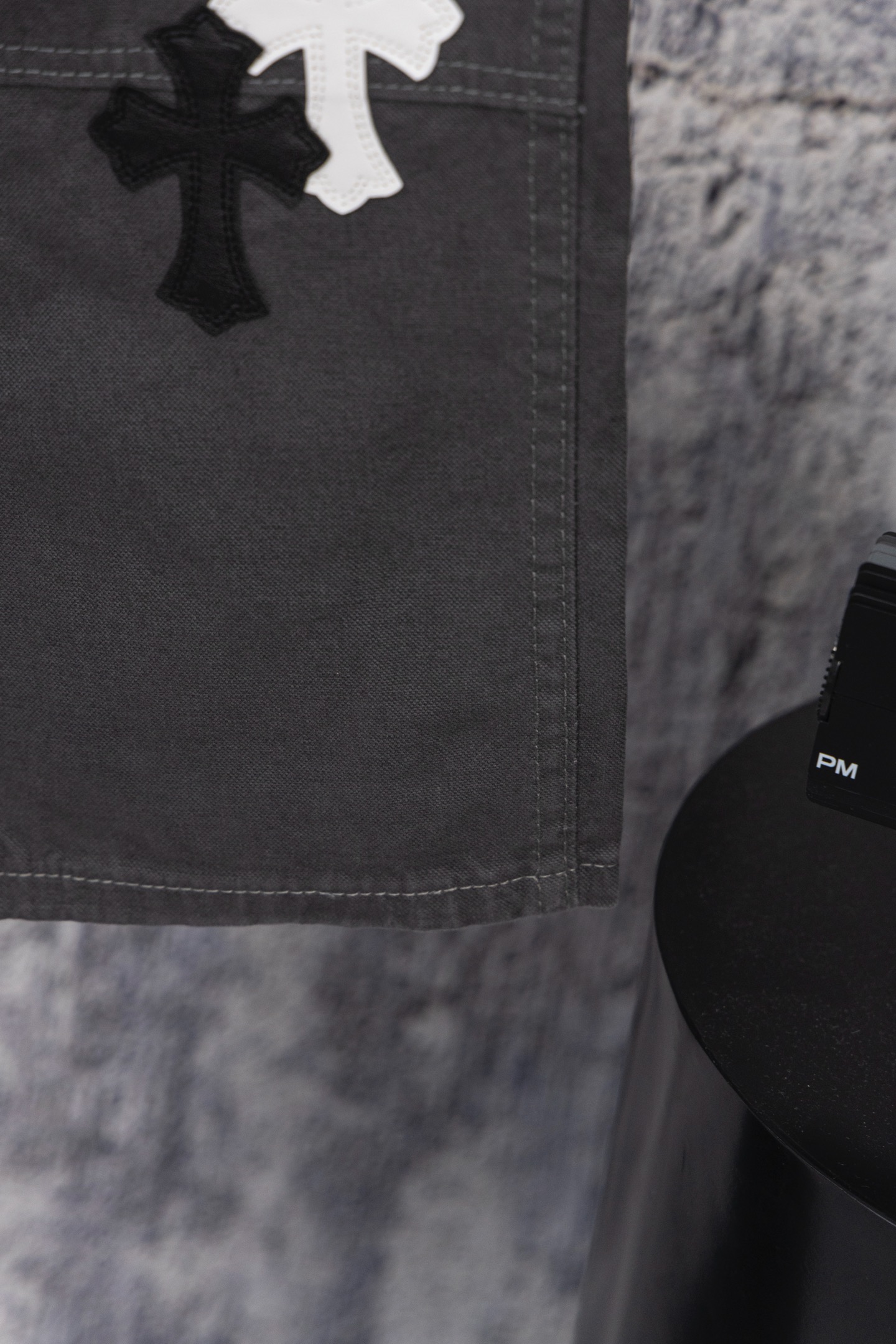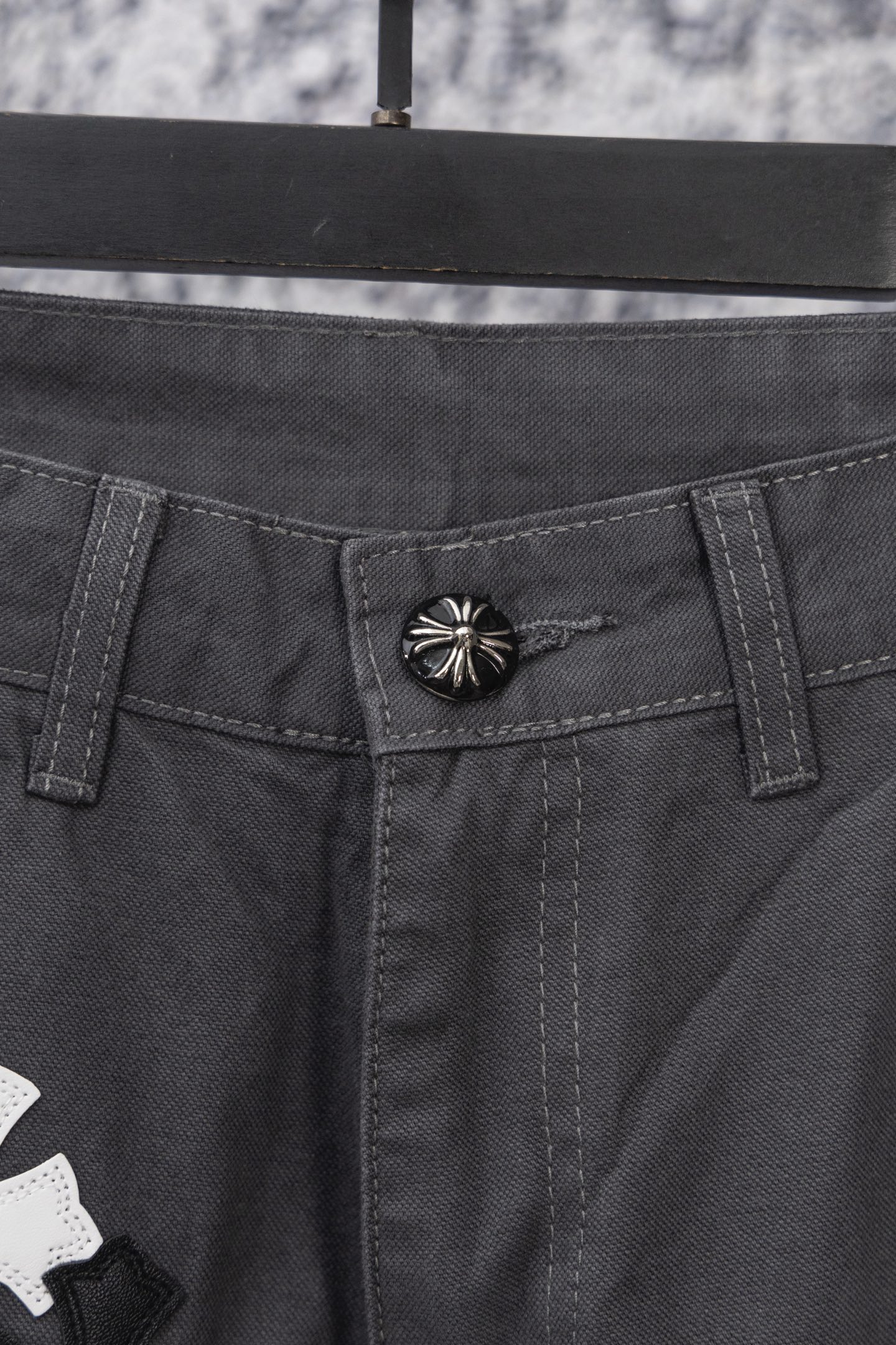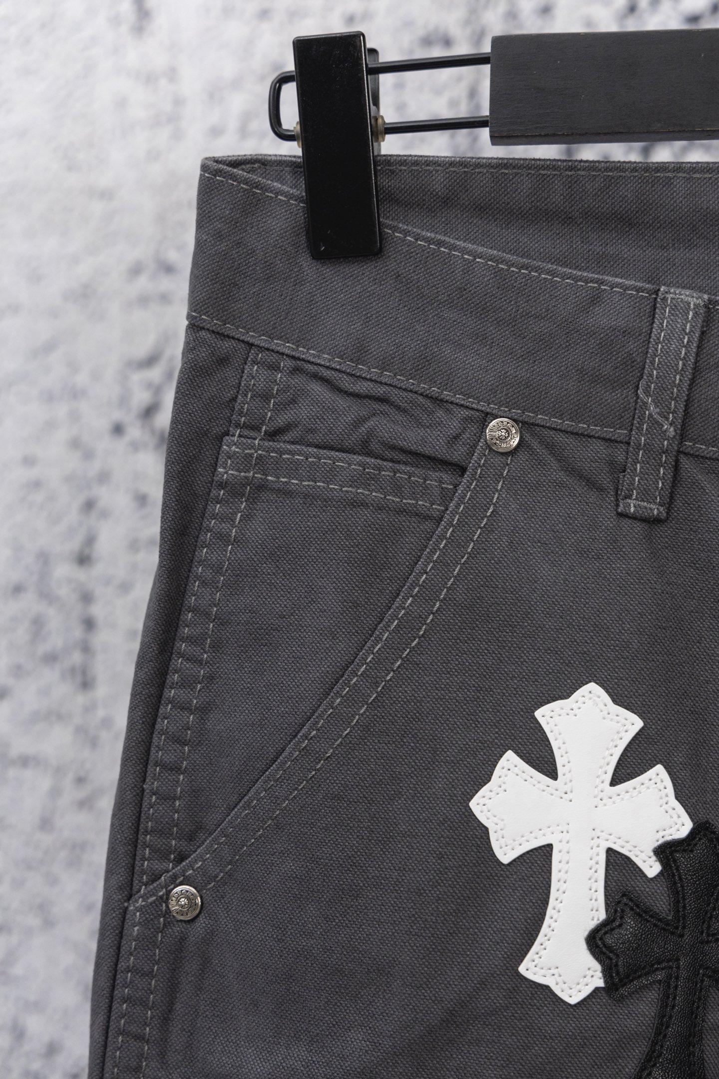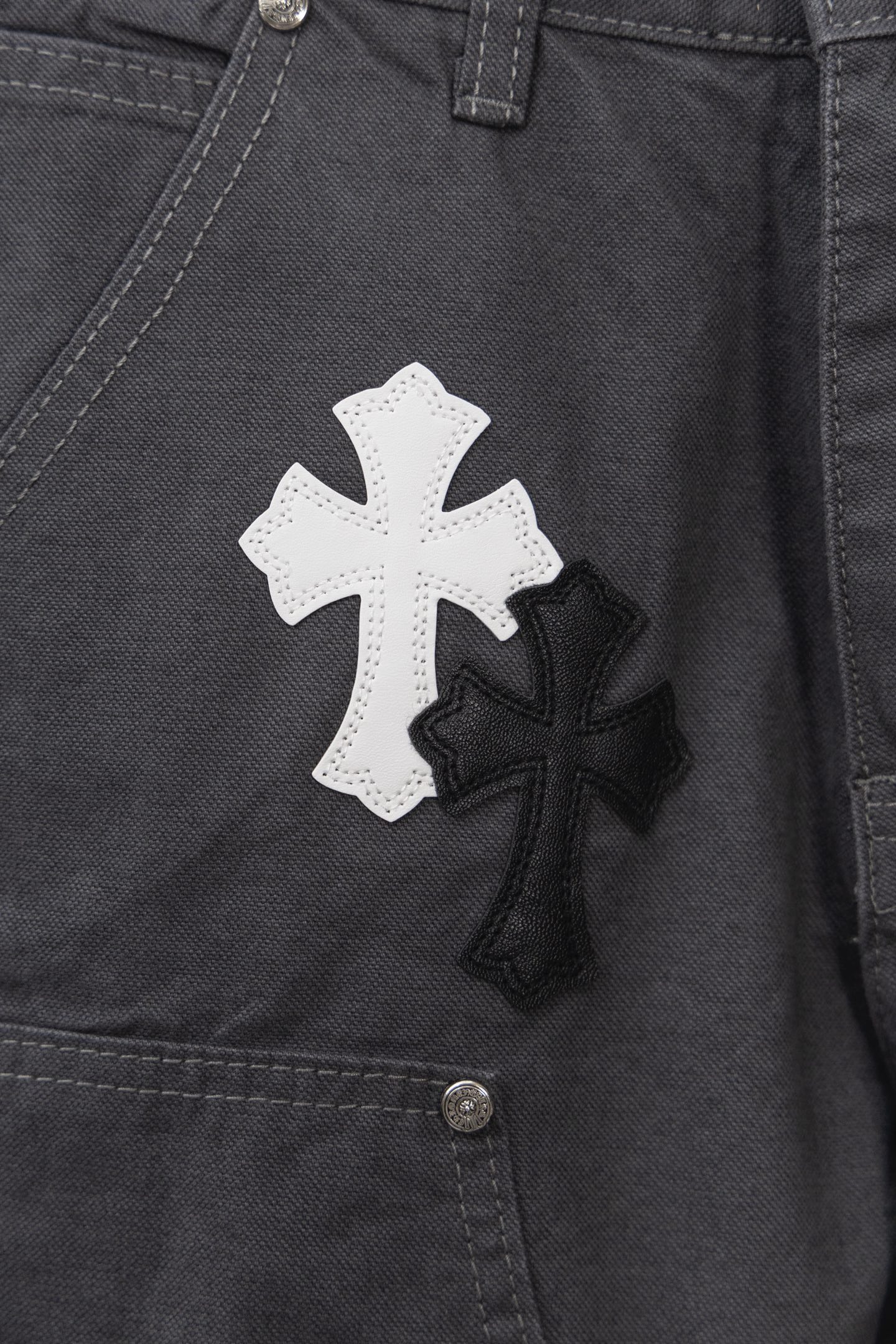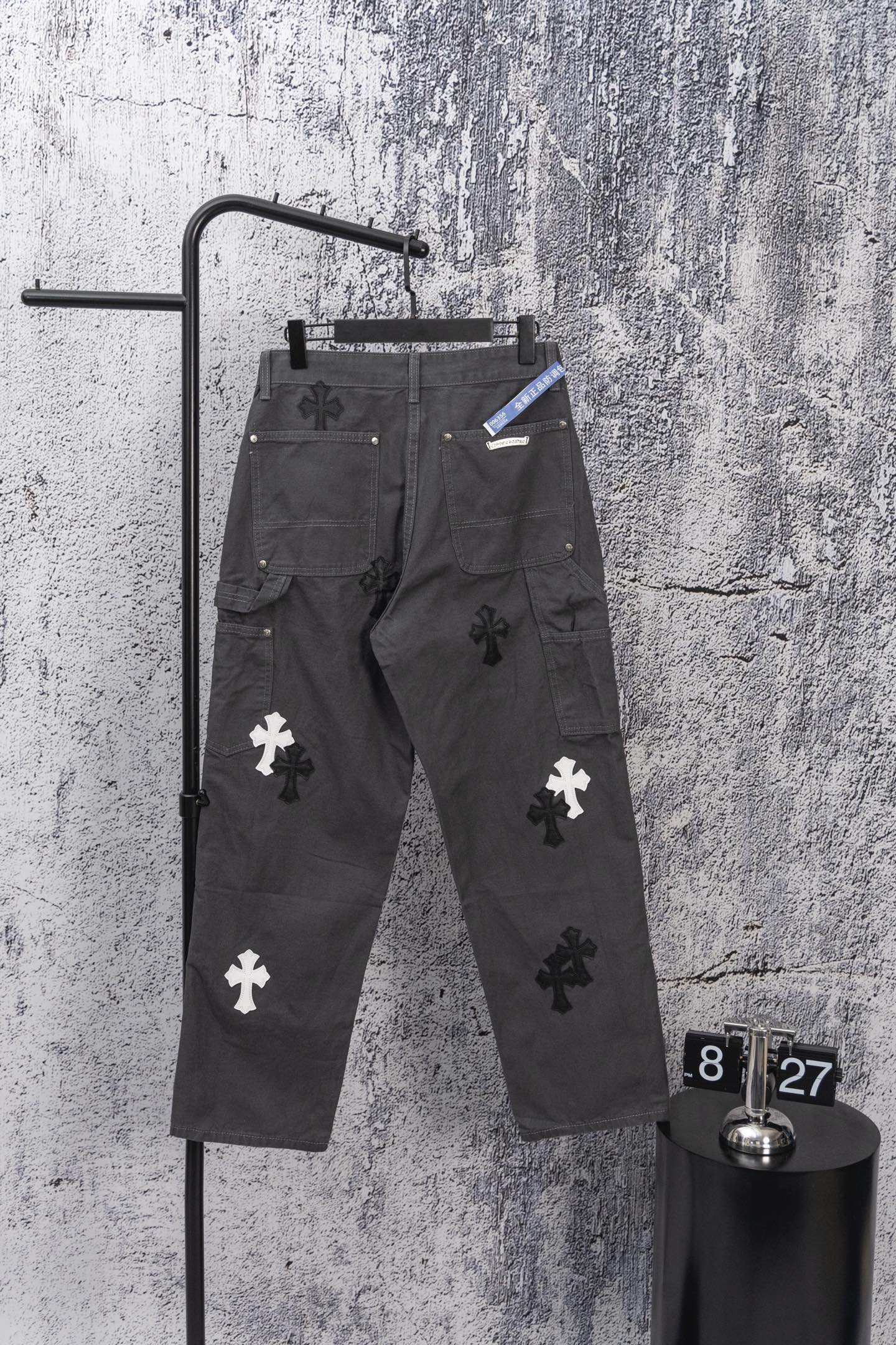 Elevate your street style with these Chrome Hearts grey carpenter jeans. Featuring unique cross patches and a comfortable fit, these denim pants are a must-have.