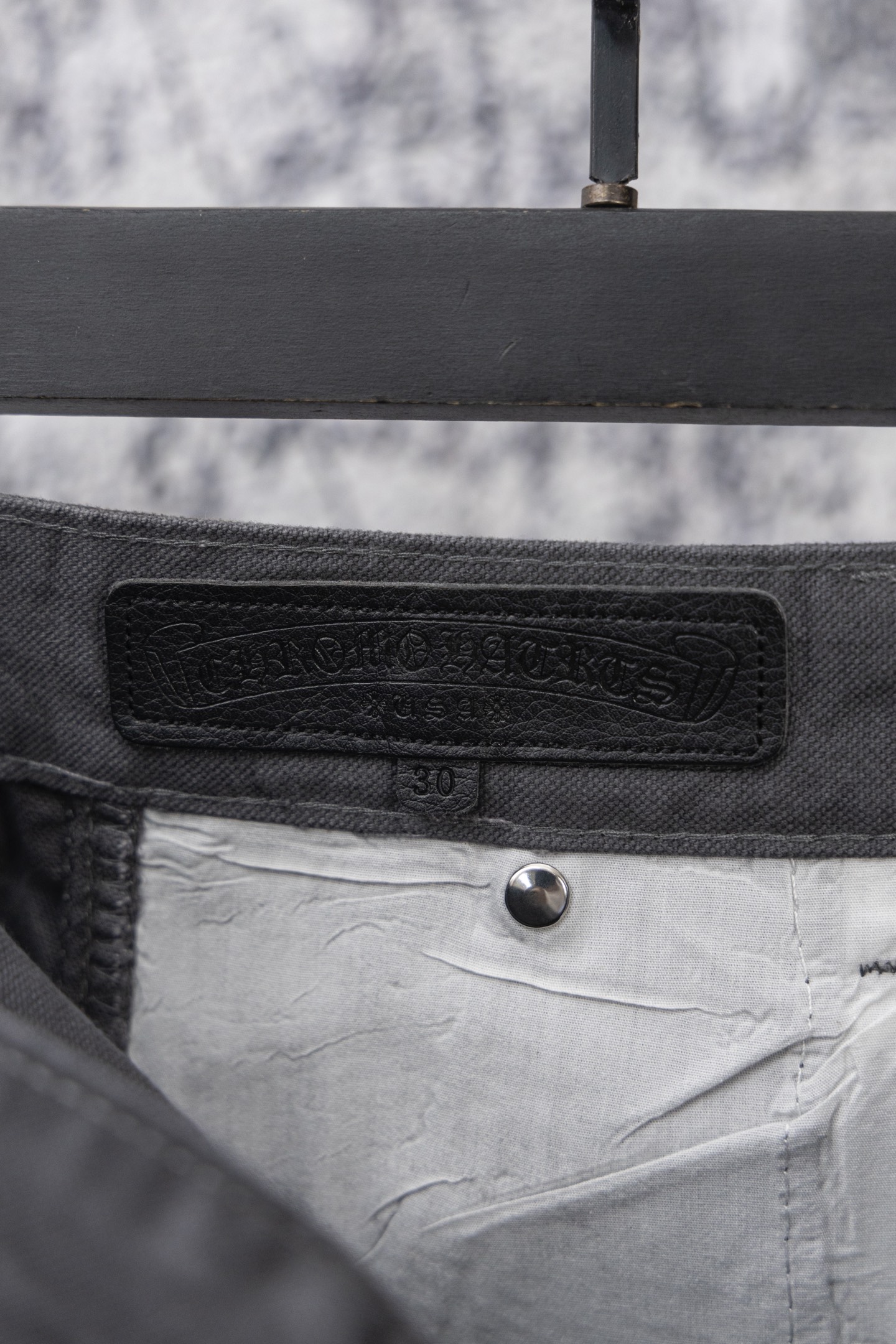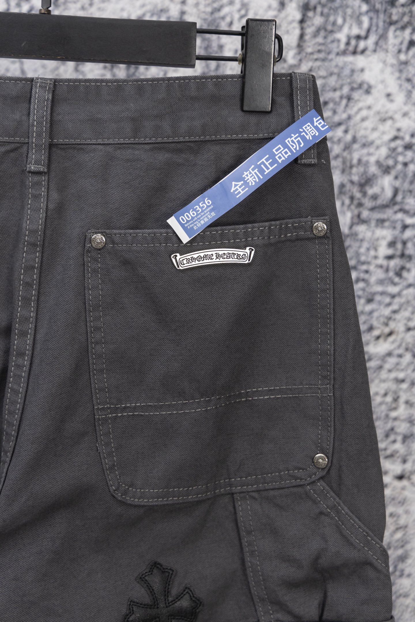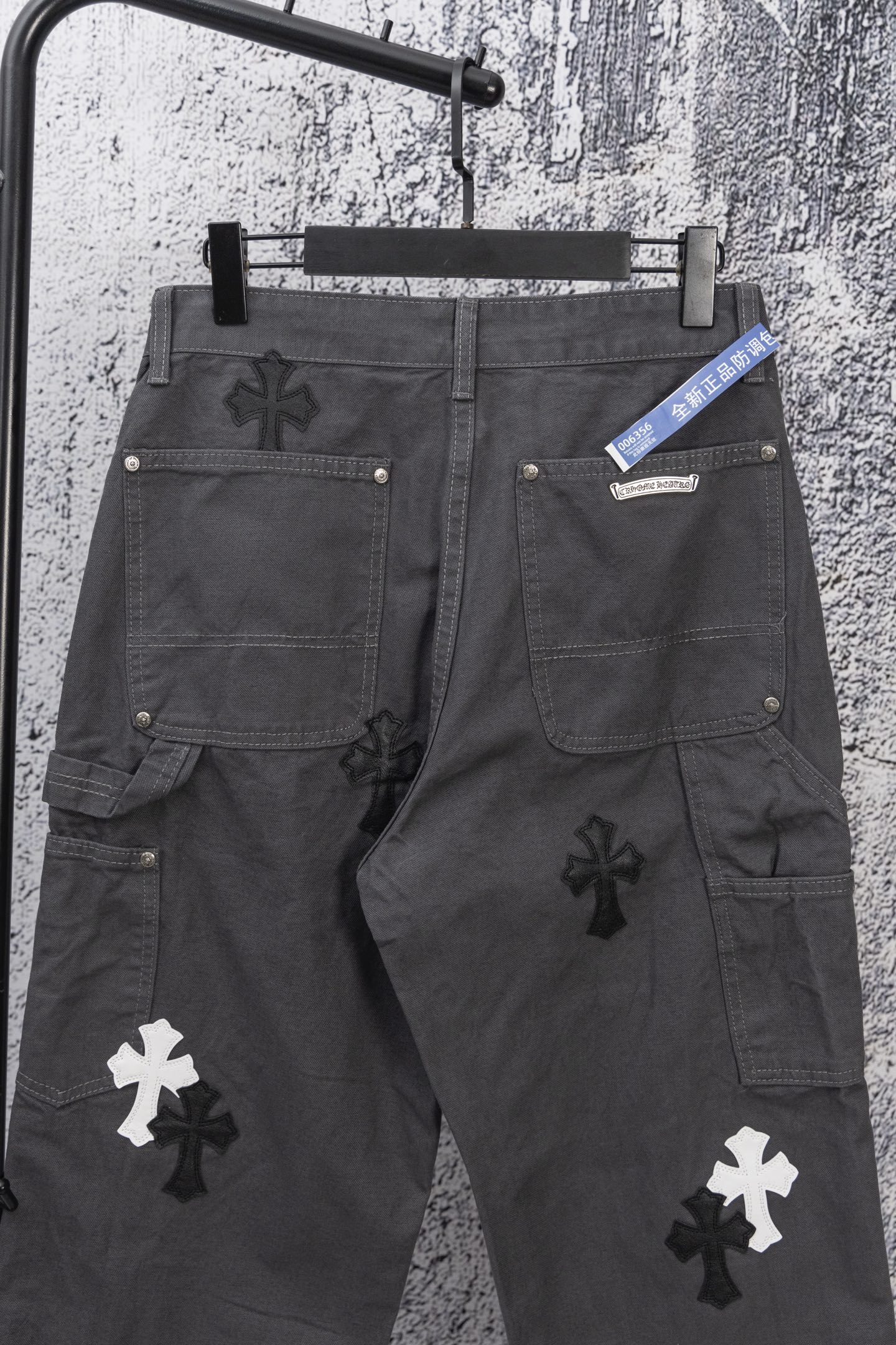 These Chrome Hearts grey carpenter jeans are a statement piece that blends high-end fashion with street style aesthetics. The unique design and quality craftsmanship make them a standout addition to any wardrobe.