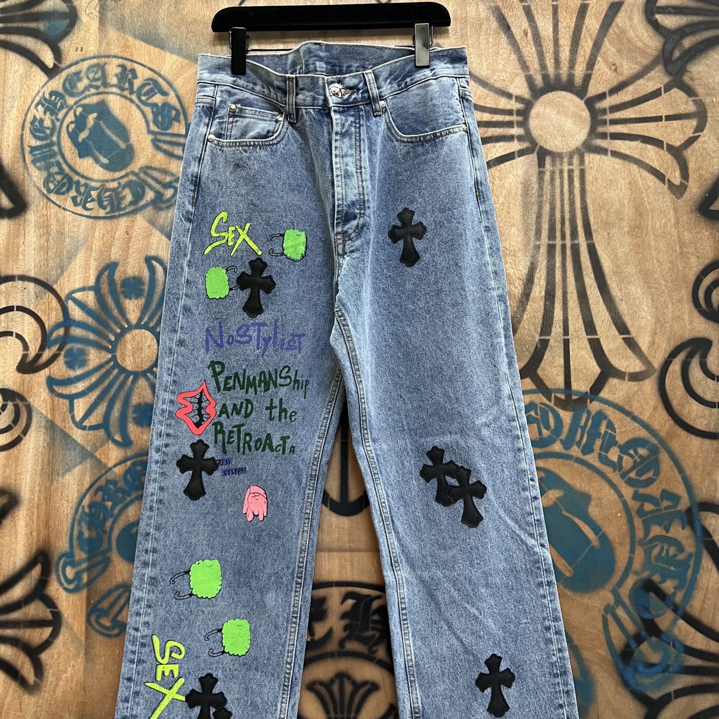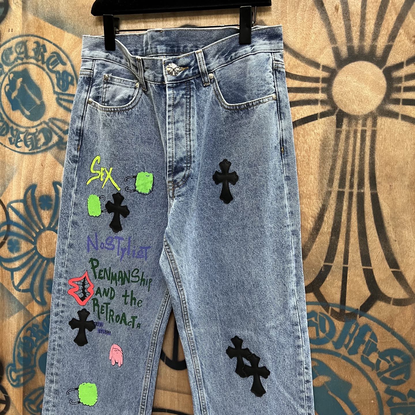 Absolutely in love with these jeans! The vintage Levi's base is so comfortable and the Chrome Hearts design is just stunning. I've gotten so many compliments already!