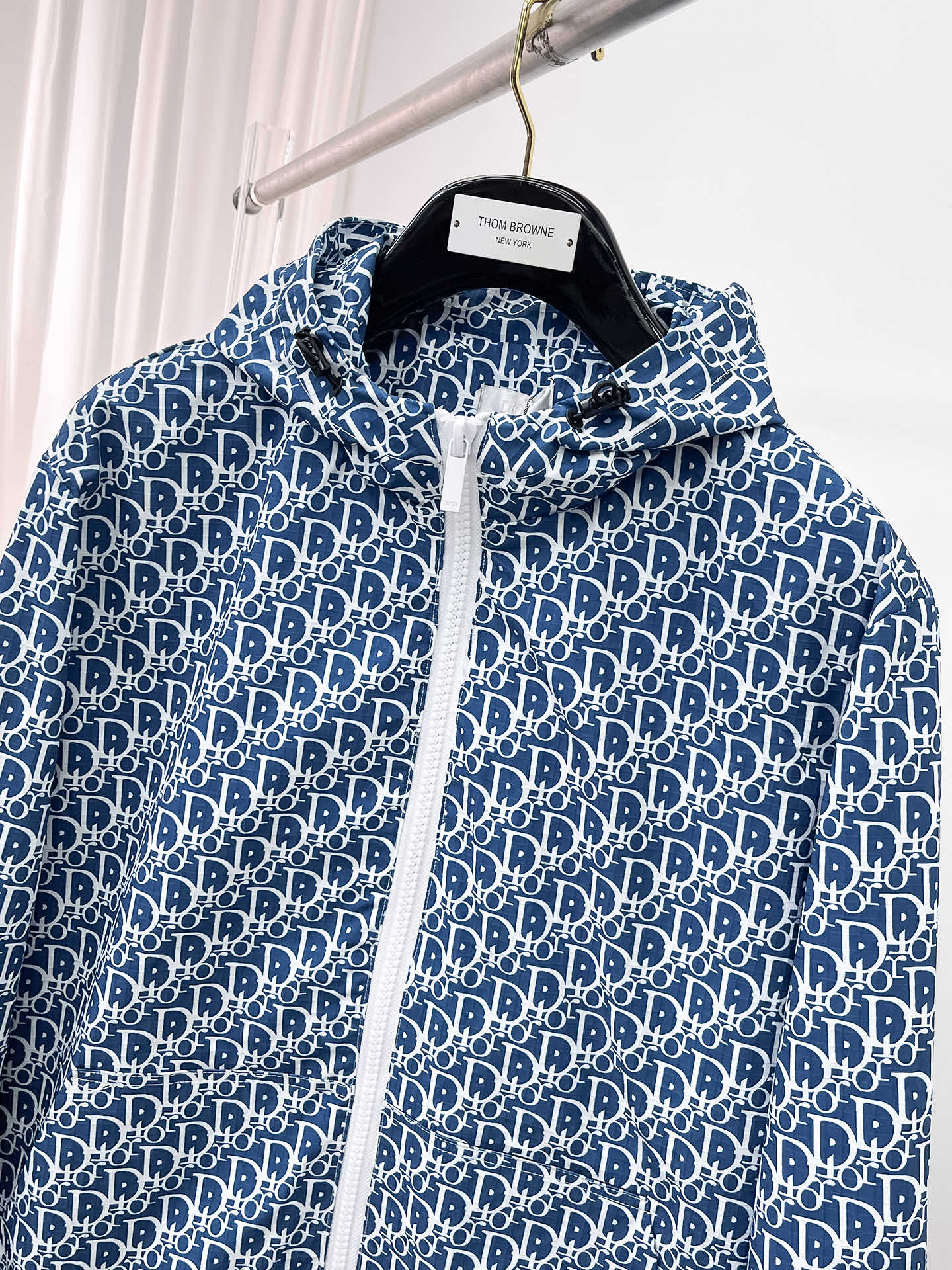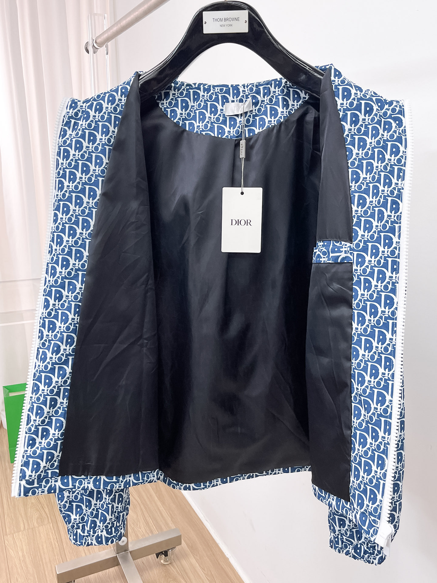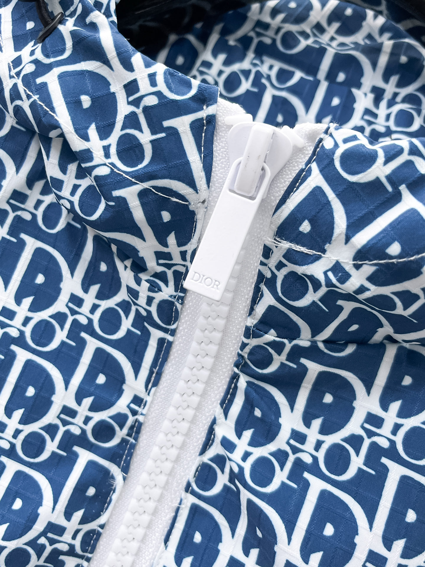 Elevate your style with this Dior jacket featuring a full logo print, zip closure, and impeccable craftsmanship. A must-have for the fashion-forward man.