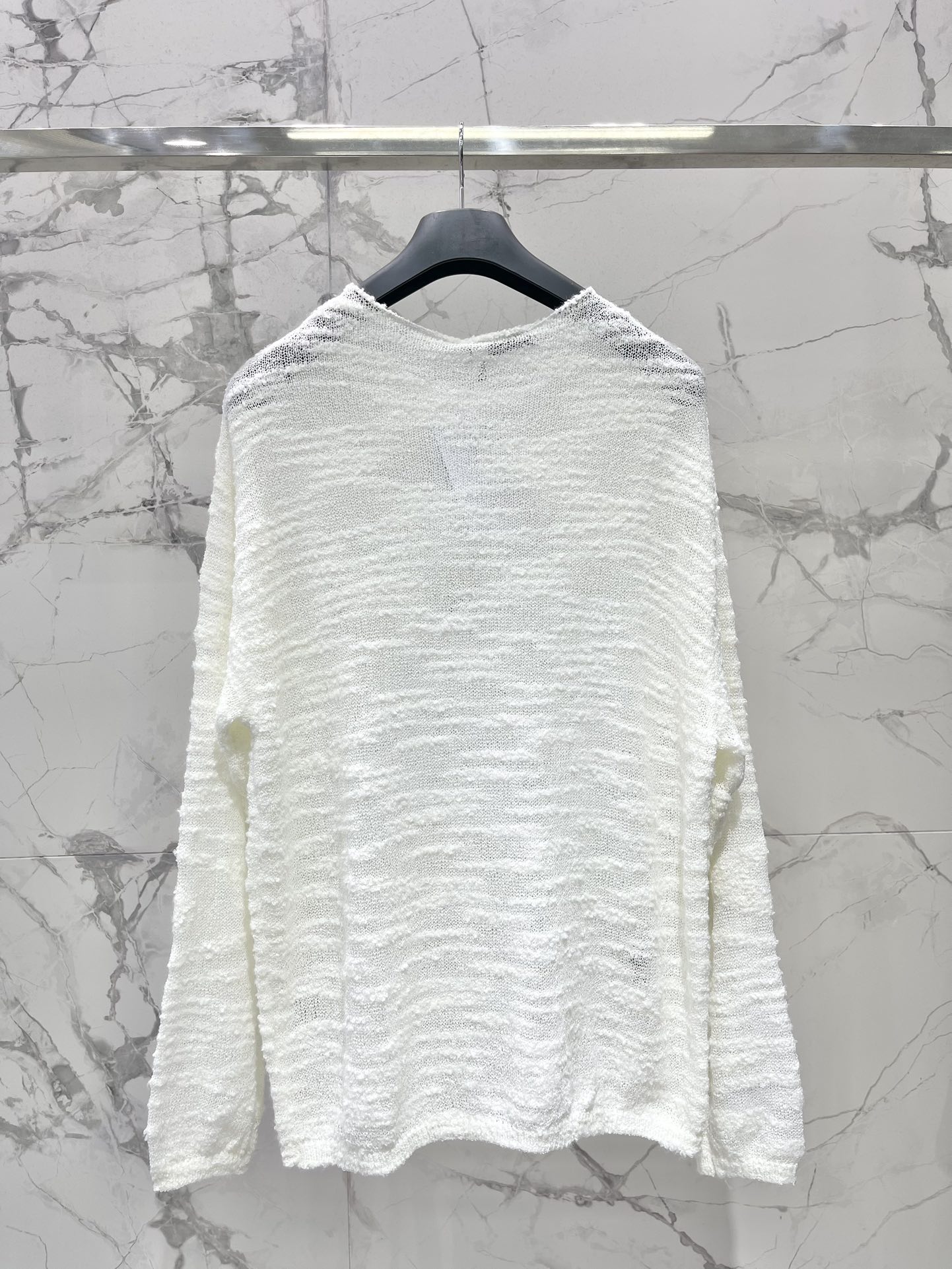 Tags: Designer Women's Top, Dior Fashion Top, Dior Knitted Cardigan, Elegant See Through Cardigan, Loose Fit Knitted Top, See Through Long Sleeve Top