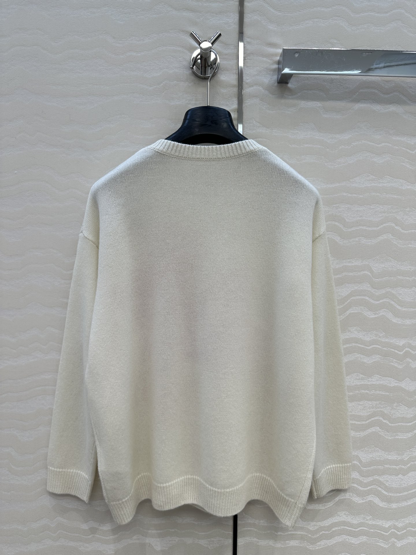 Tags: Cashmere Sweater Women, Designer Women Sweater, Elegant Knit Jumper, Embroidered Logo Sweater, Luxury Wool Sweater, Relaxed Fit Sweater