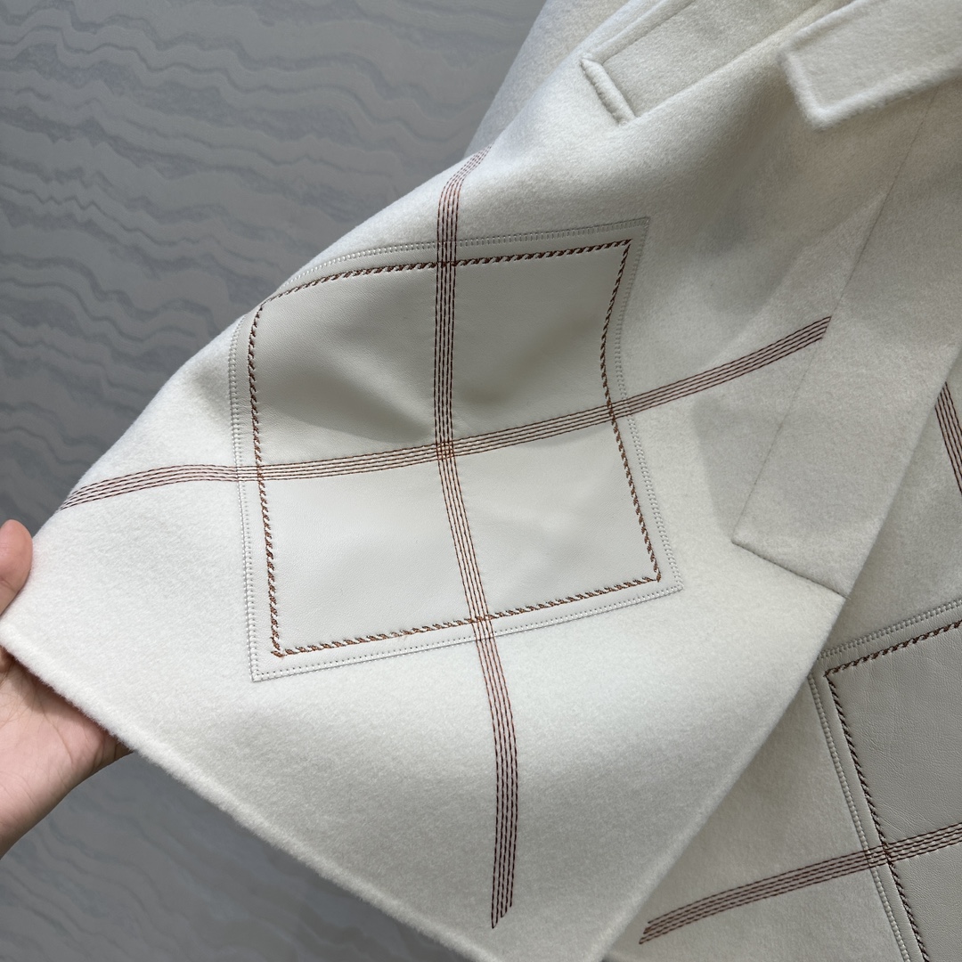 - Material: 90% Wool, 10% Cashmere, 100% Lambskin Leather