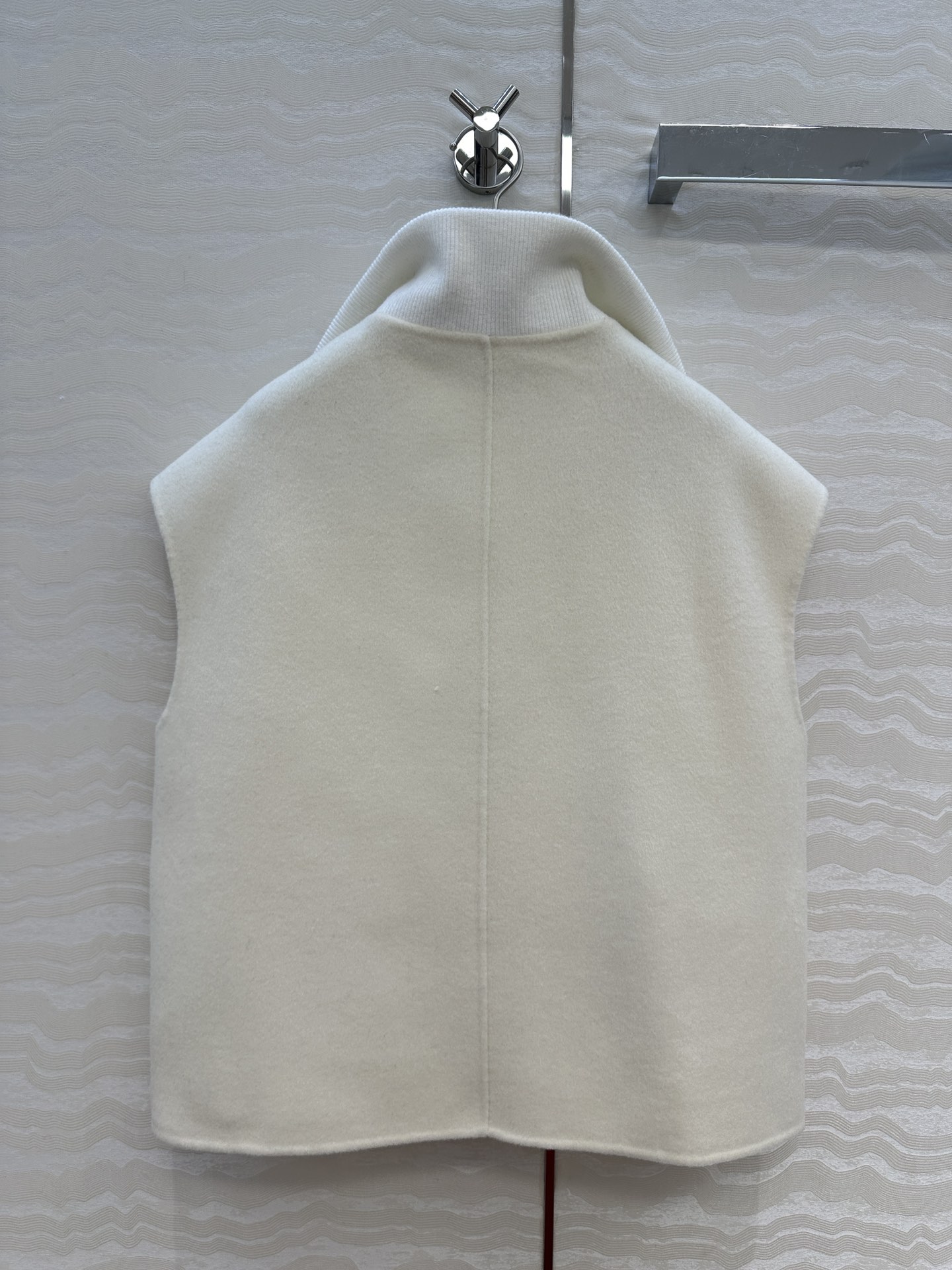 Tags: Layering Vest, Ribbed Collar Vest, Sleeveless Wool Jacket, White Wool Vest, Wool Cashmere Vest