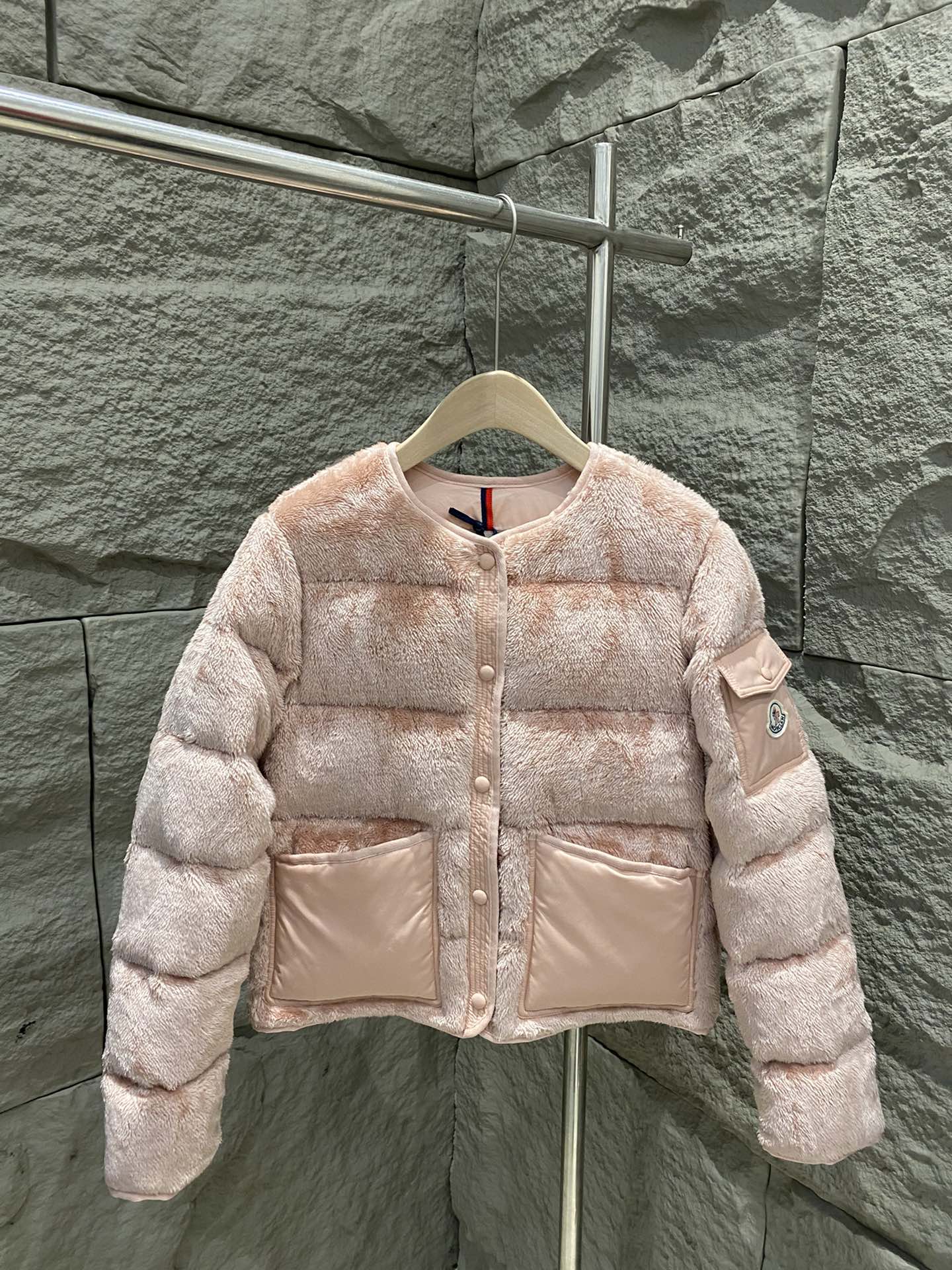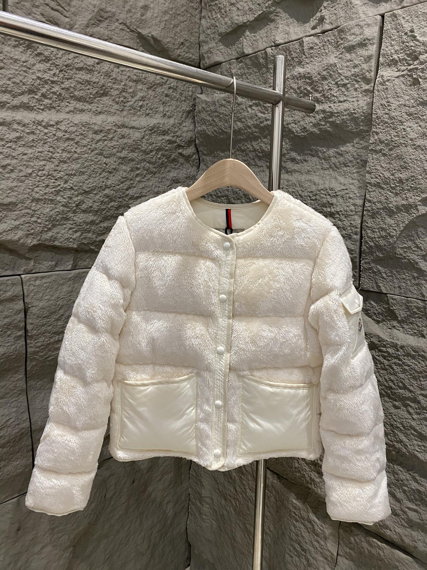 Stay cozy and stylish in this Floyrac Teddy down jacket for women. Available in white, pink, and grey, in sizes 0 to 3.