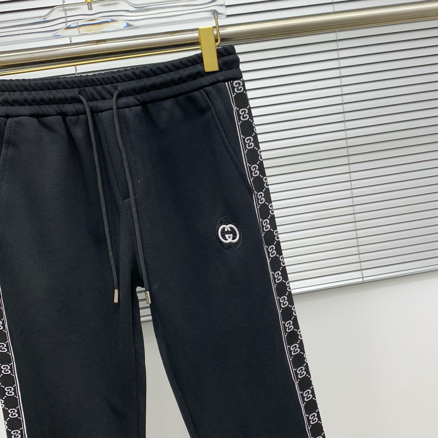 Gucci 2025 Fall/Winter Black Casual Pants with Embroidered Logo and Hardware
