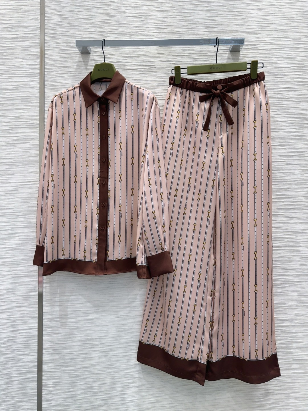 Tags: Designer Women's Clothing, Fashion Set 2025, Gucci Silk Set, Luxury Fashion Set, Retro Style Outfit, Silk Blend Clothing