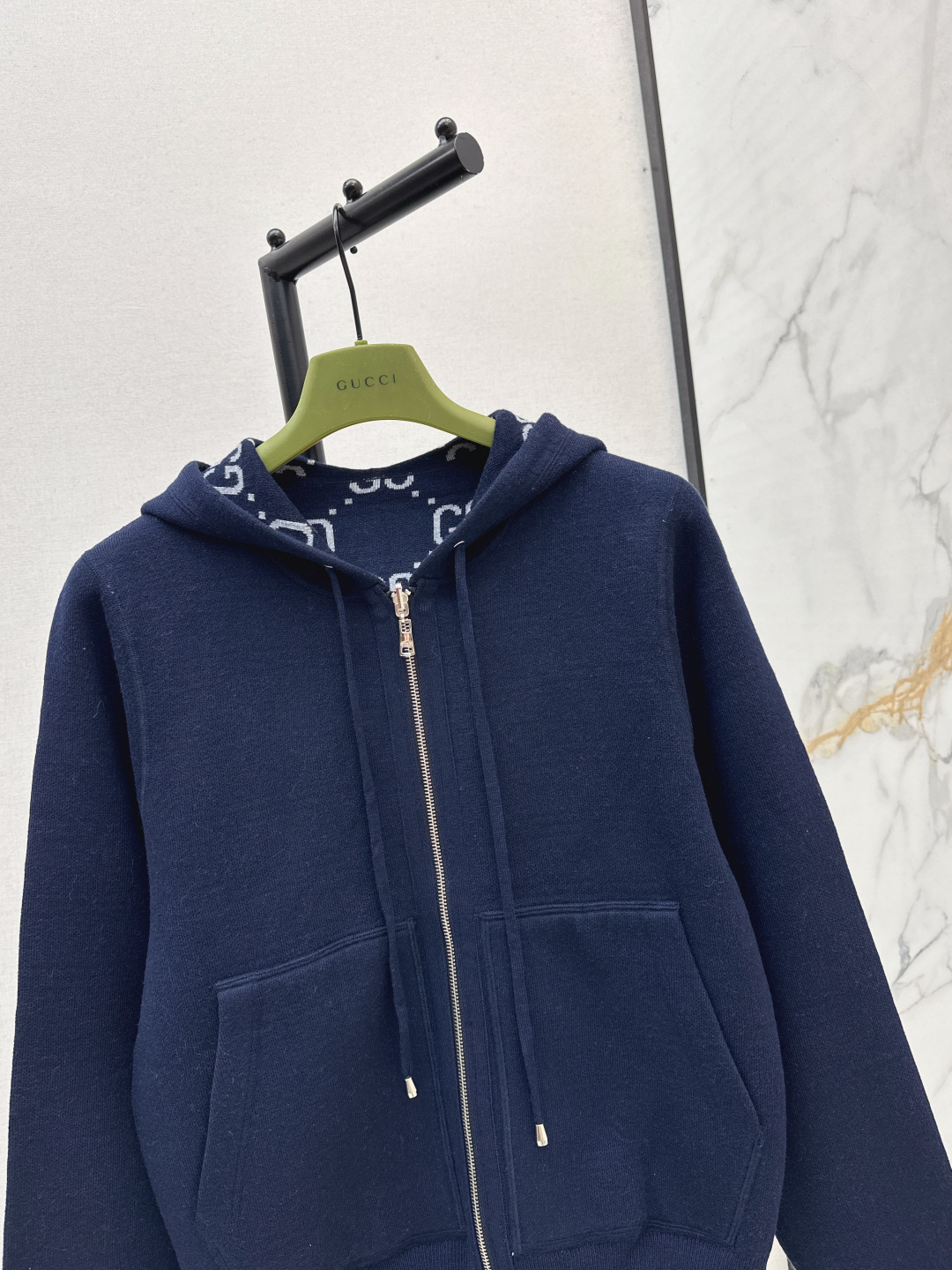 This Gucci 25SS double-faced wool hoodie is the perfect blend of style and comfort, designed for the modern woman who values both fashion and functionality.