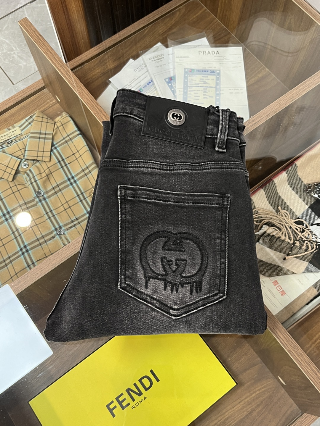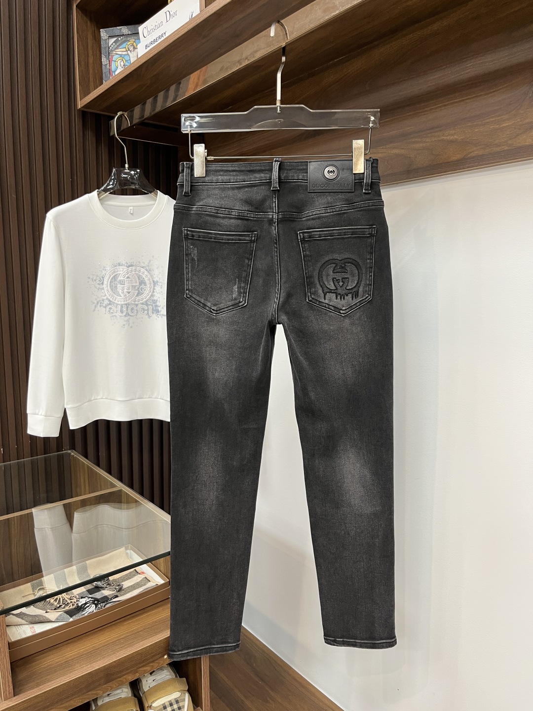 These Gucci slim-fit jeans combine style and comfort, making them an essential addition to any modern man's wardrobe.