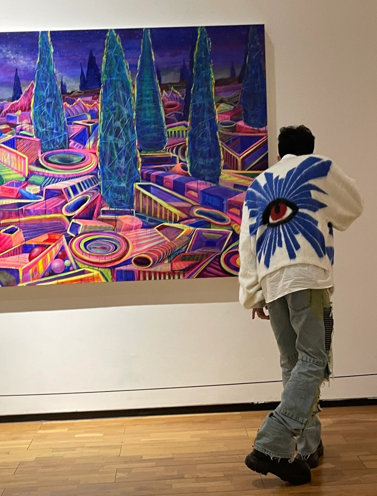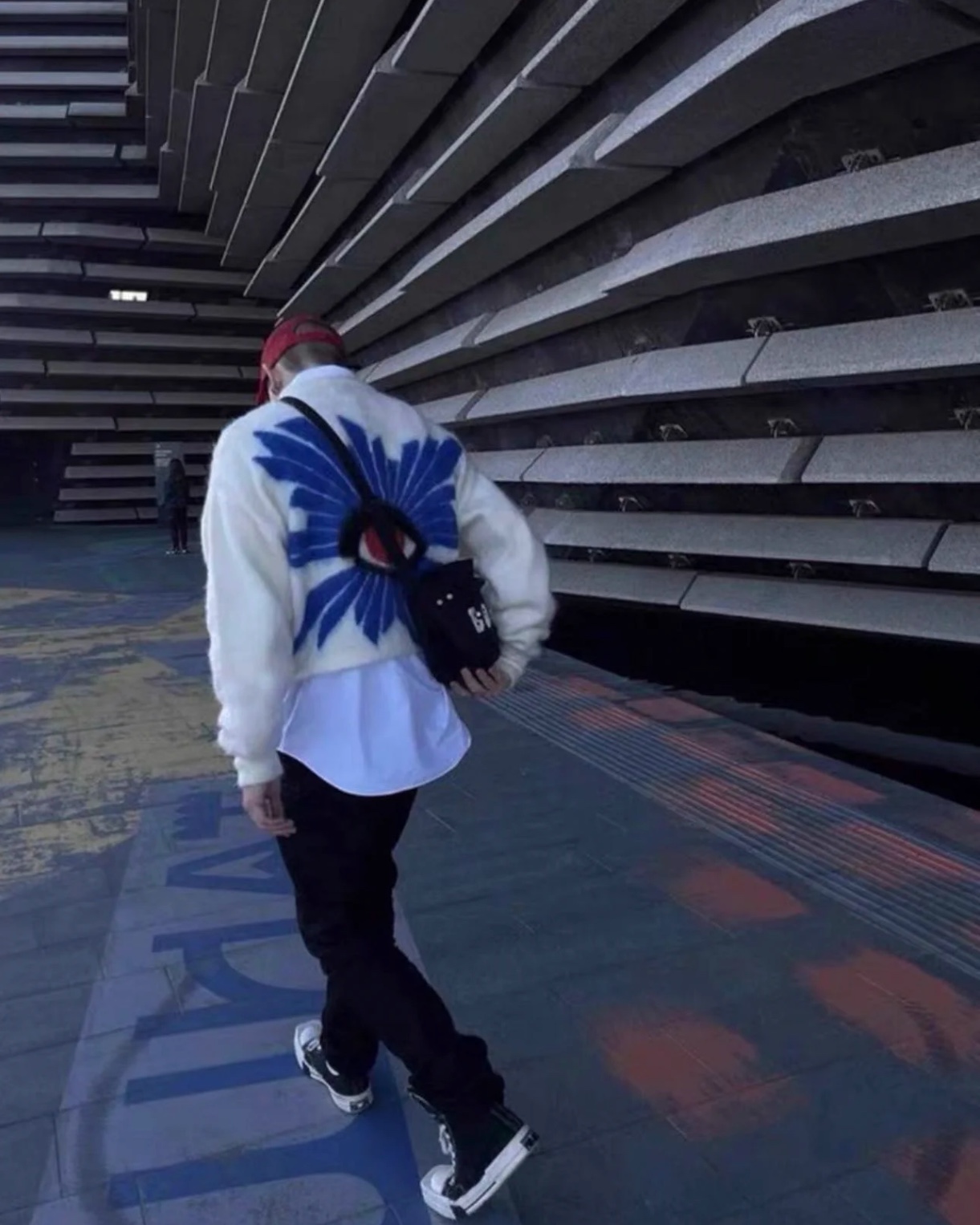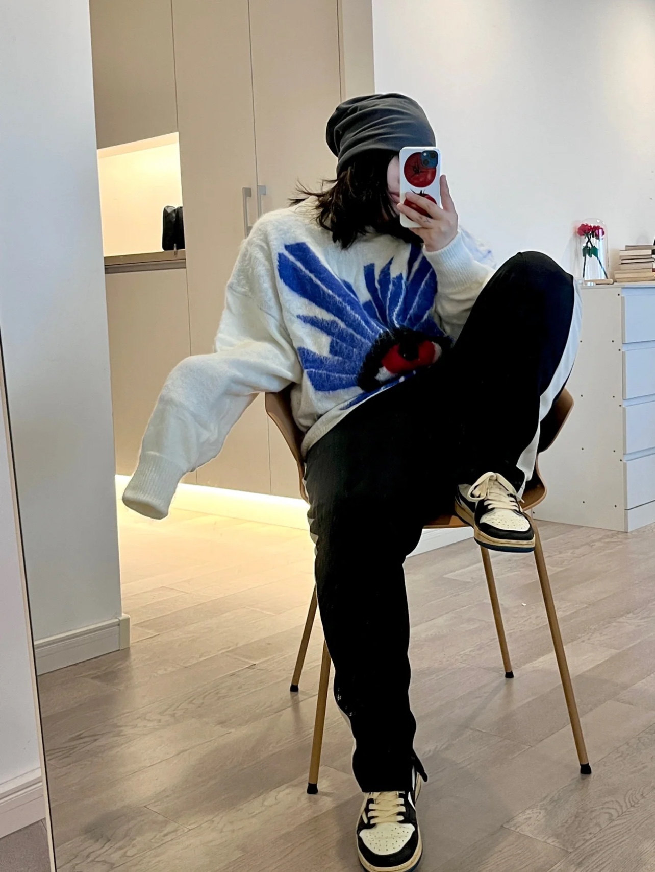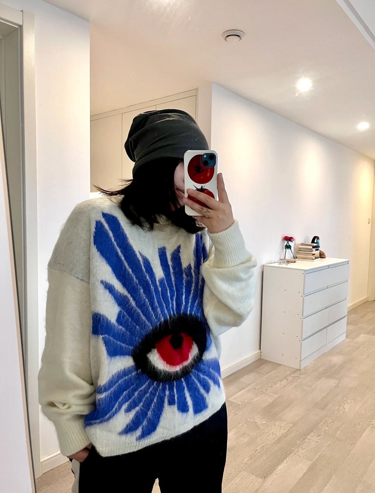 This mohair-blend sweater is a statement piece that combines comfort with high fashion. The eye graphic design adds a unique touch, perfect for those who want to stand out.