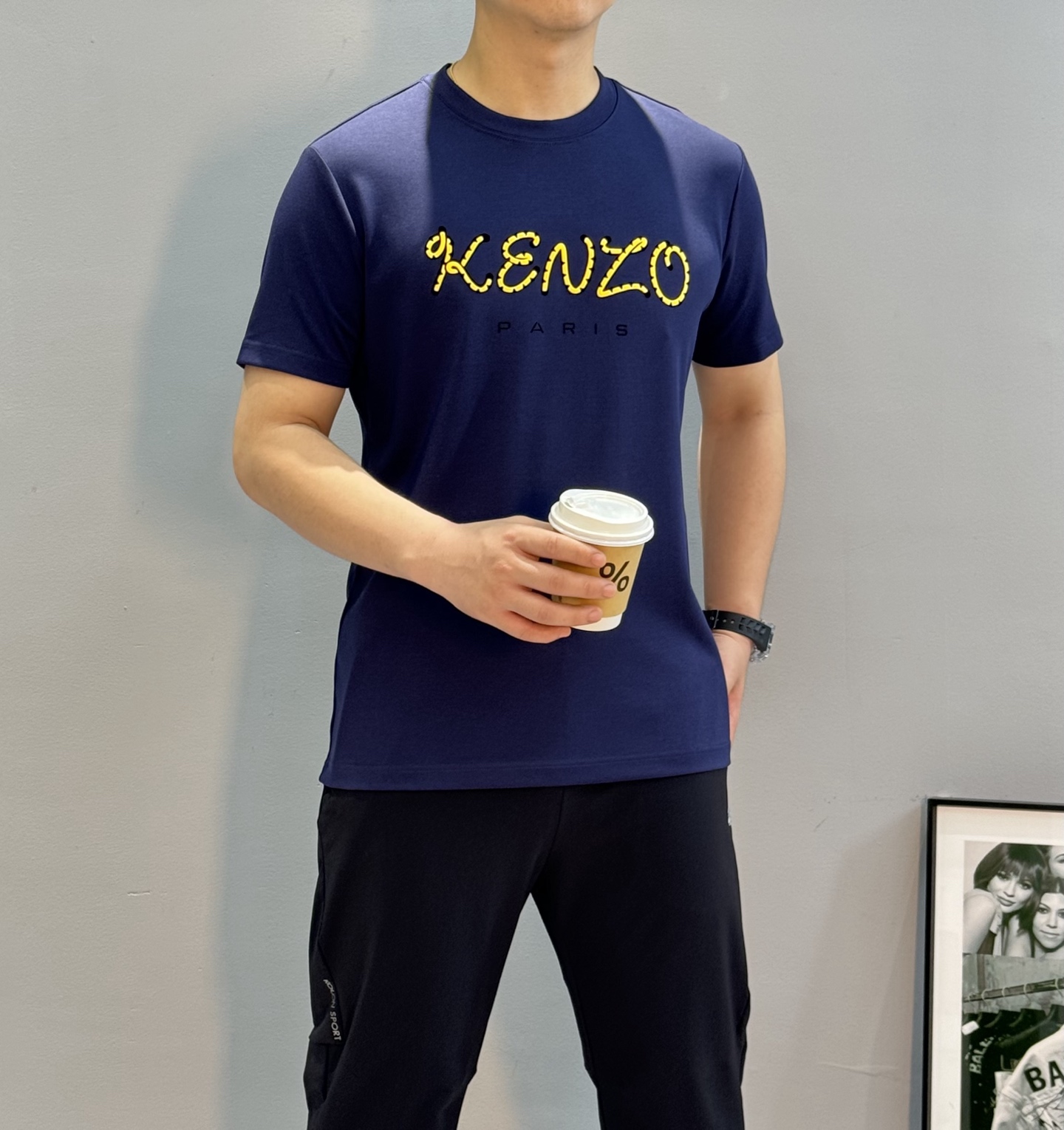 Tags: Casual Men's Top, Designer T-Shirt, Embroidered Logo Tee, Kenzo T Shirt, Men's Modal Blend T Shirt