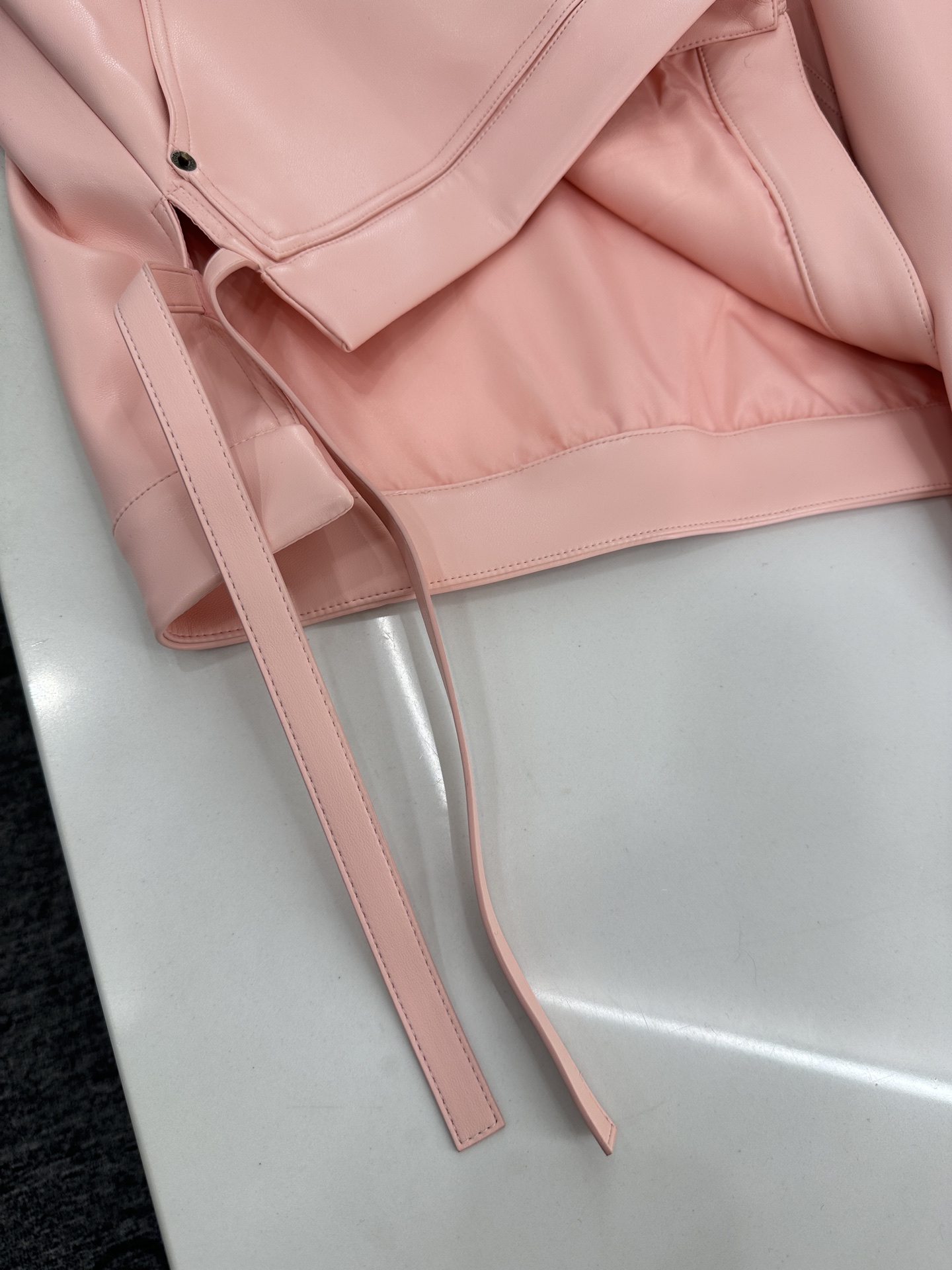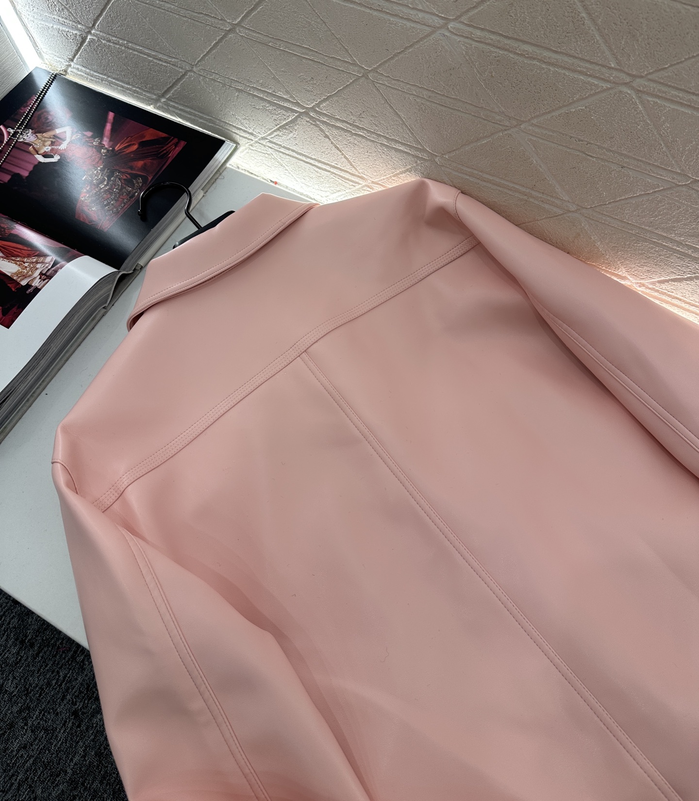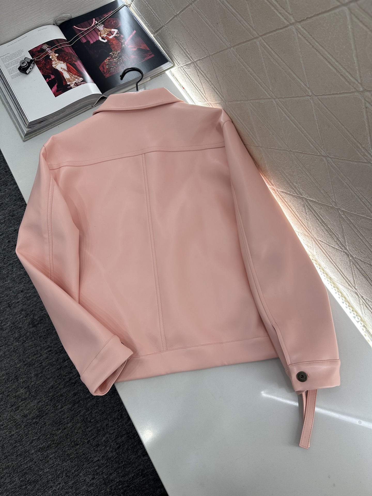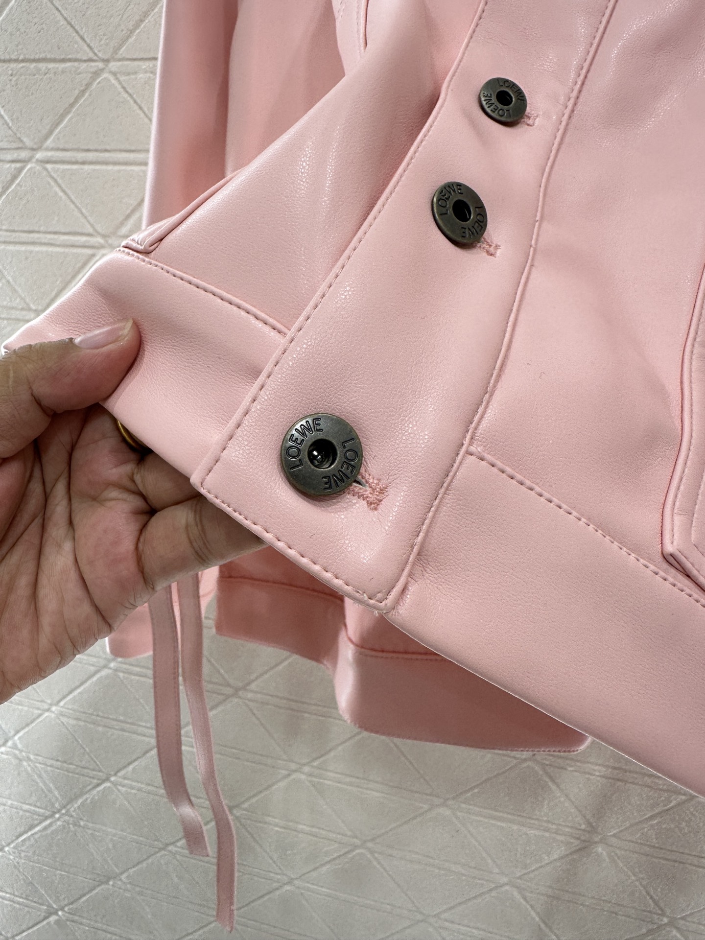 This Loewe 2025 pink leather jacket is a must-have for fashion-forward wardrobes. It features a delicate texture and unique design elements, offering a blend of style and comfort.