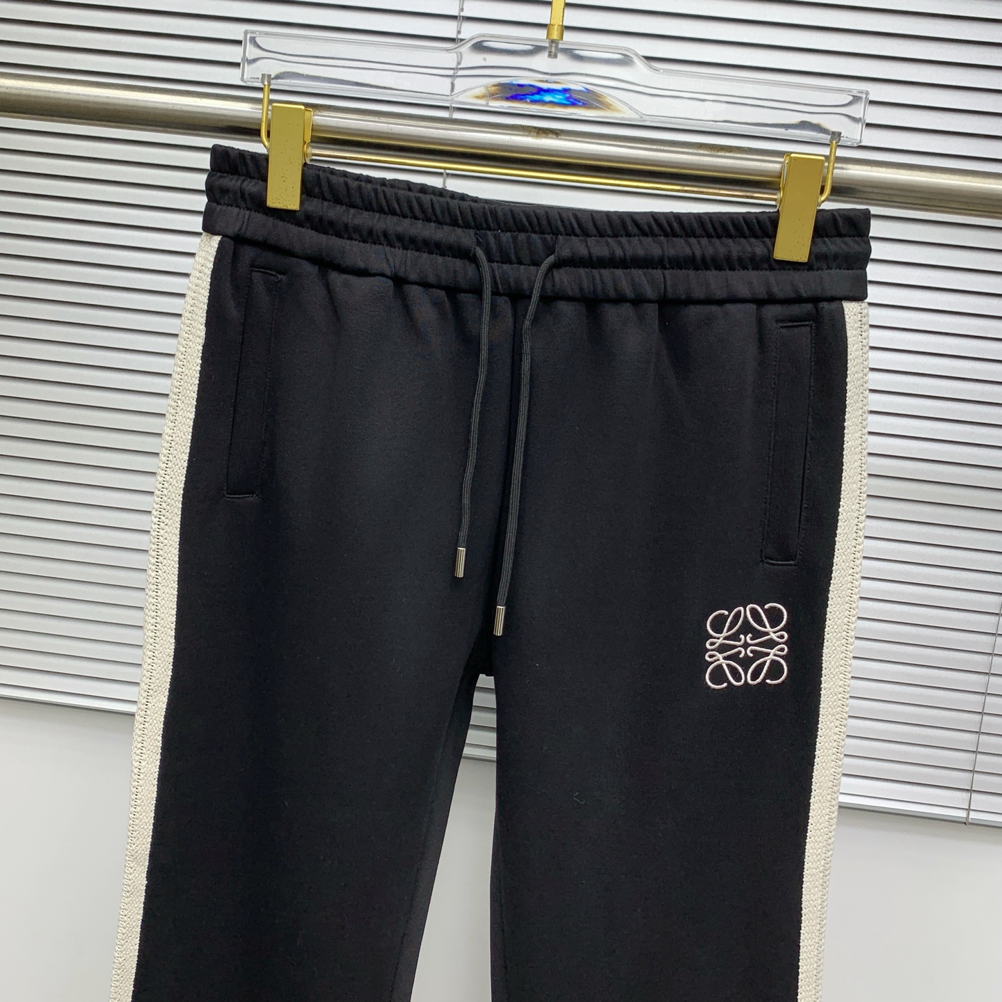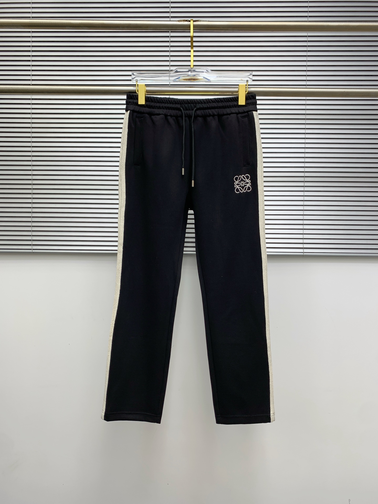 Loewe Men's Black Tracksuit with White Stripe, Logo Embroidery, Casual Style