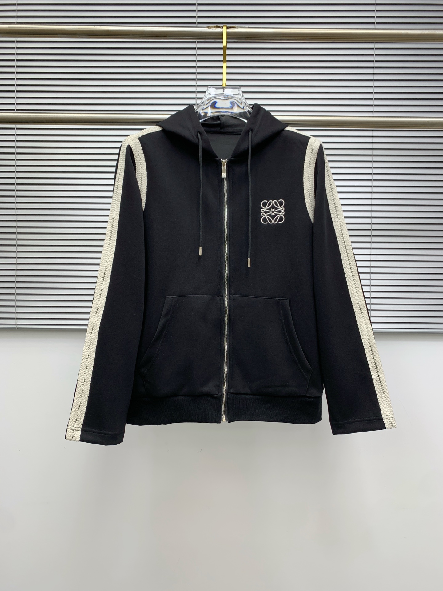 Tags: Black Zip Up Hoodie, Casual Loungewear Set, Embroidered Logo Tracksuit, Loewe Tracksuit Men, Men's Fashion Tracksuit