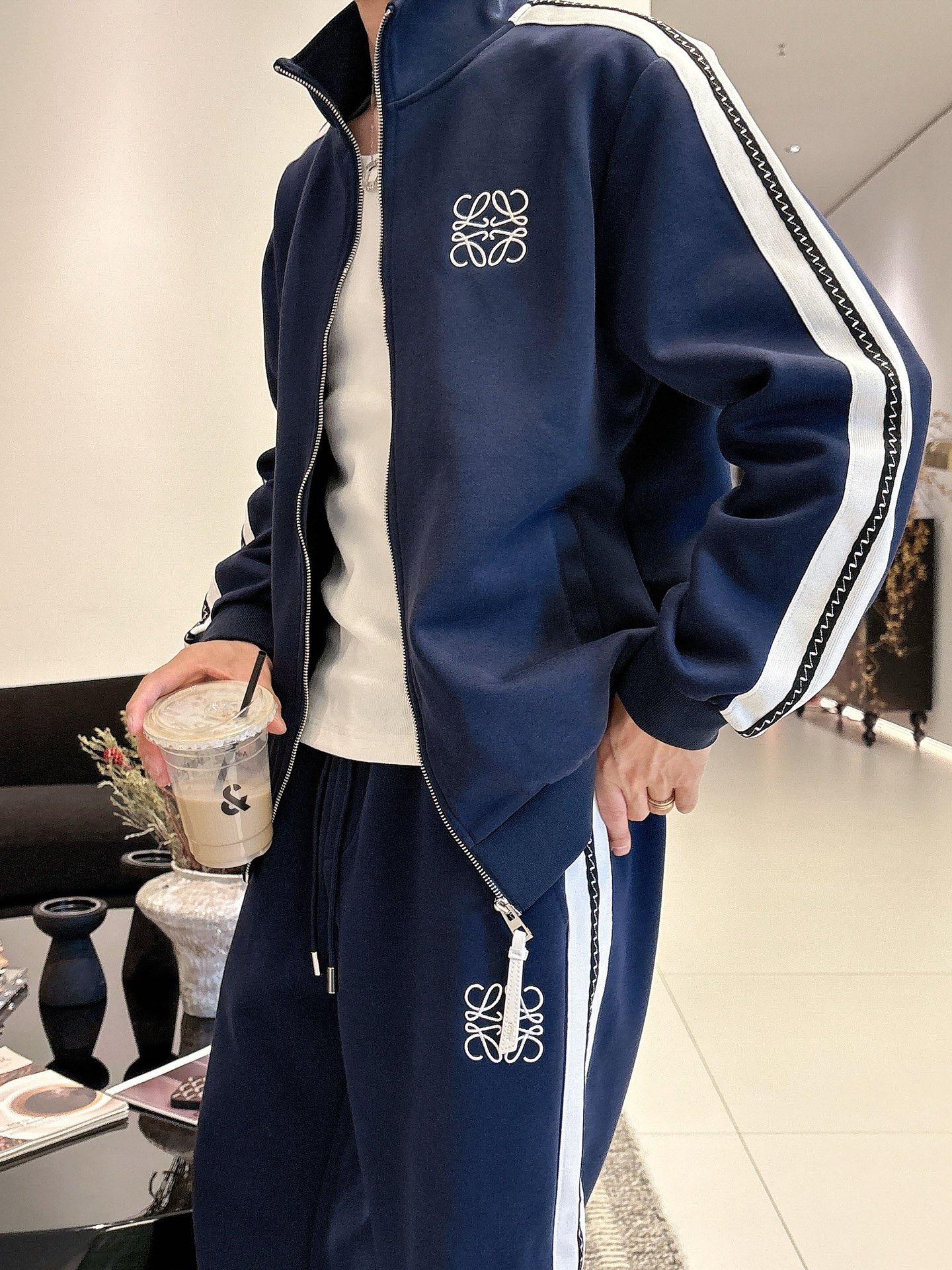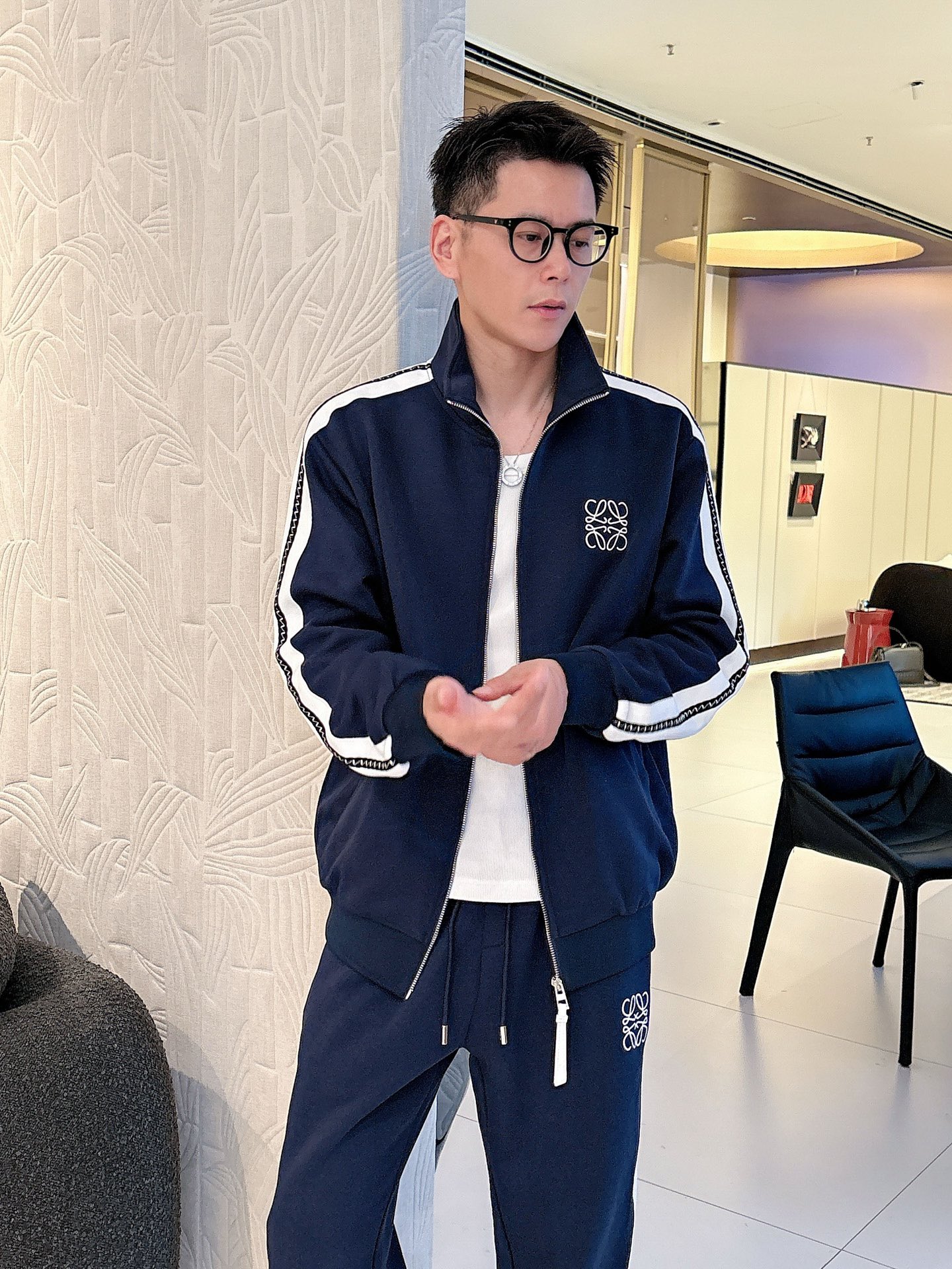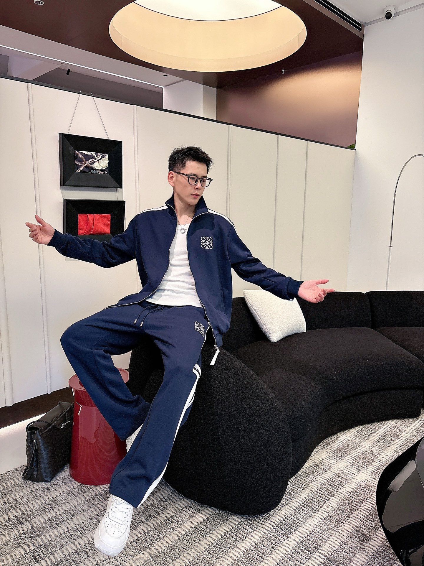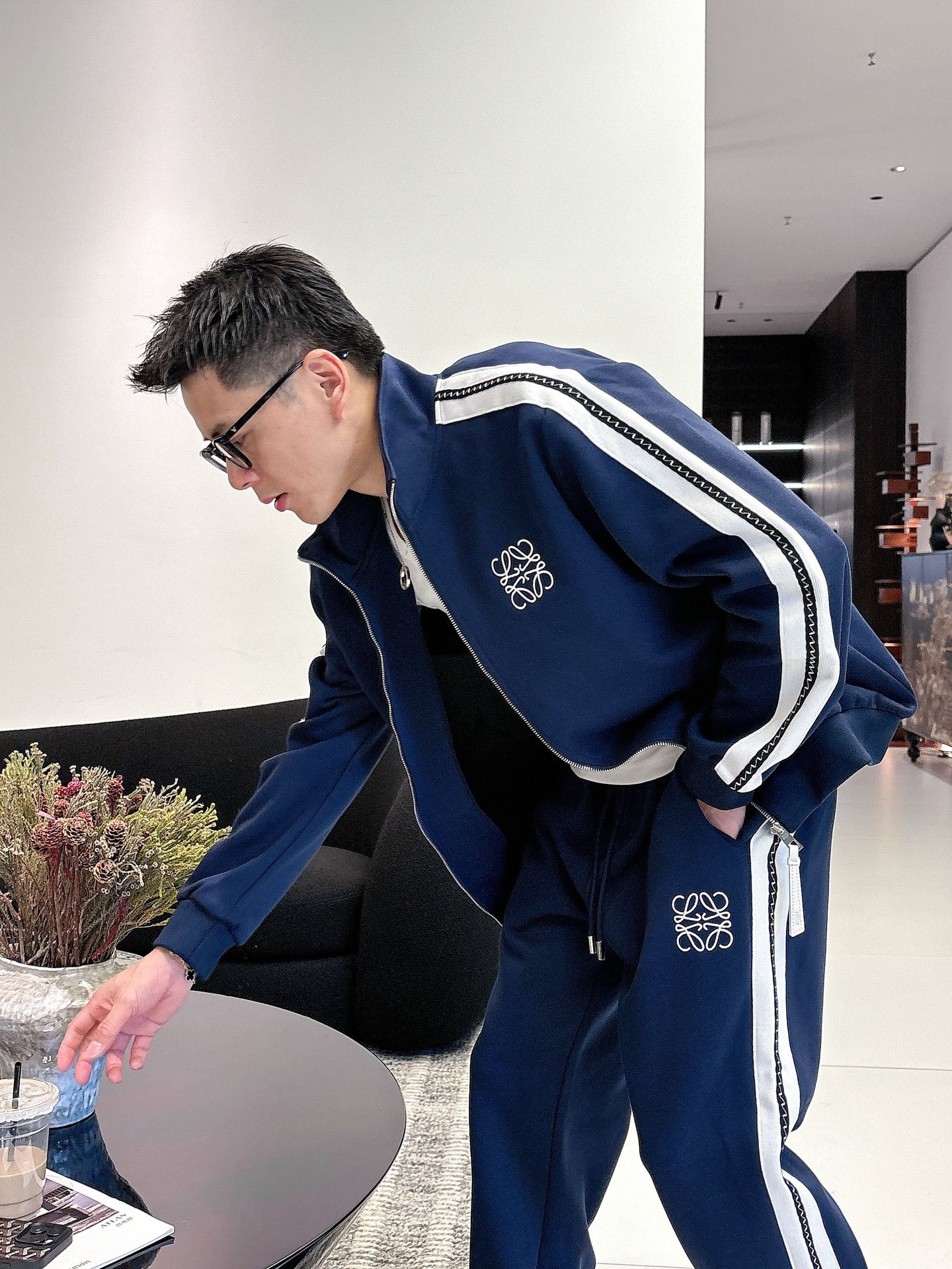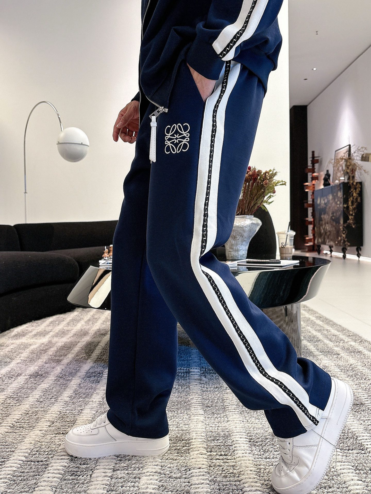 Tags: Casual Men's Set, Designer Tracksuit, Loewe Tracksuit, Logo Embroidered Tracksuit, Men's Sportswear Set, Navy Blue Tracksuit