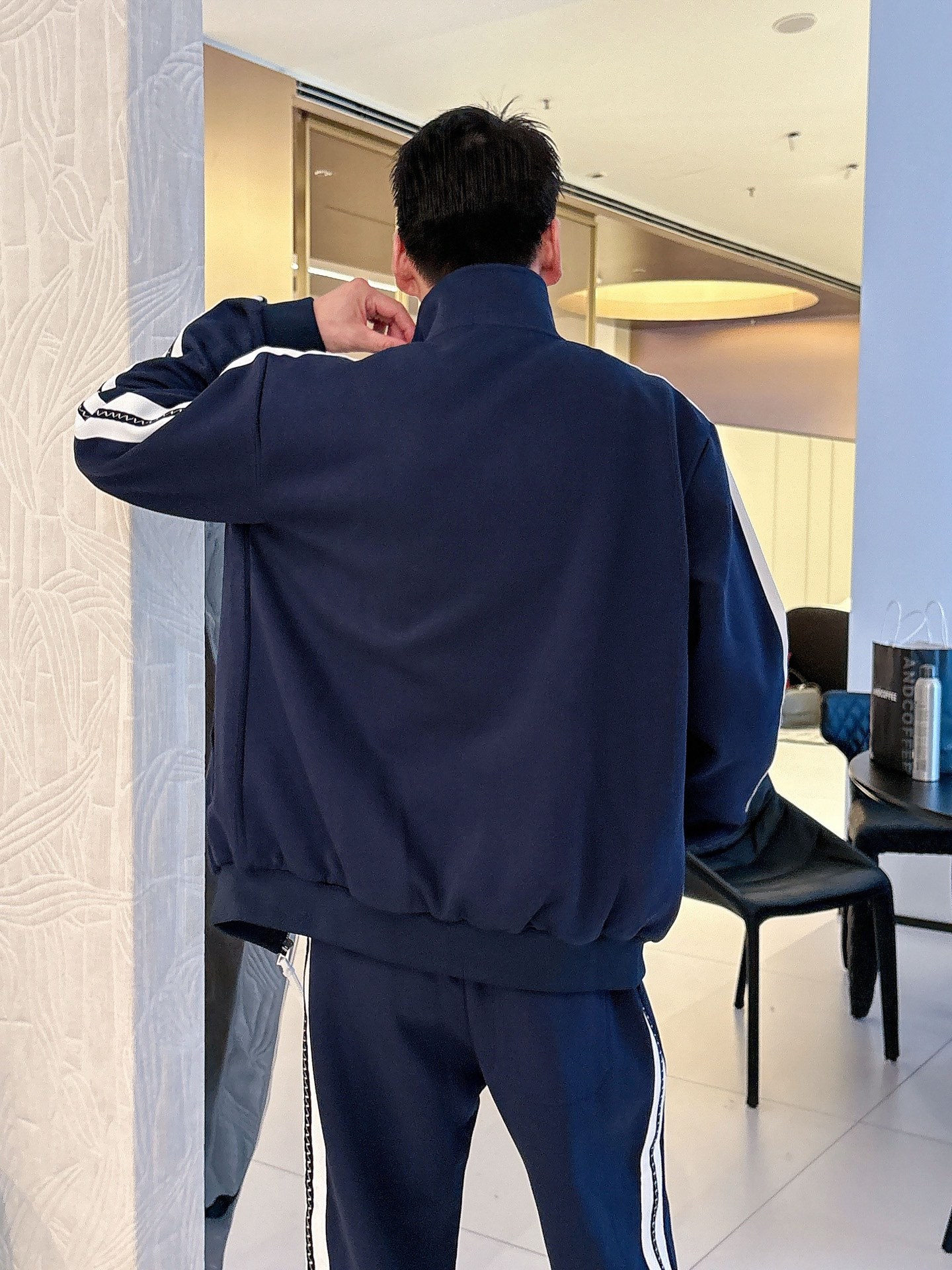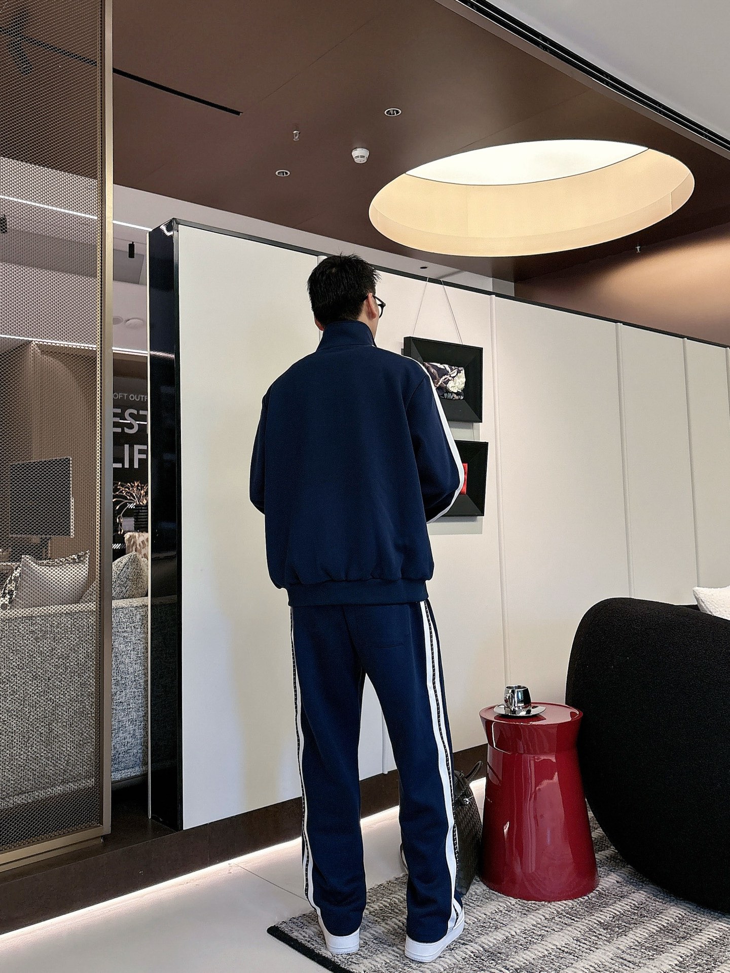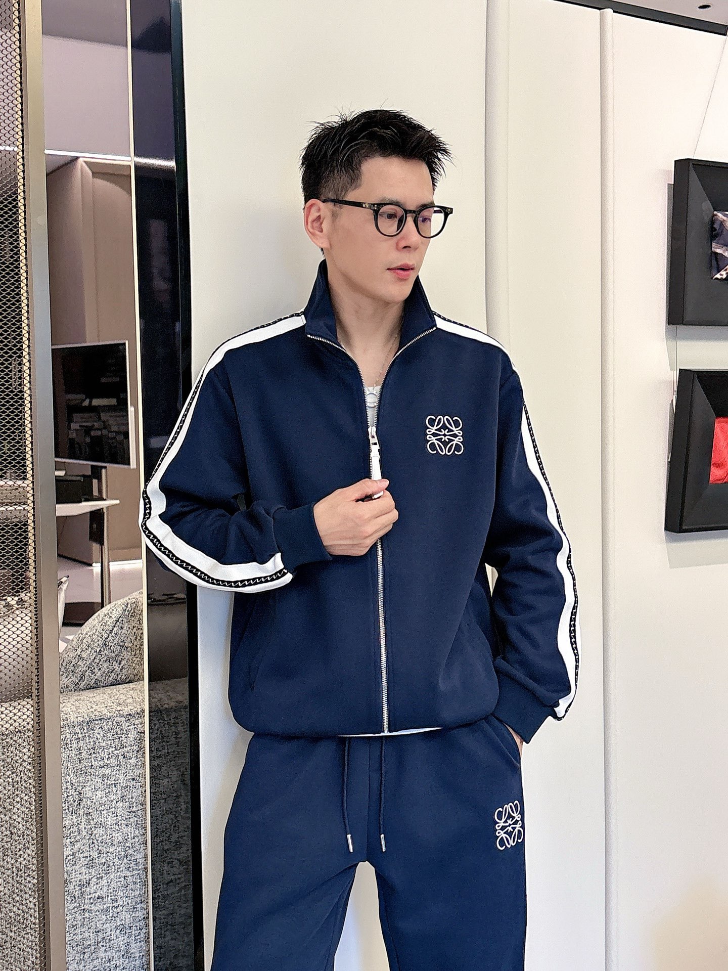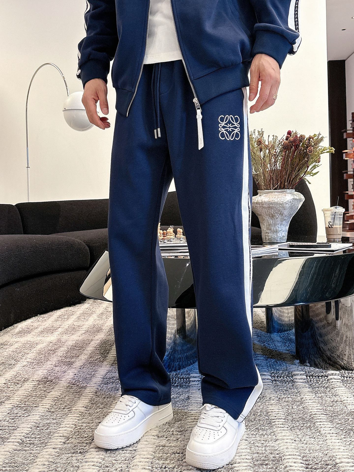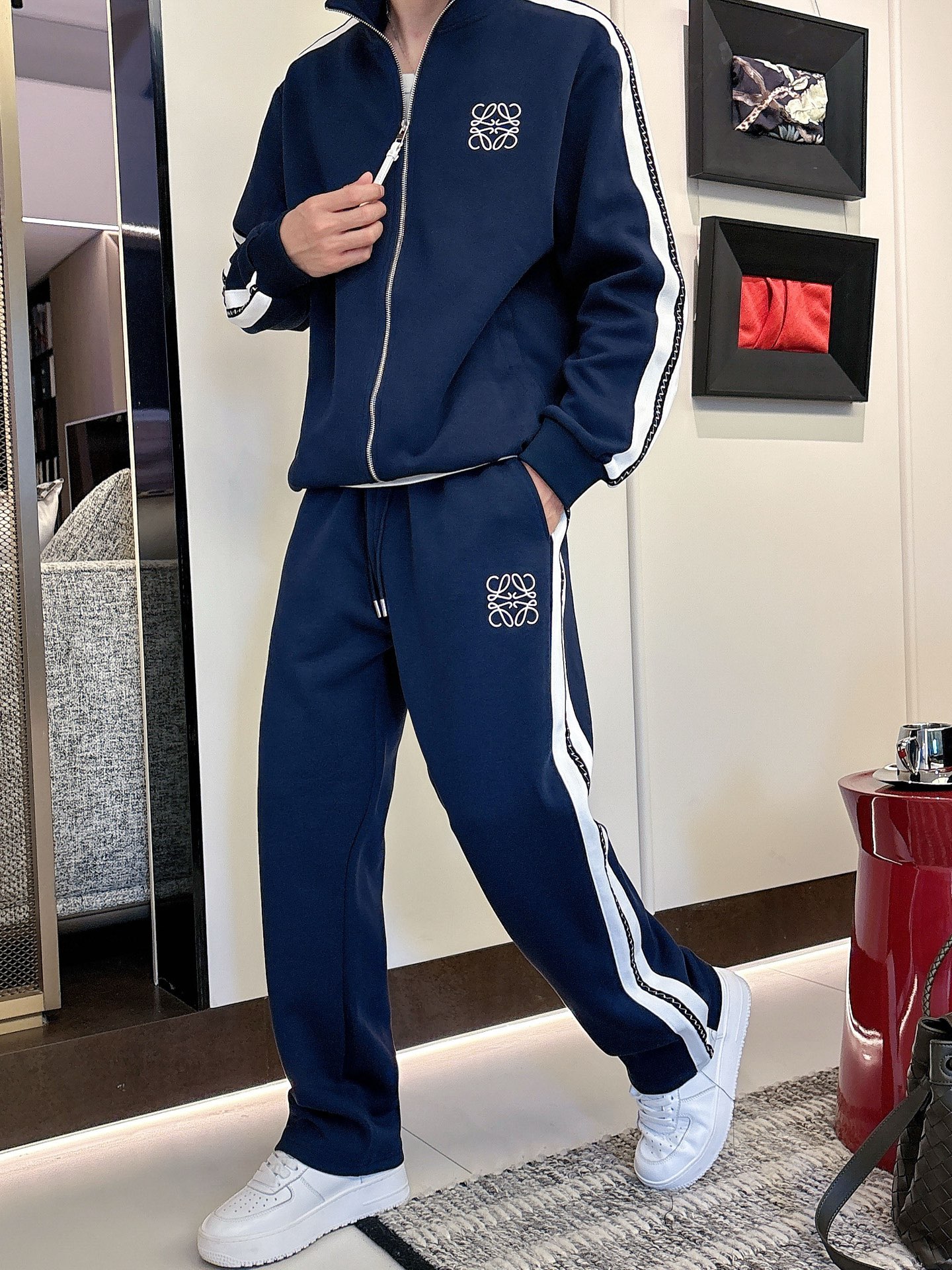 Tags: Casual Men's Set, Designer Tracksuit, Loewe Tracksuit, Logo Embroidered Tracksuit, Men's Sportswear Set, Navy Blue Tracksuit