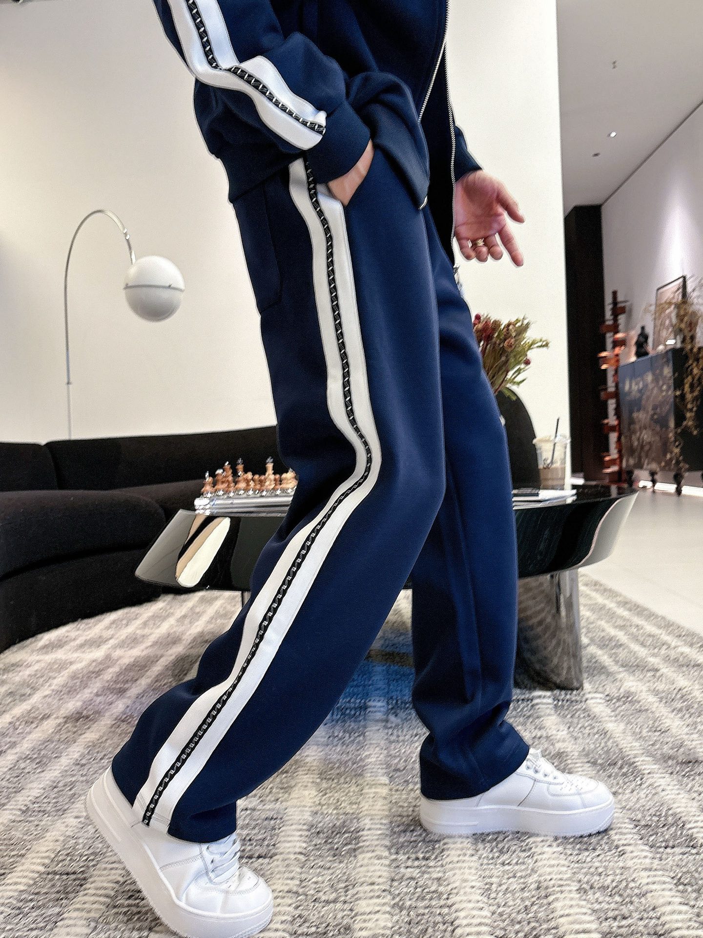 Loewe Men's Navy Blue Tracksuit with White Stripe, Logo Embroidery