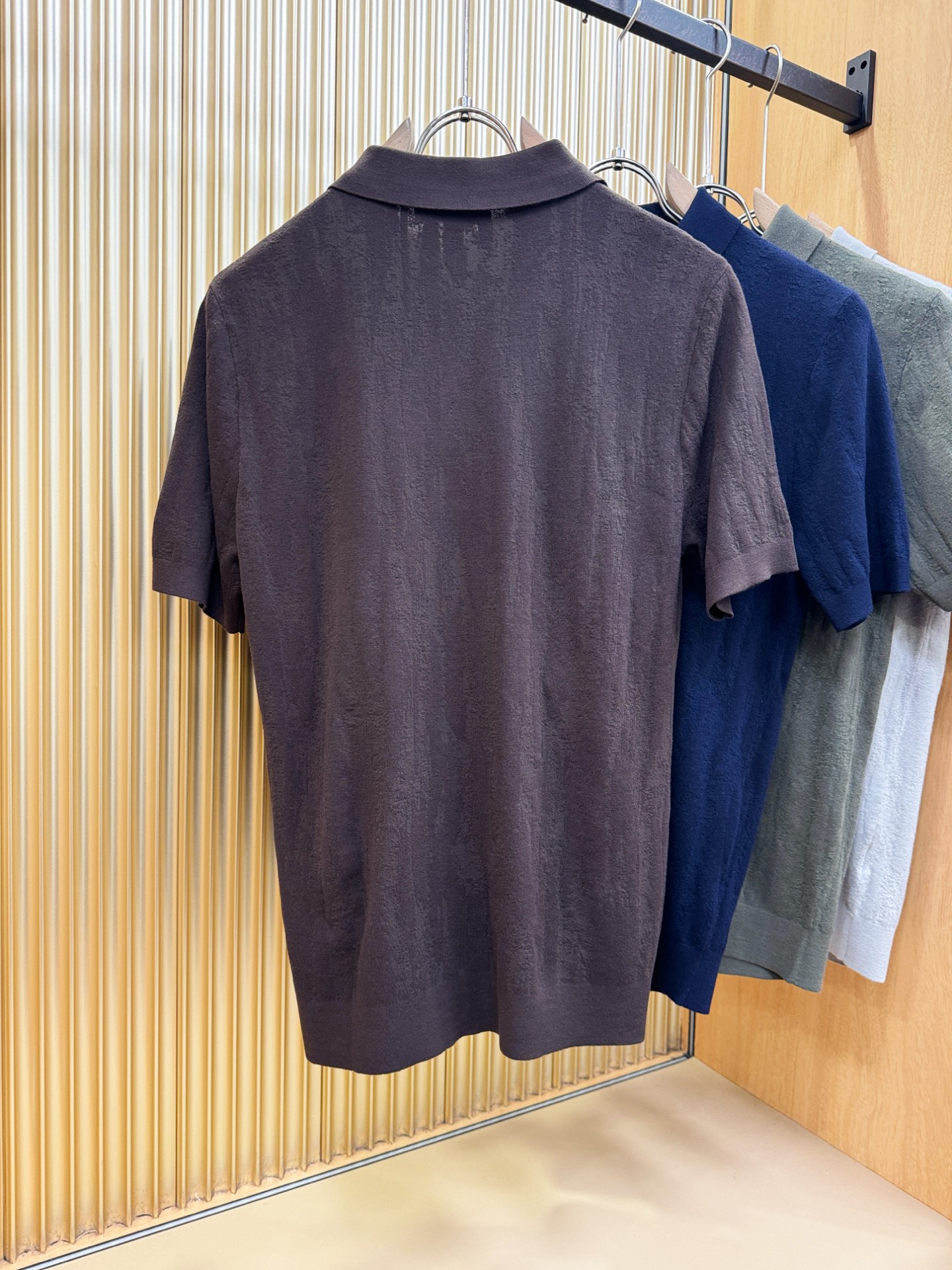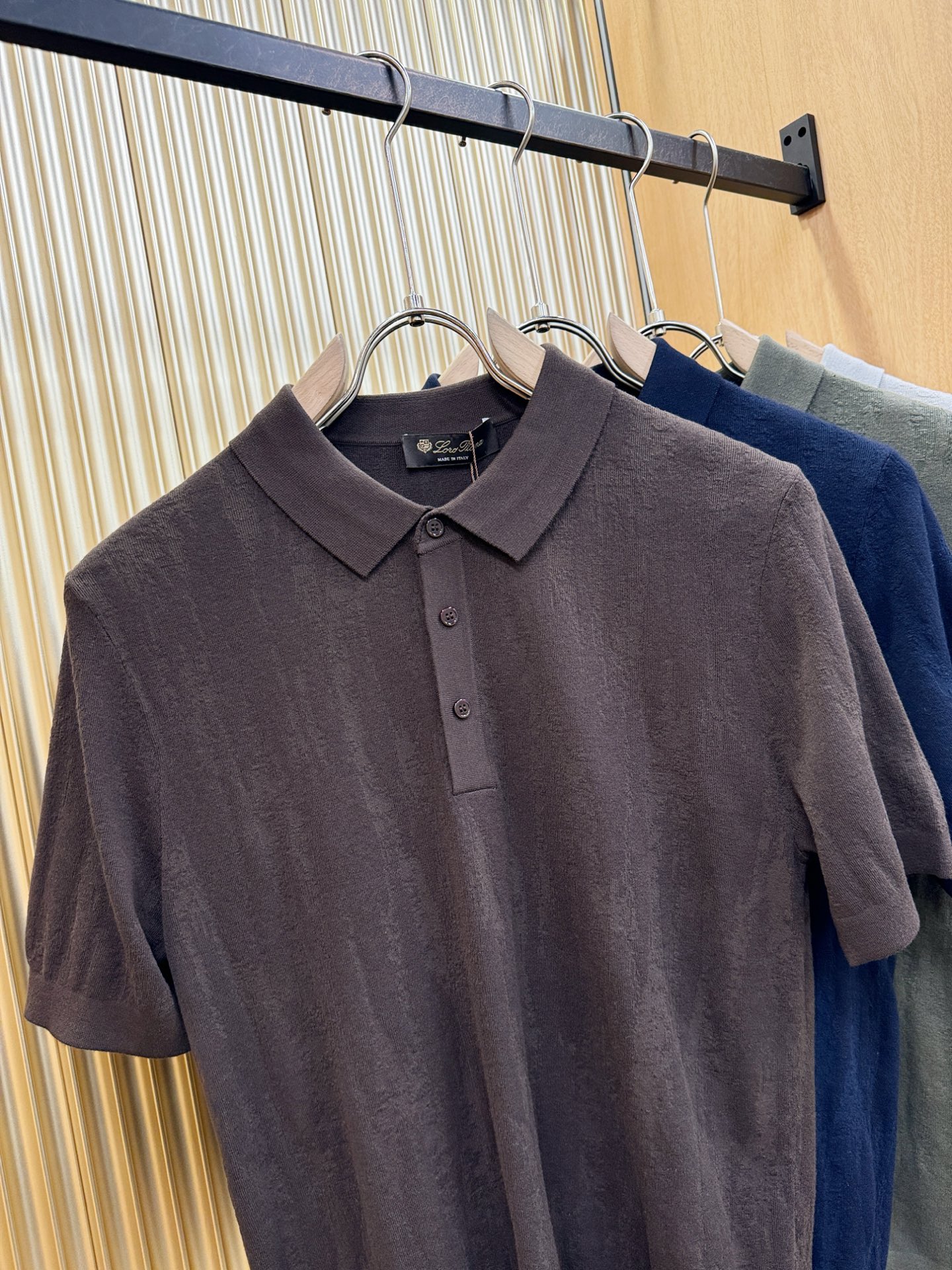 - Classic polo collar with a buttoned placket for a refined look.