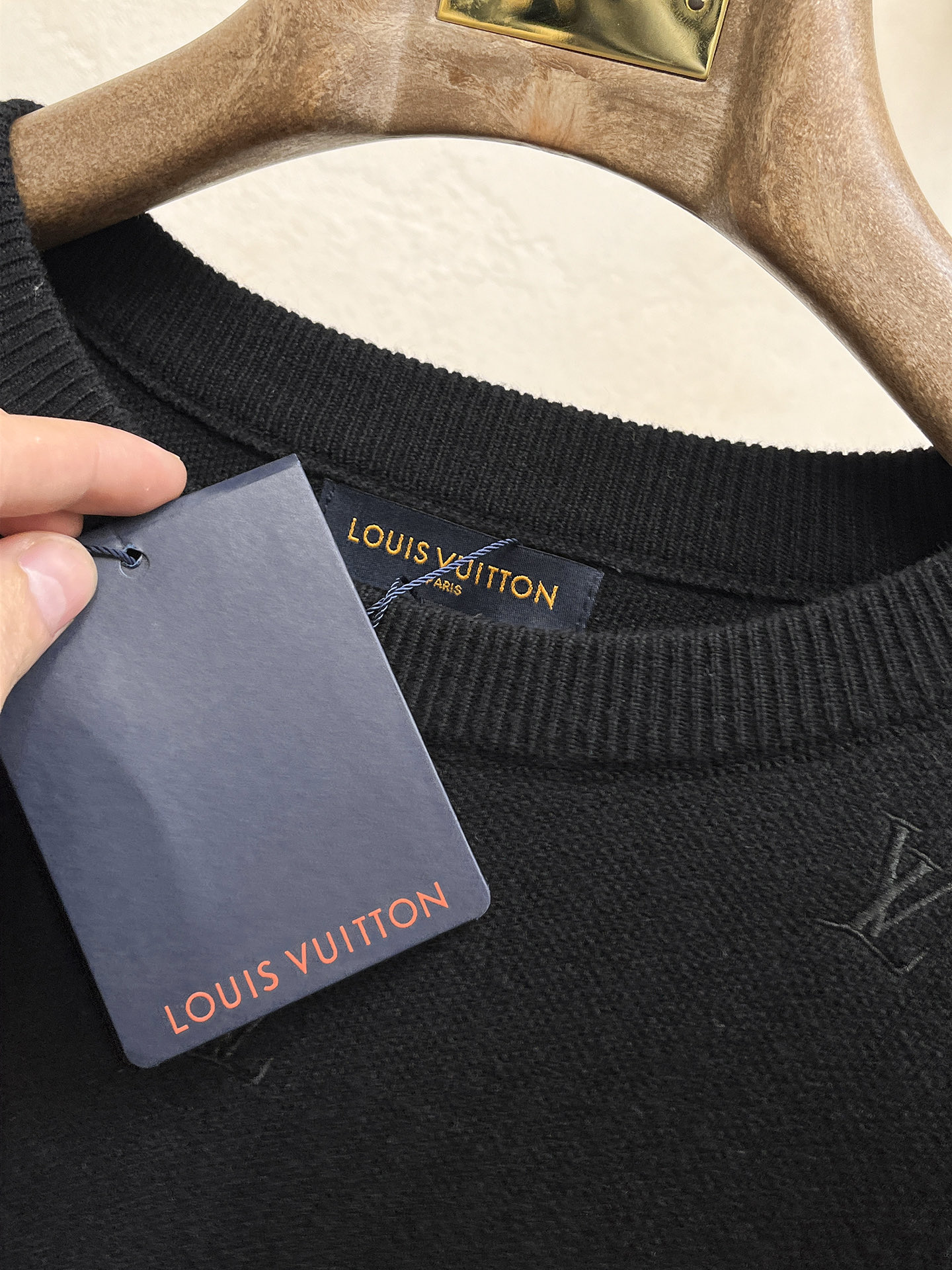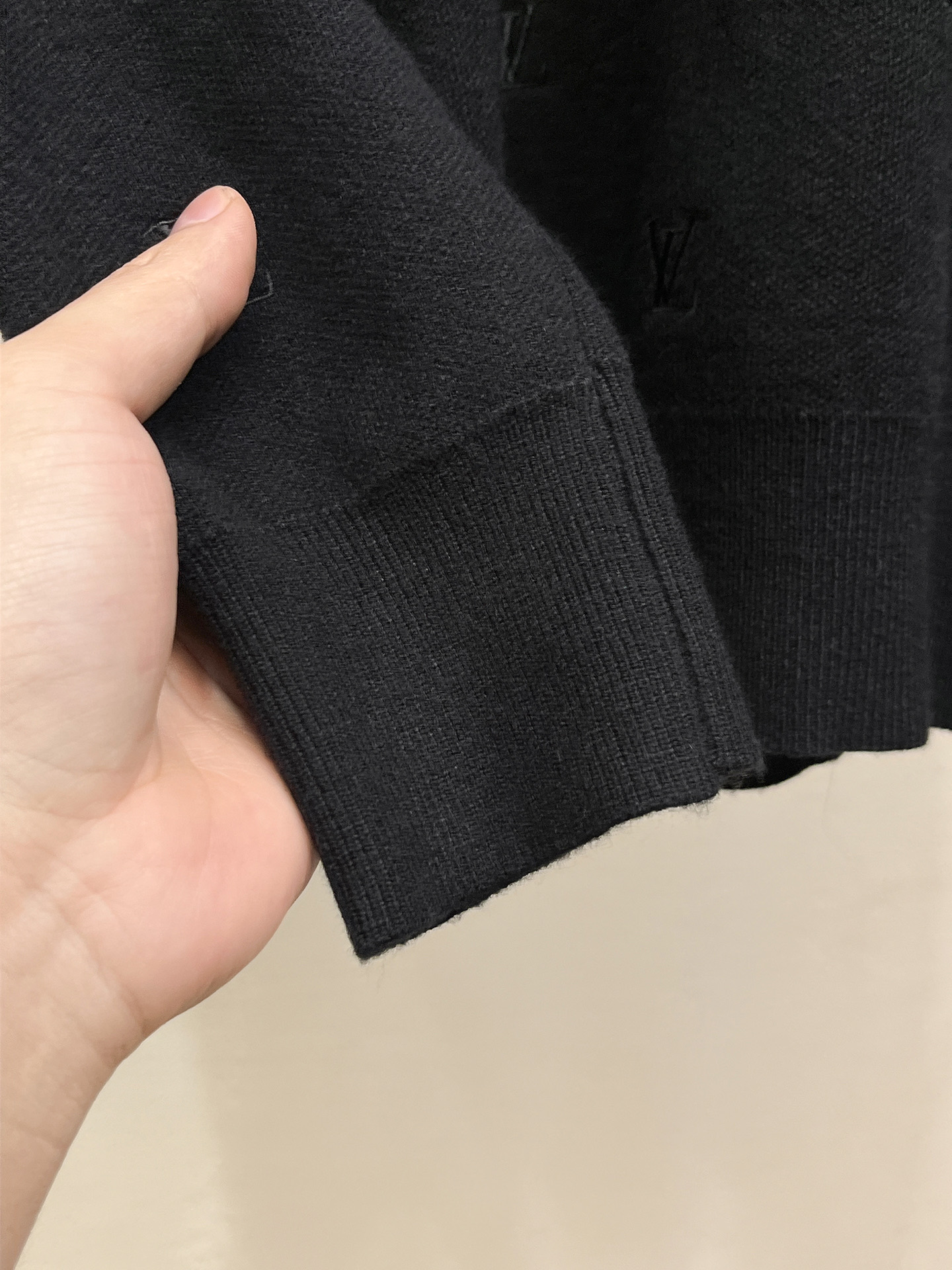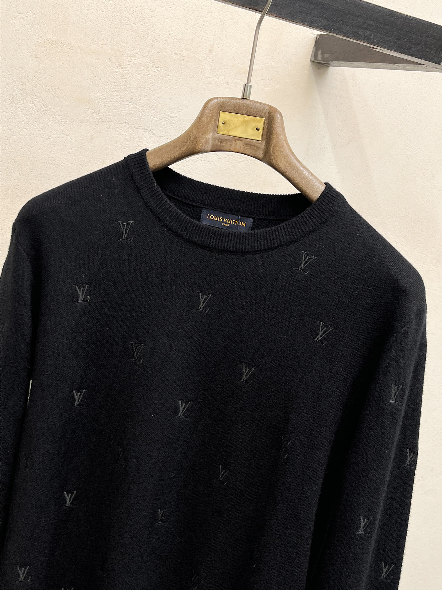 Tags: Black Wool Sweater, Designer Knitwear, Embroidered Sweater, Louis Vuitton Sweater, Luxury Sweater, Merino Wool Sweater