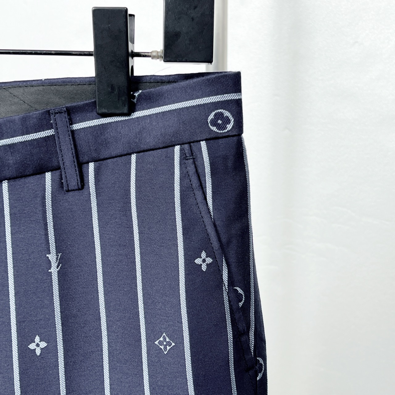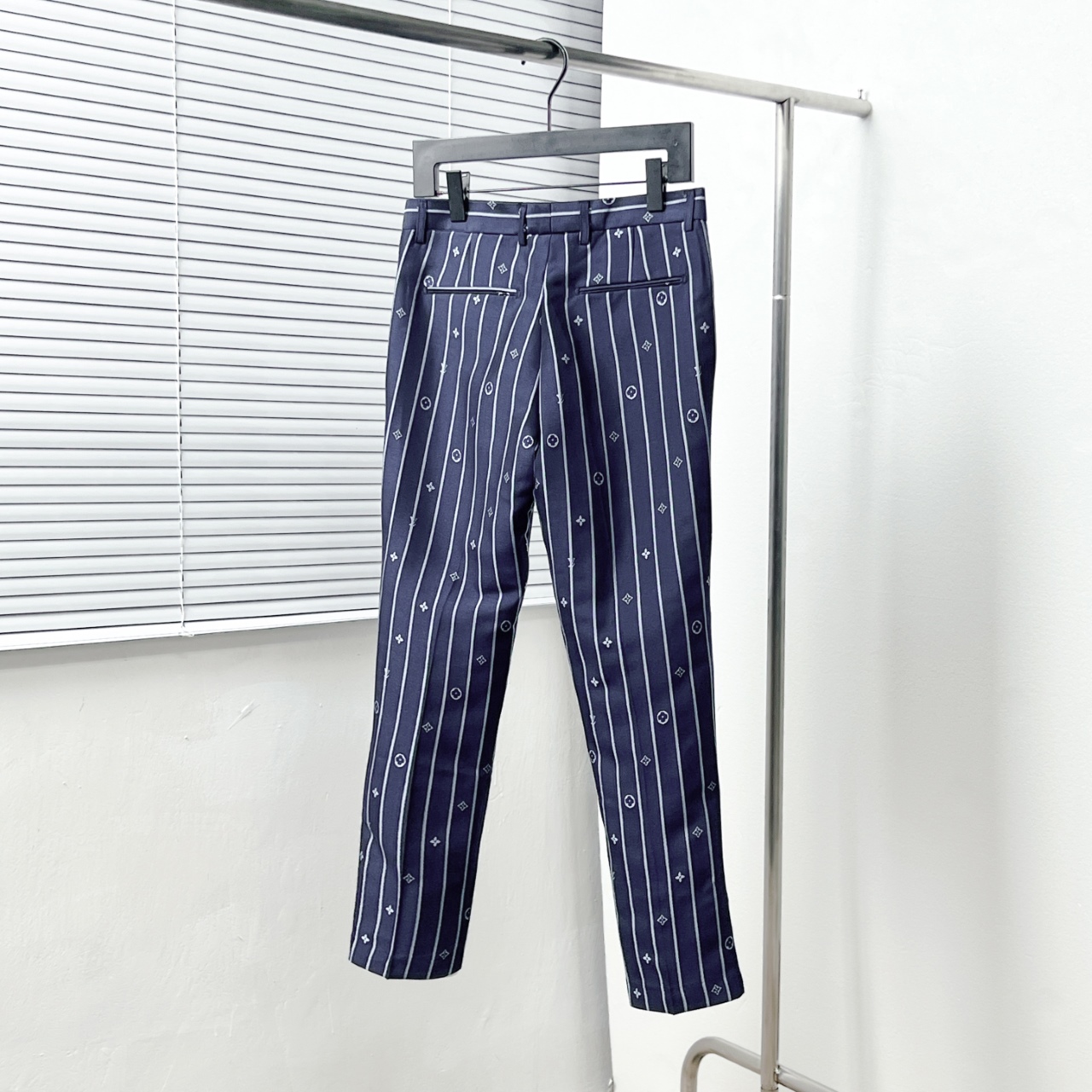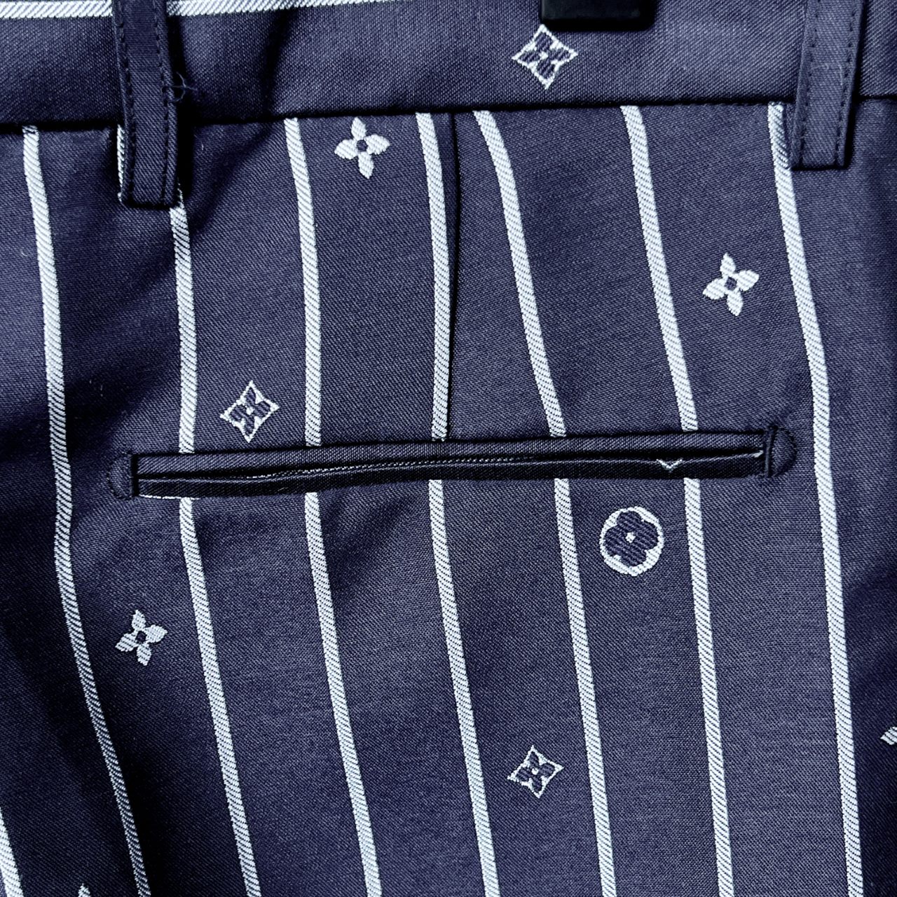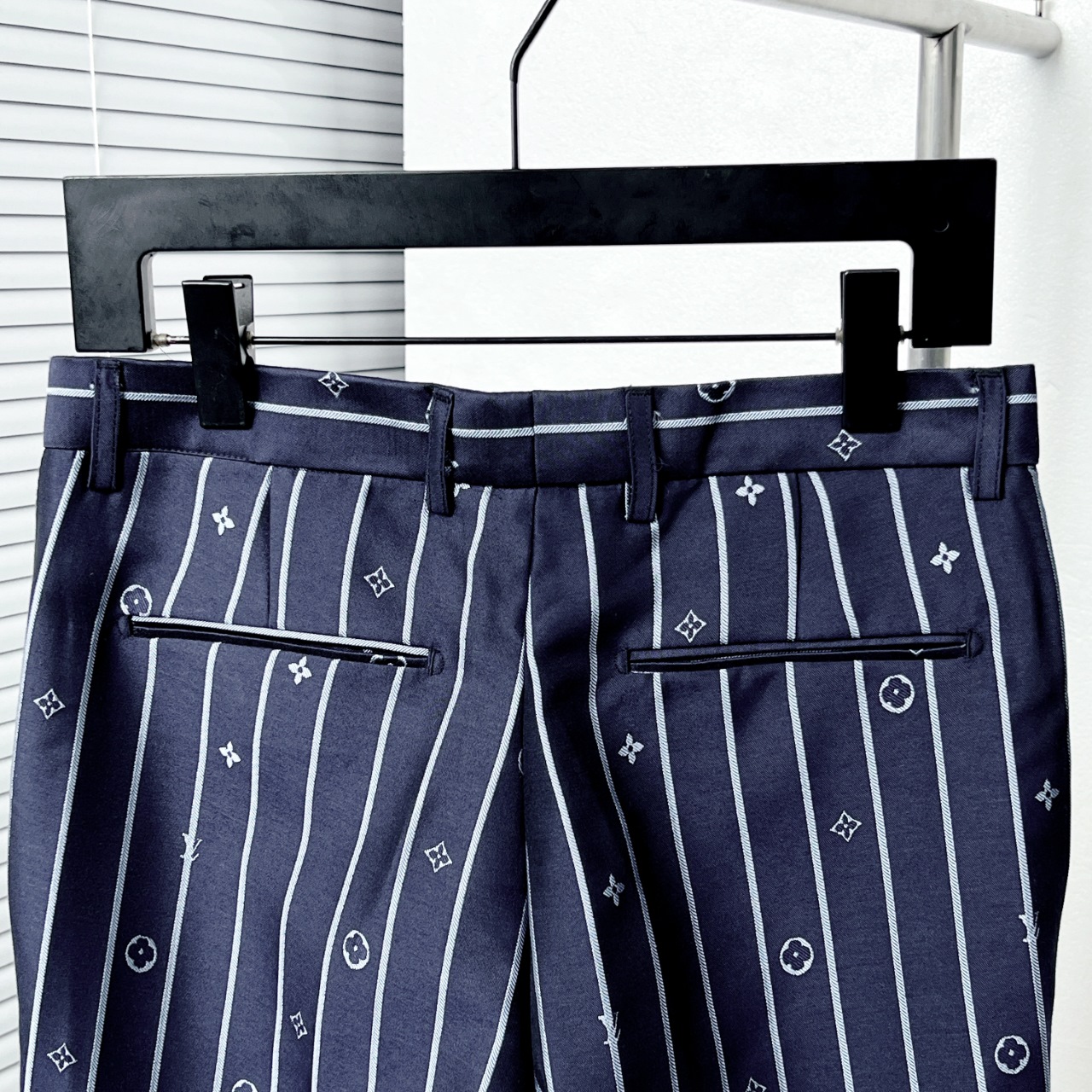 These Louis Vuitton Monogram Pinstripes Jacquard Trousers are a stylish addition to any wardrobe, blending classic design with modern flair.