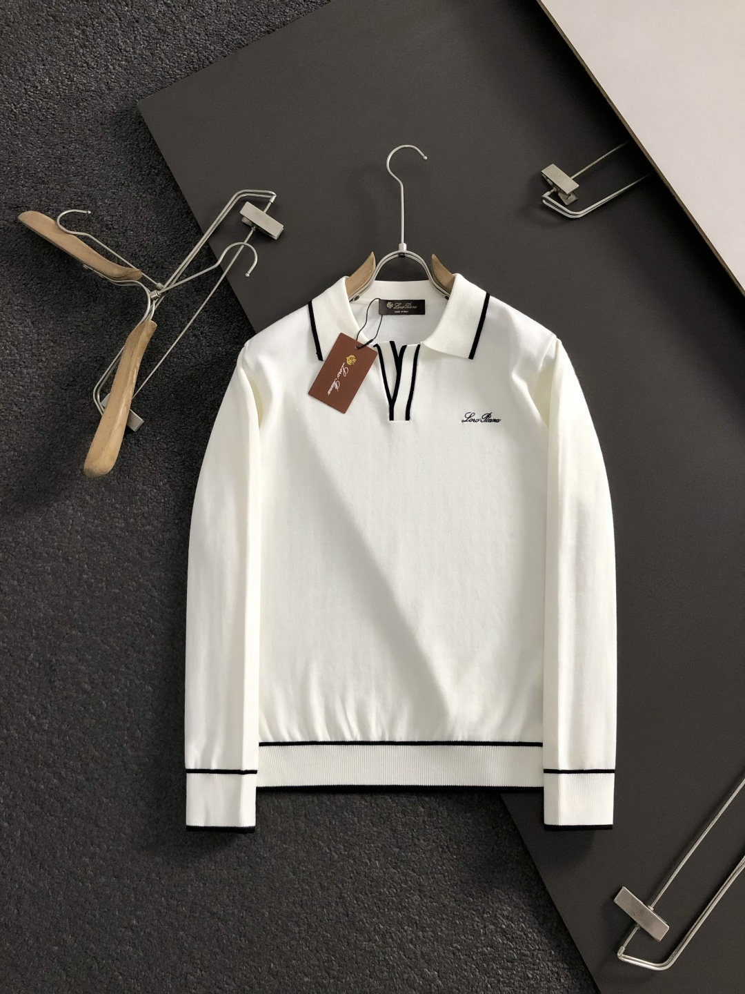 Tags: Contrasting Trim Polo, Designer Wool Polo, Elegant Men's Clothing, Fall Fashion Polo, Long Sleeve Polo Shirt, Mens Wool Polo Shirt