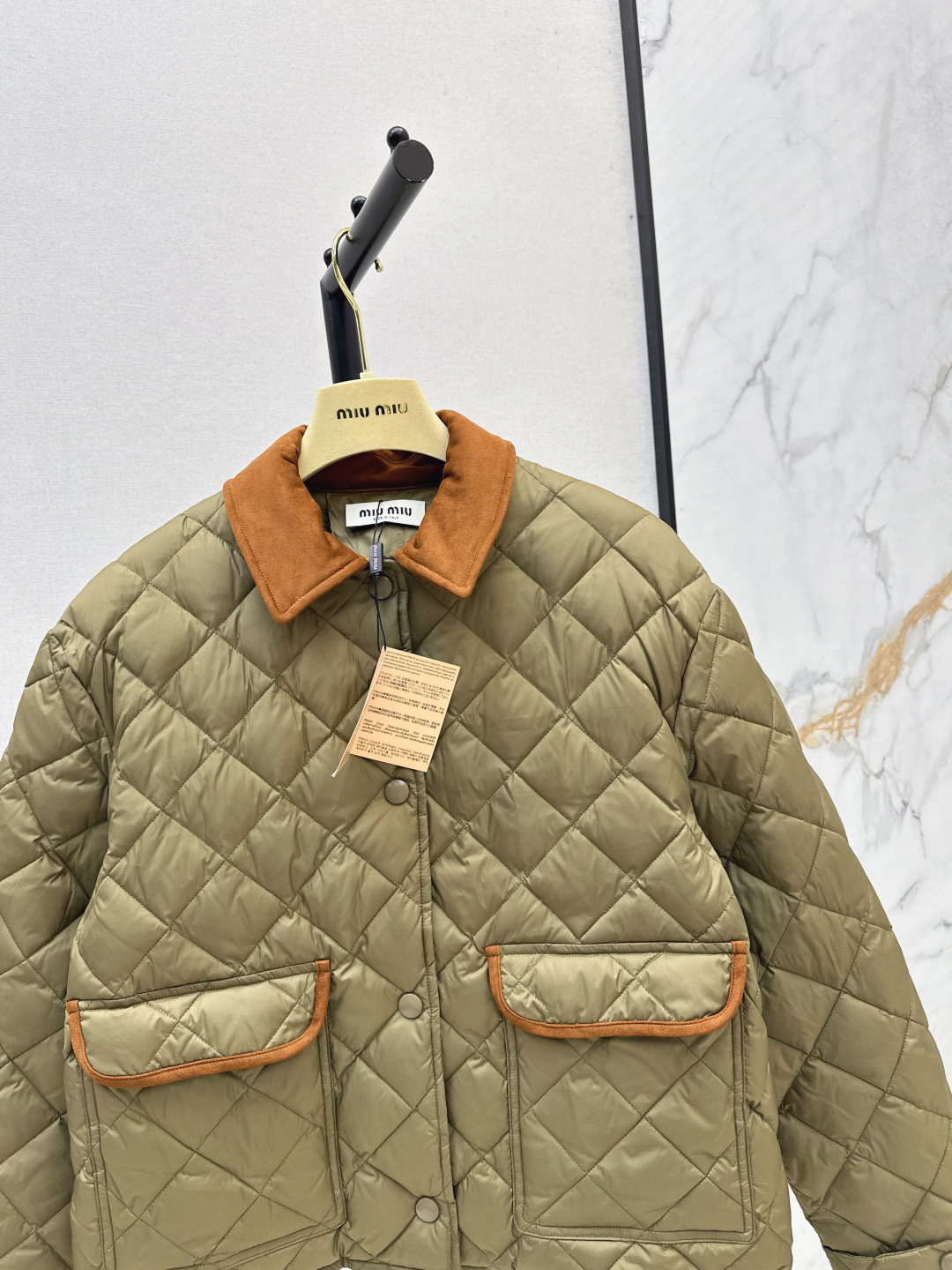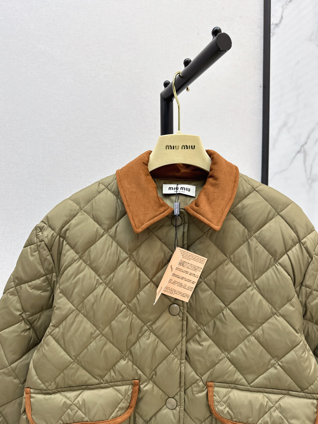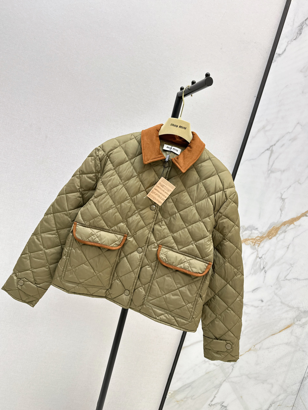 Miu Miu 25Ss Diamond Quilted Color Block Corduroy Collar Padded Short Jacket