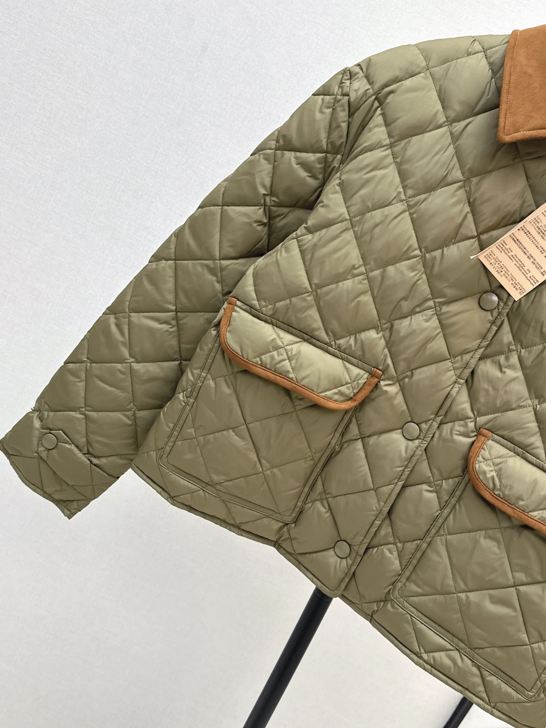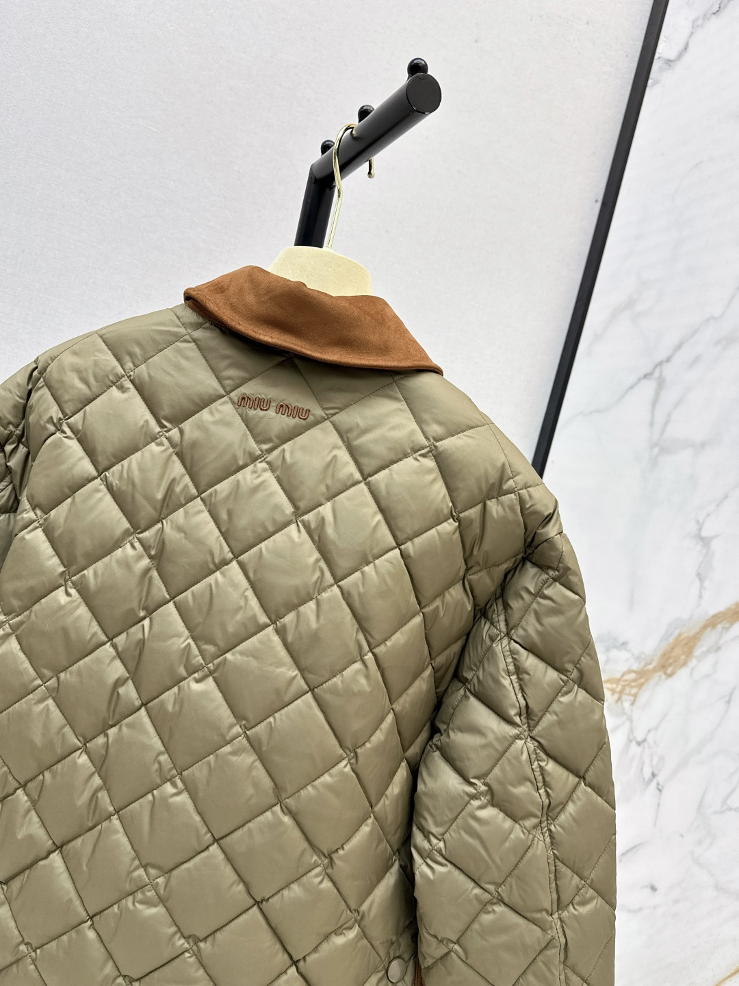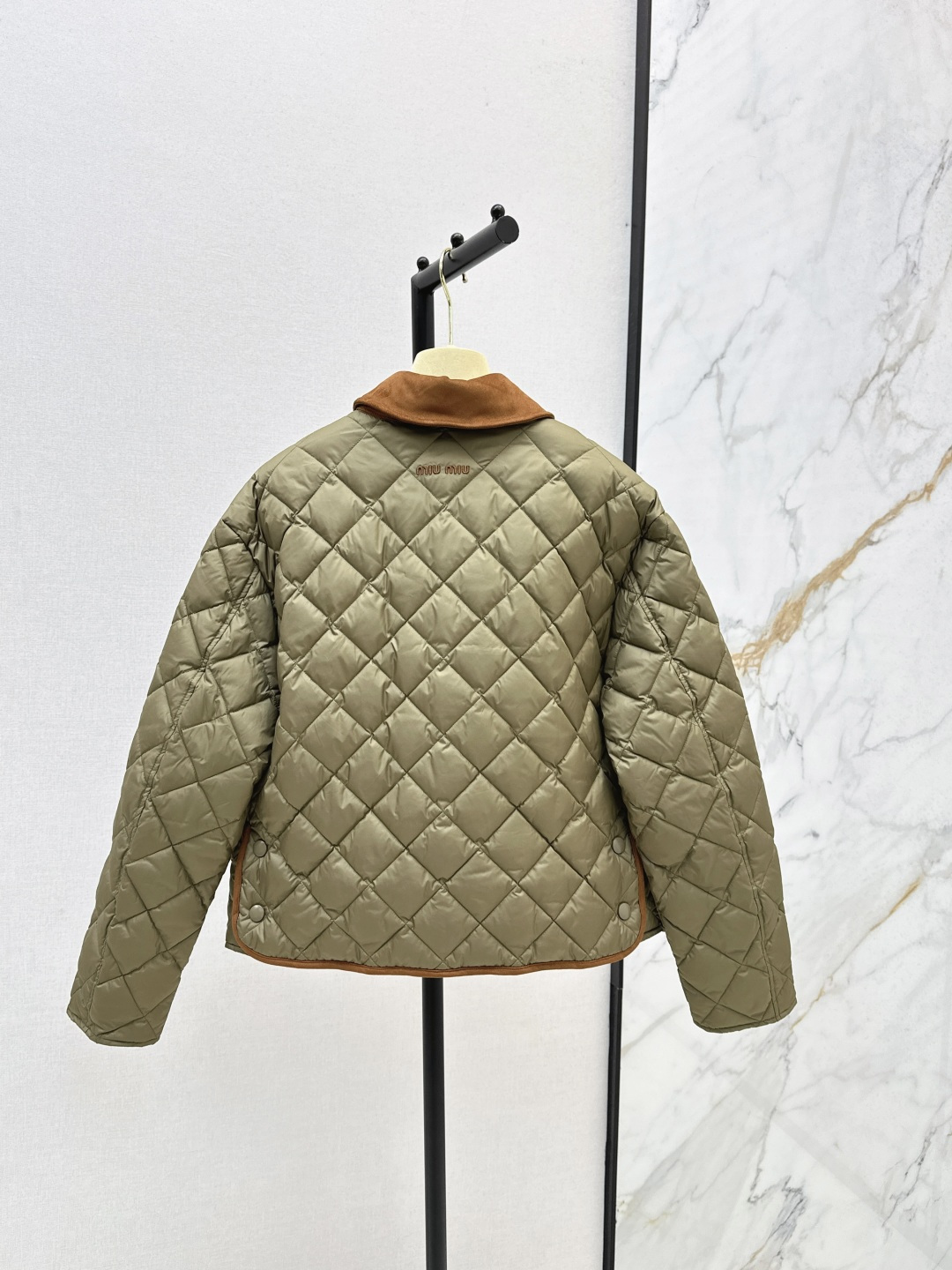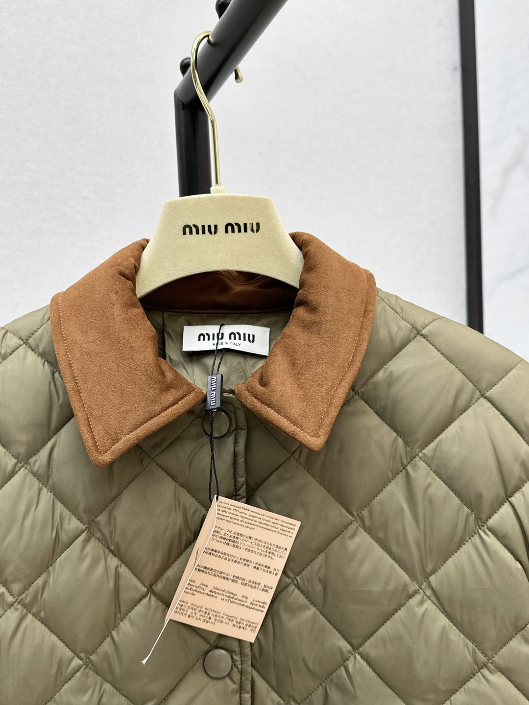 Miu Miu 25Ss Diamond Quilted Color Block Corduroy Collar Padded Short Jacket