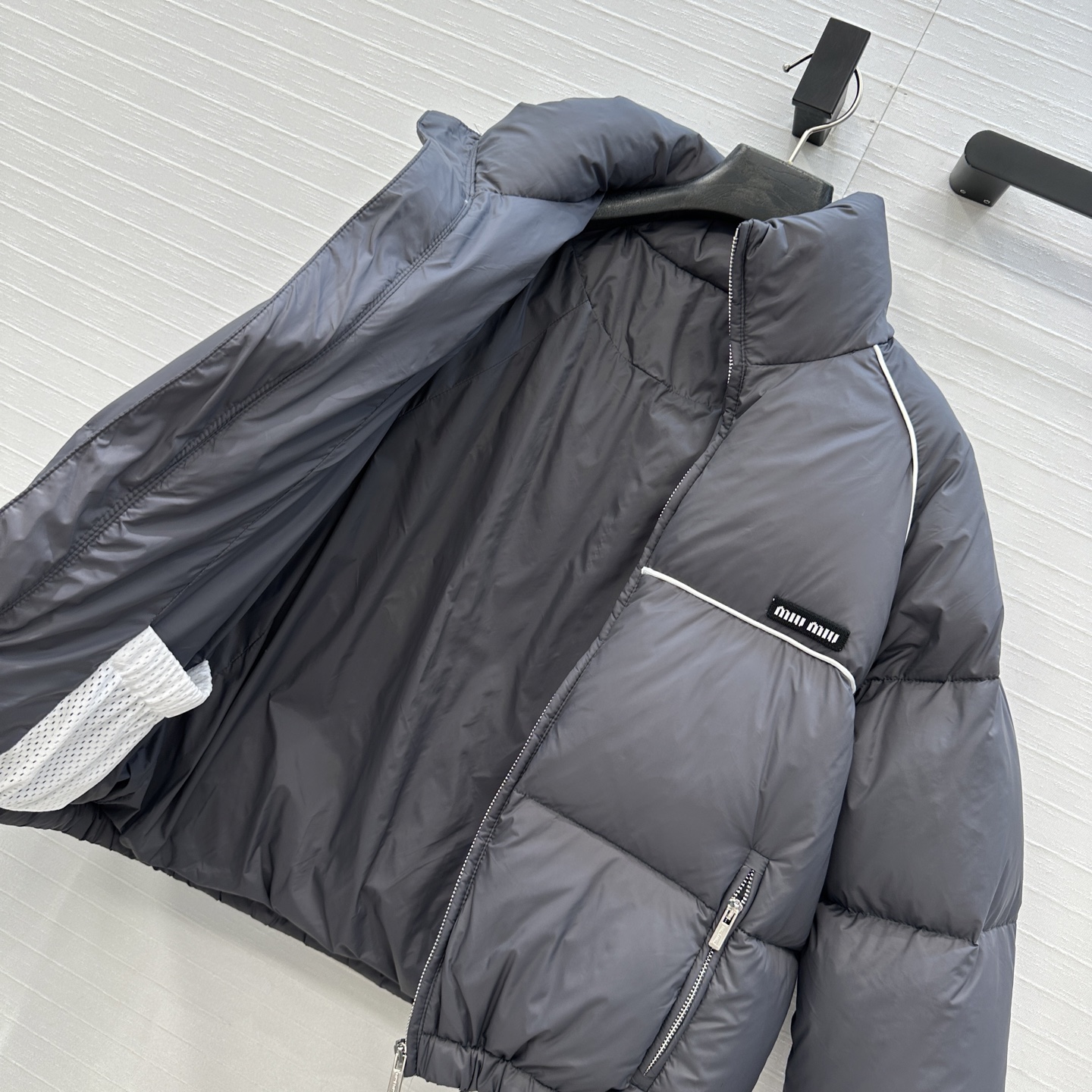 This Miu Miu down jacket is a must-have for anyone looking to stay warm and stylish during the cold winter months. Don't miss out on this essential piece of outerwear!