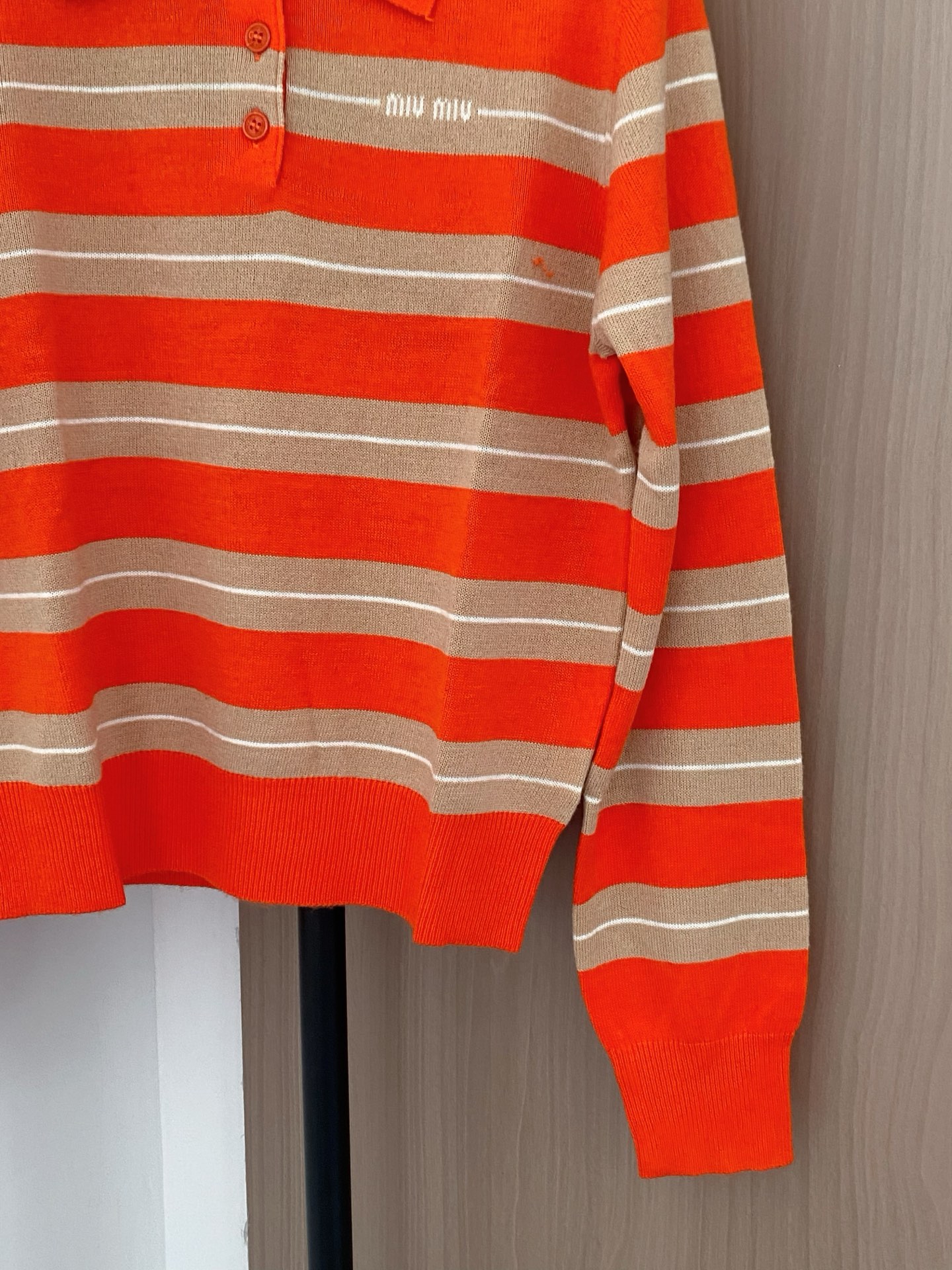 Tags: Designer Polo Shirt, Embroidered Logo Top, Miu Miu Polo Shirt, Slim Fit Polo, Striped Long Sleeve, Women's Designer Clothing